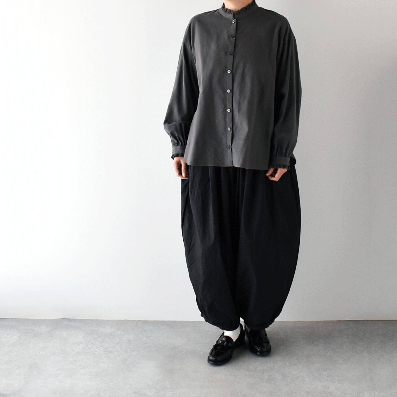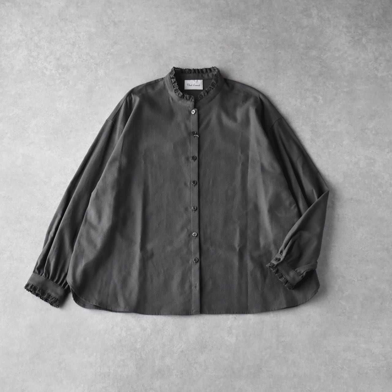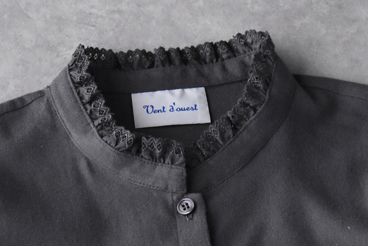 Vent d'ouest コットンビエラ起毛 フリルブラウス (チャコール) VE39517