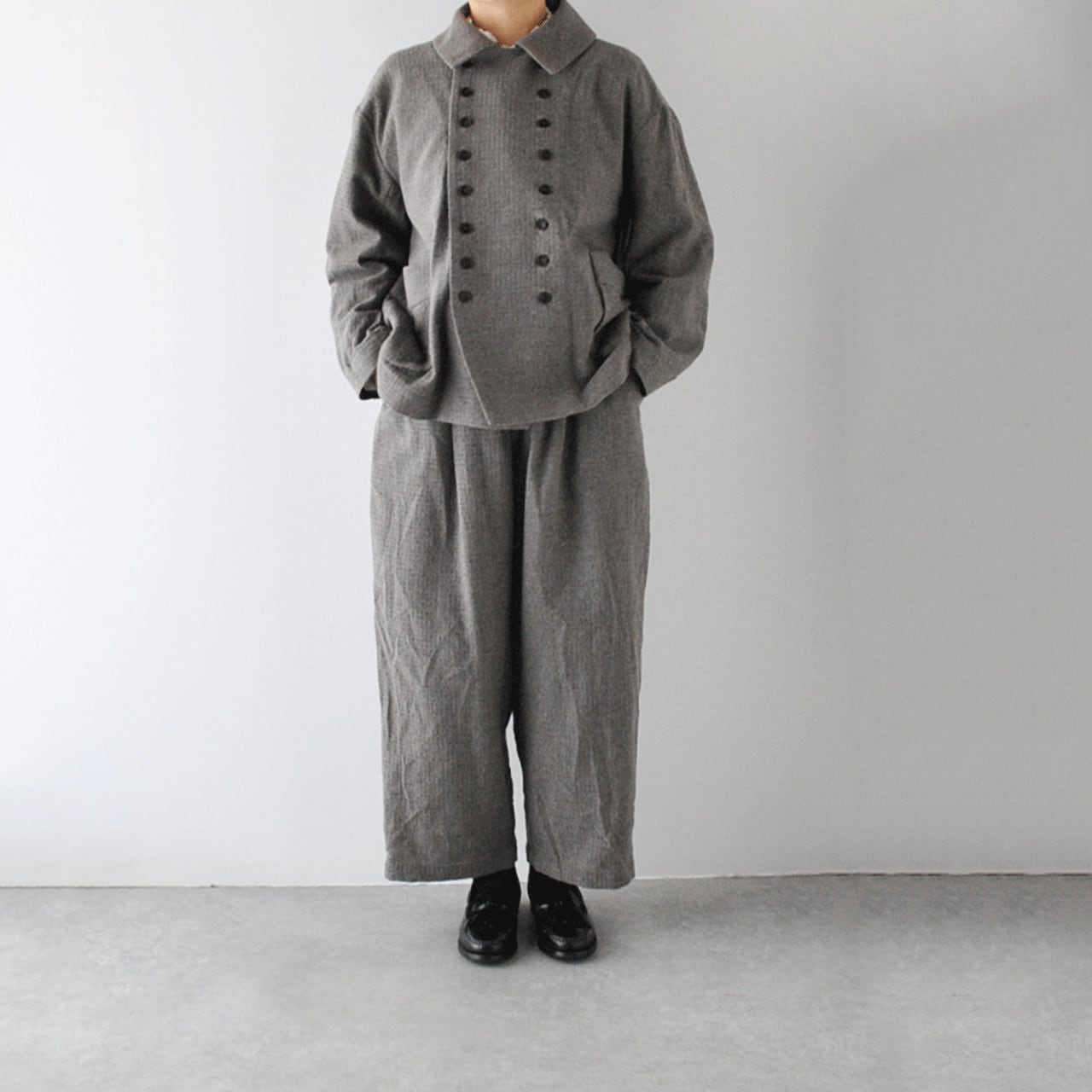 ichi Antiquités ウールコットンチェック ダブルボタンジャケット 1100621