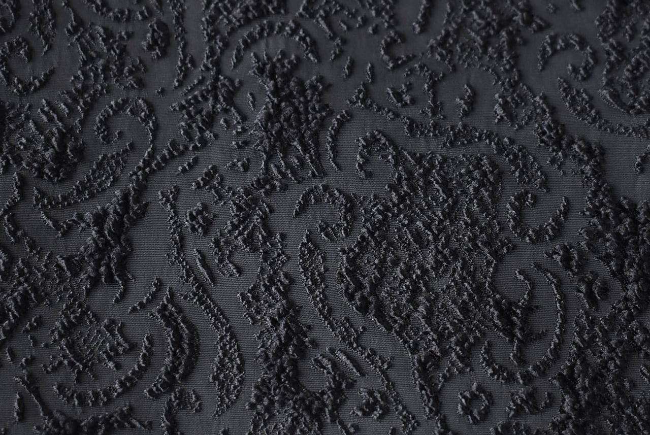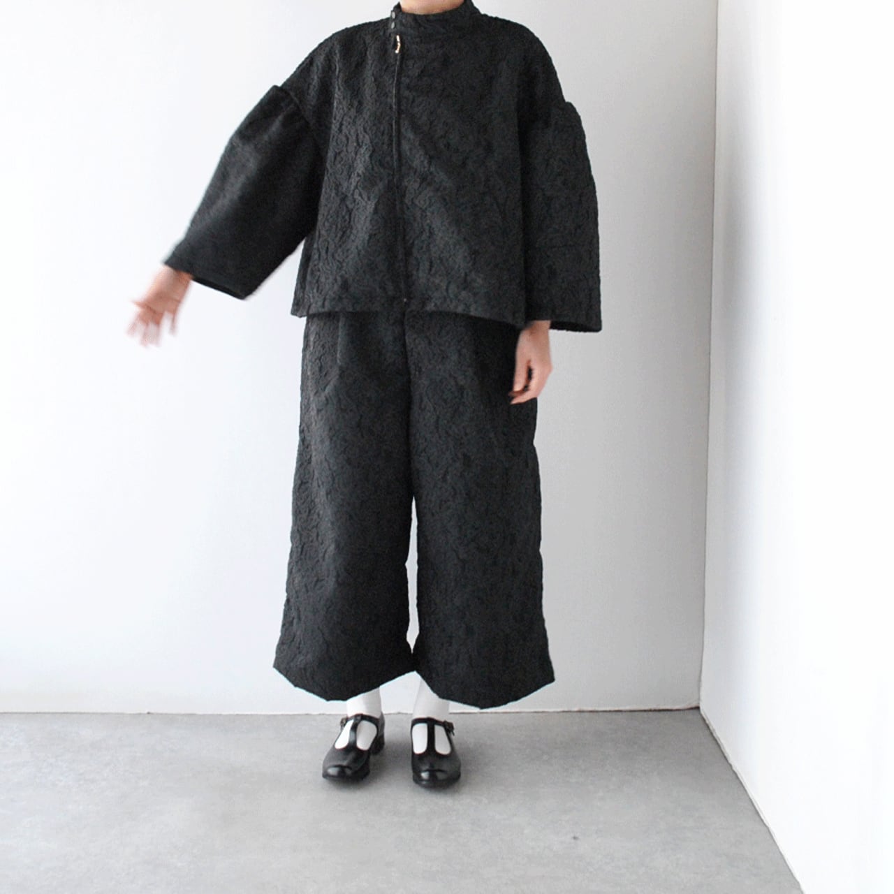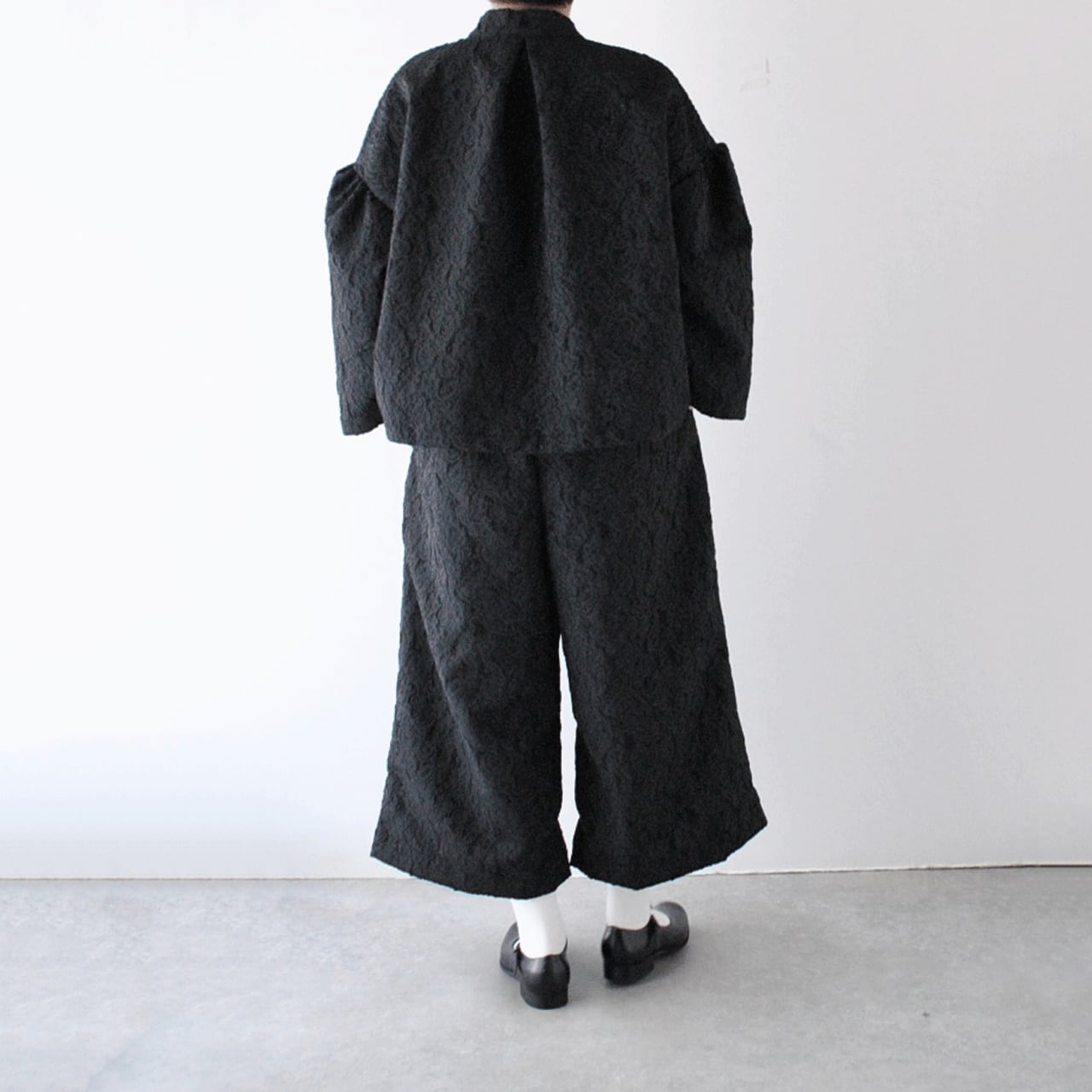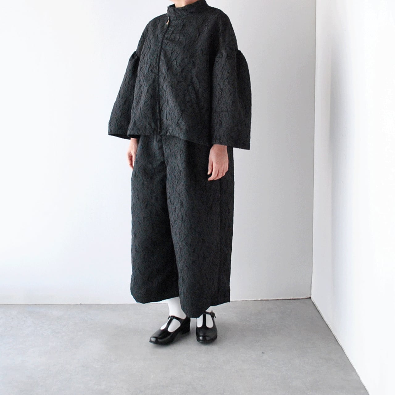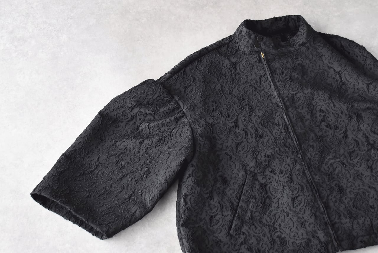 ROBE de PEAUから、立体感のある柄が美しいジャガード生地で仕立てたライダース風のジャケットが届きました。ボリューム感のある袖や、斜めに配した前ジップなど、ちょっとクセのある個性的なデザインがローブデポーらしい一着。フォーマルシーンにはもちろん、デニムなどのカジュアルなパンツと合わせて普段使いにもオススメ。着心地もとっても軽いですよ。ふっくらと織り上げられていてシワになりにくいのもポイント。同素材のパンツとのセットアップも素敵ですよ。