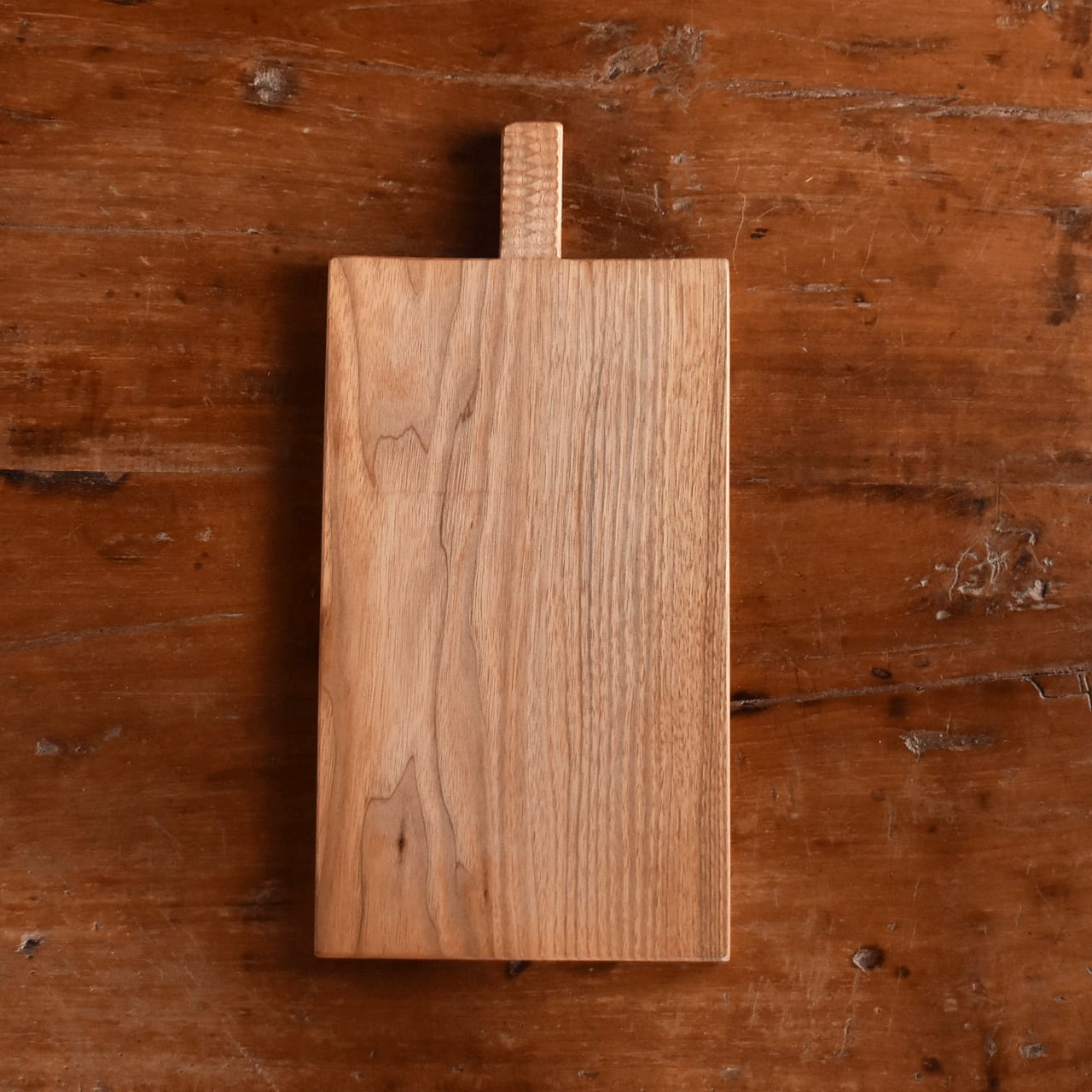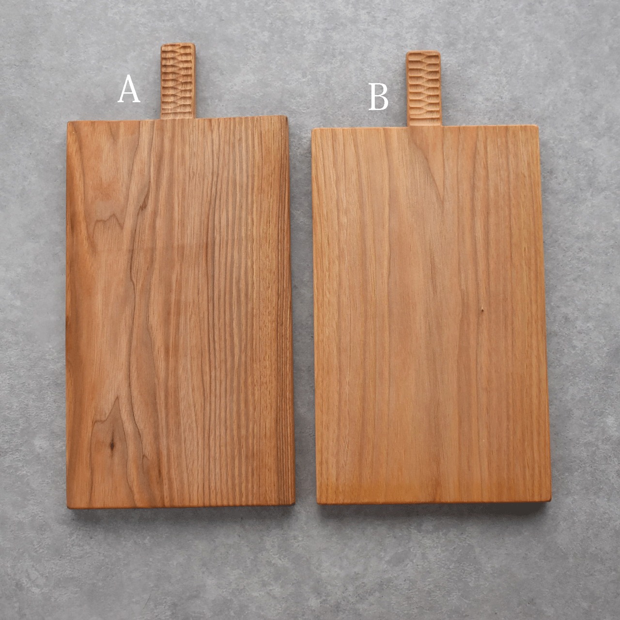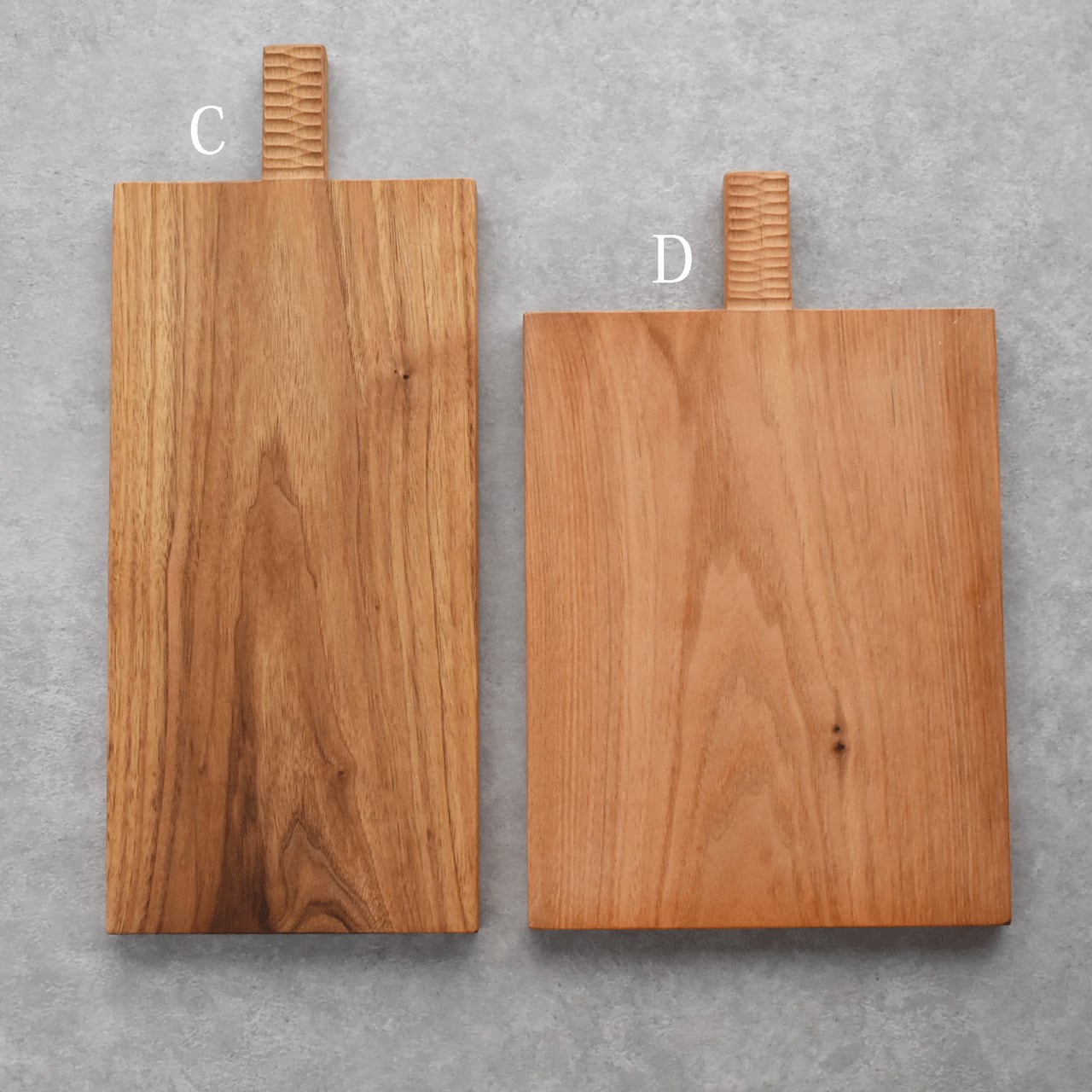 木工作家「icura」さんのカッティングボードです。ラフに使ってもらいたいという思いから、あえて節などの自然の味わいを残すことにより汚れたりキズがついても不自然でない愛着のあるものになっていきます。持ち手の部分はつかみやすいようにデコボコと削ってあります。