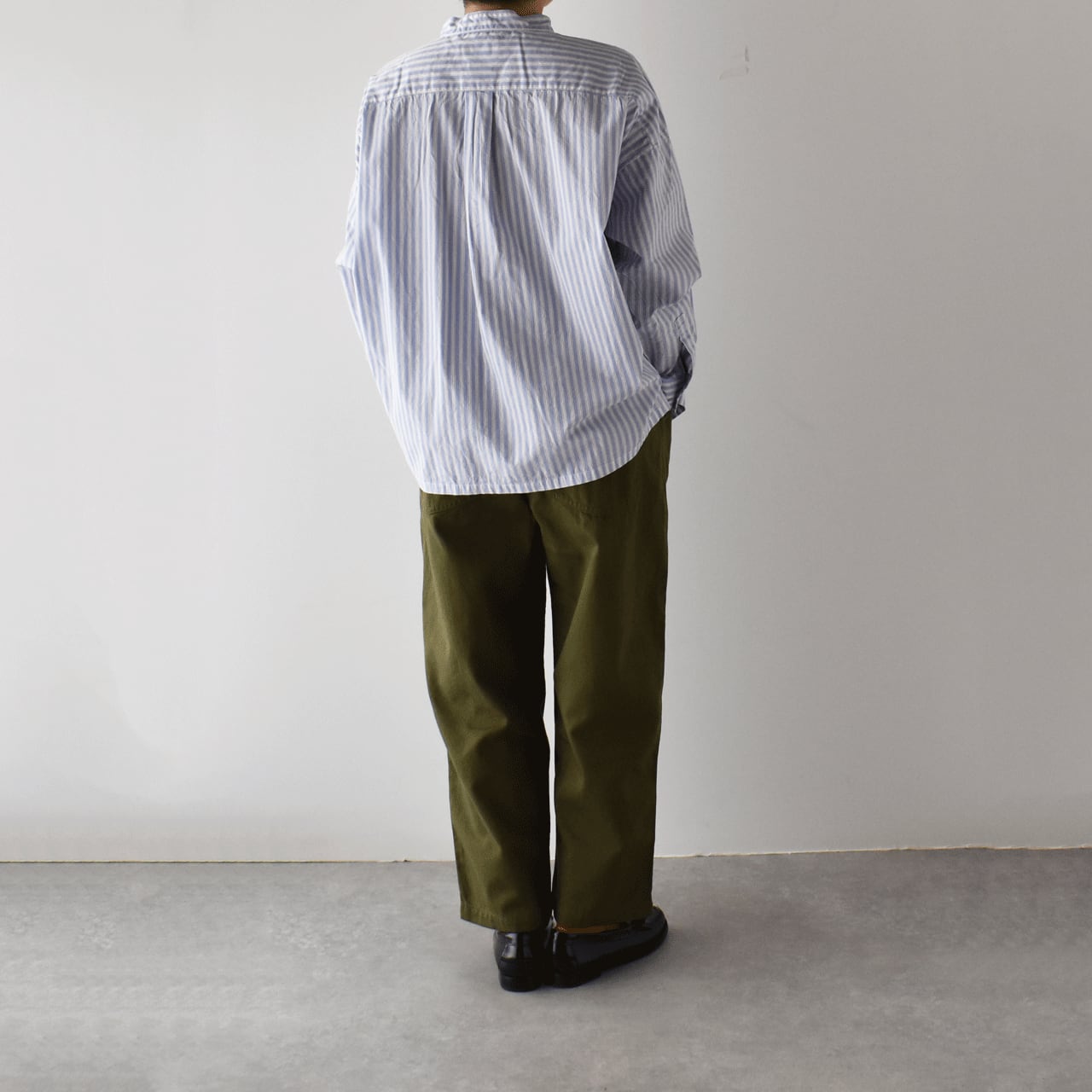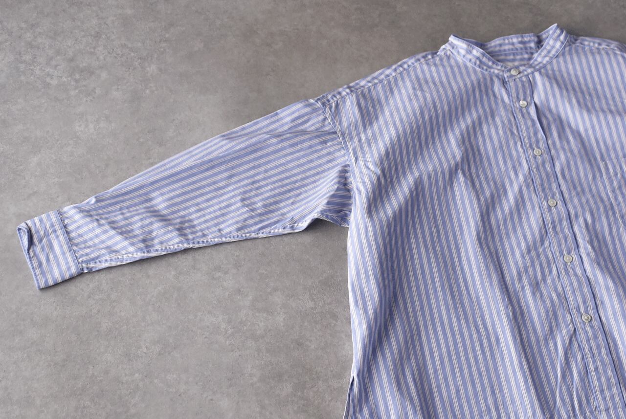 prit 高密度ポプリンパジャマストライプ スタンドカラービッグシャツ (サックス) P81641