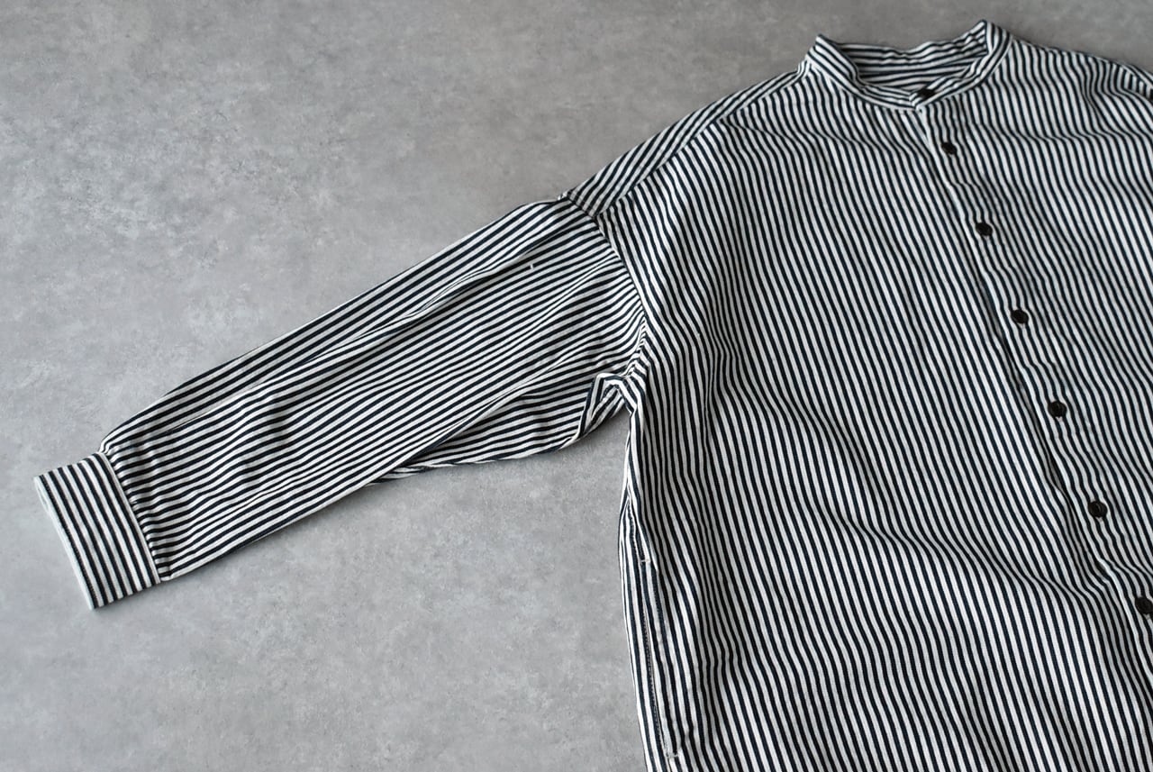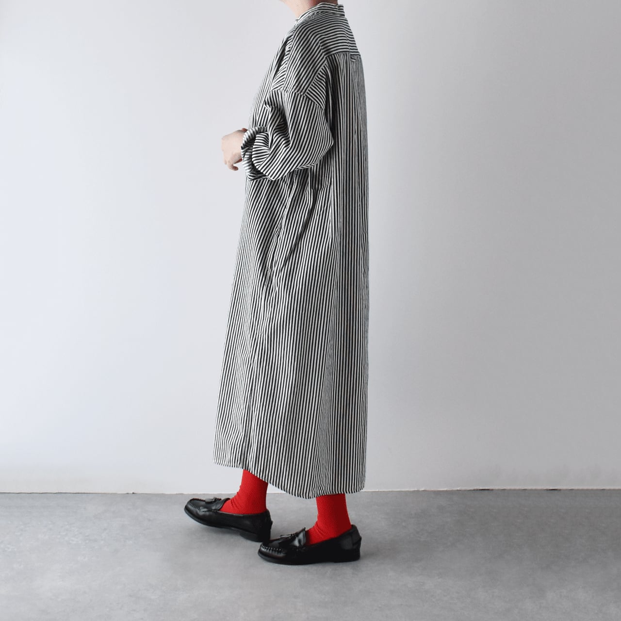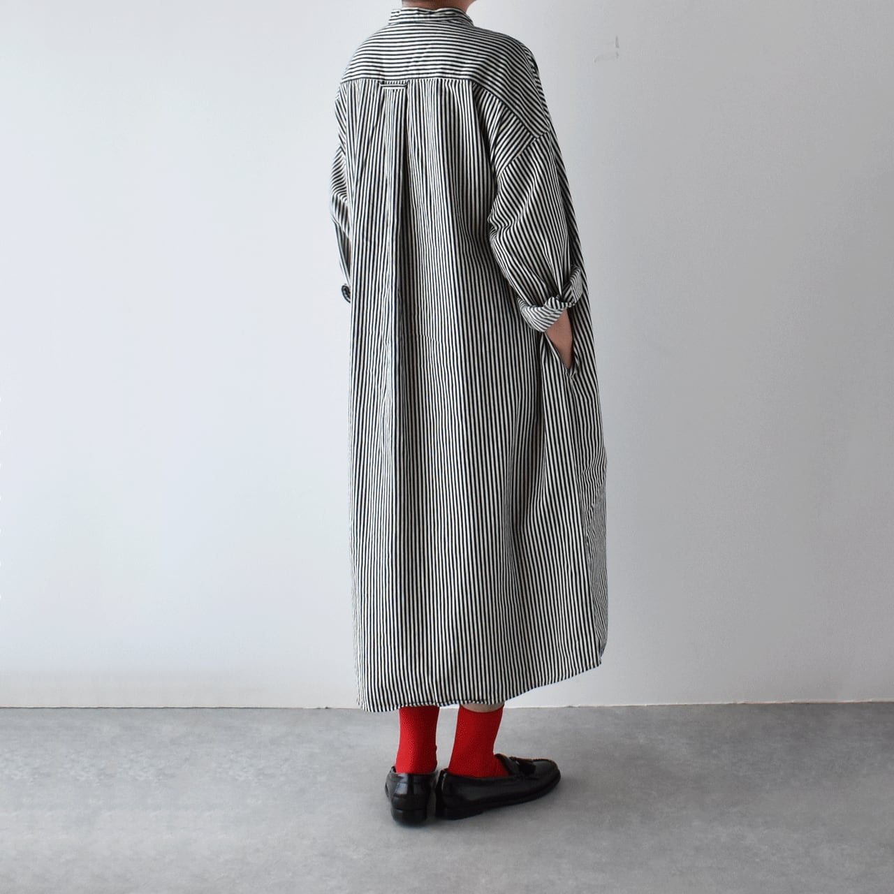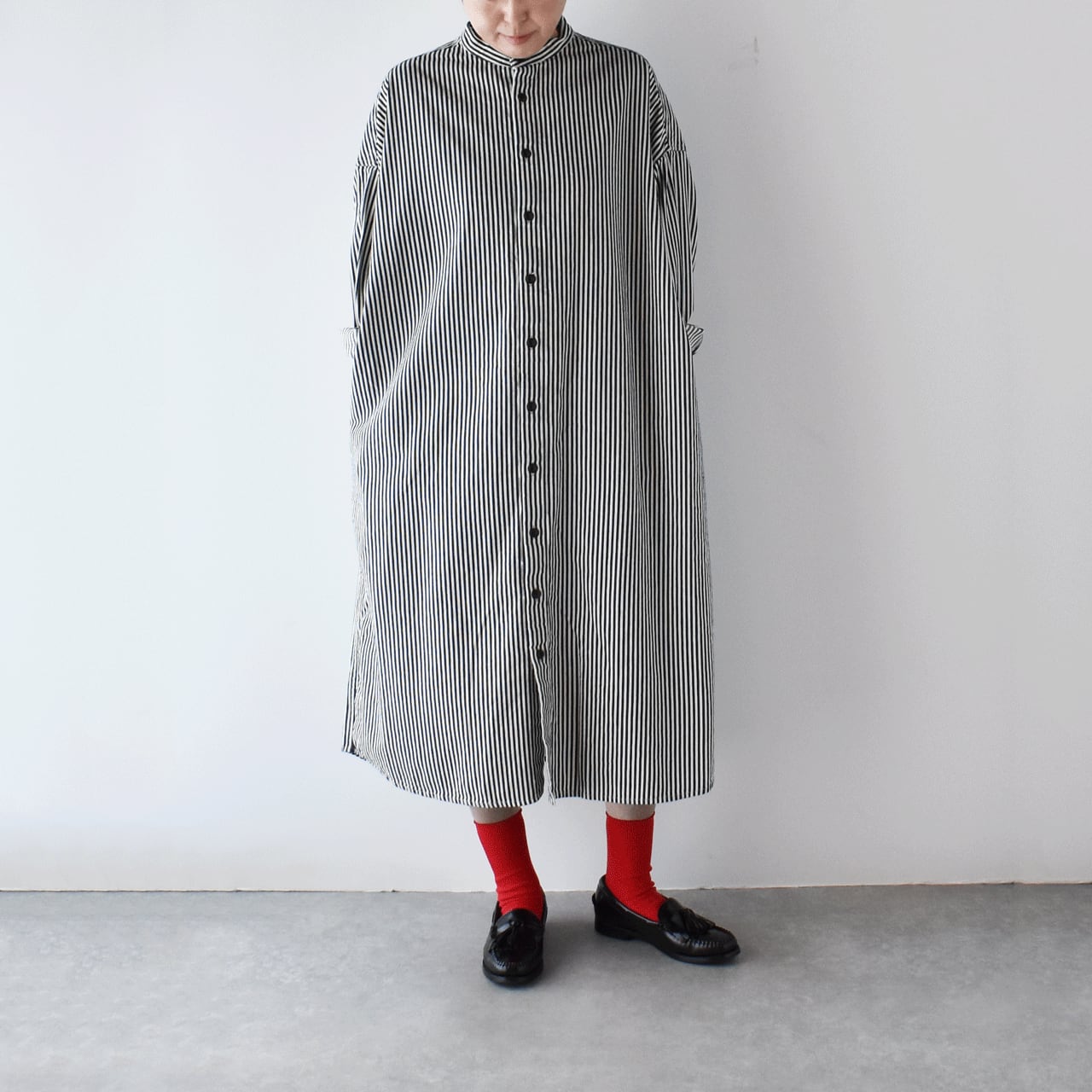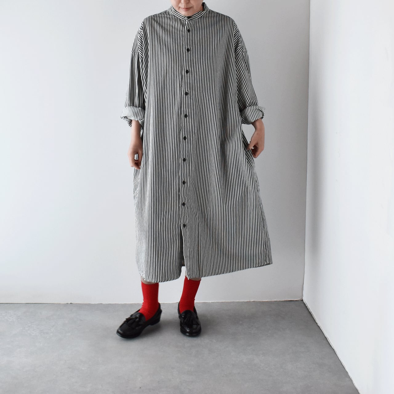 prit 8ozヒッコリーデニム スタンドカラーワイドシャツワンピース (生成×ネイビー) P81613