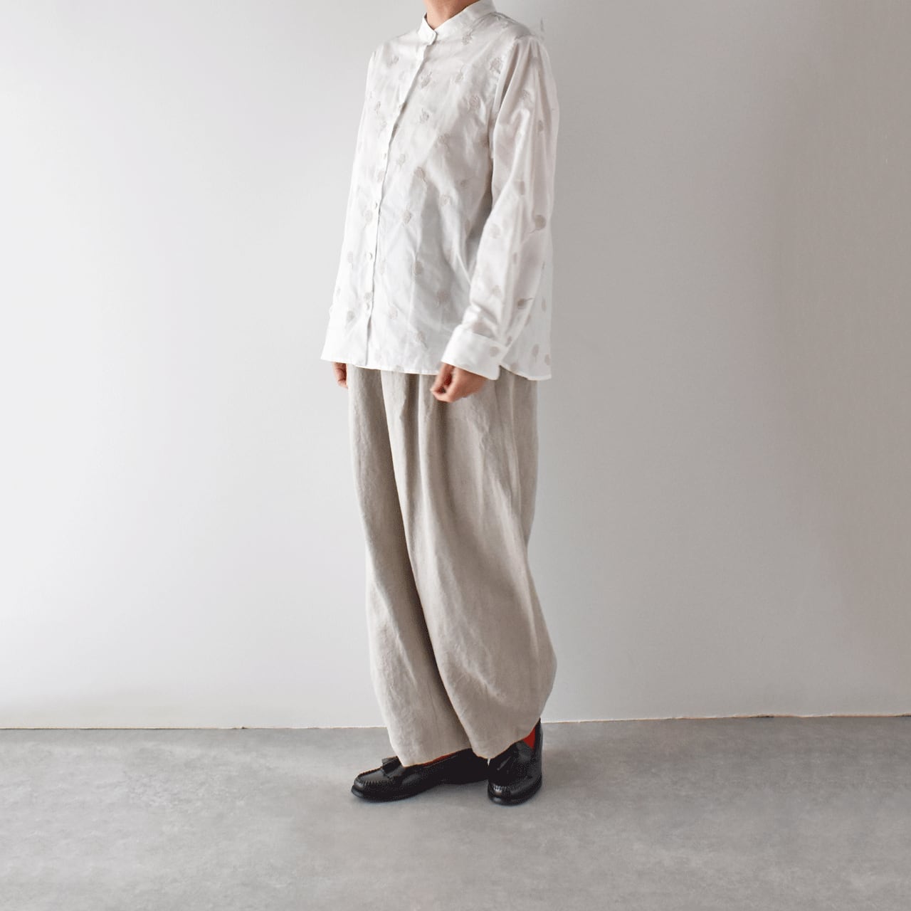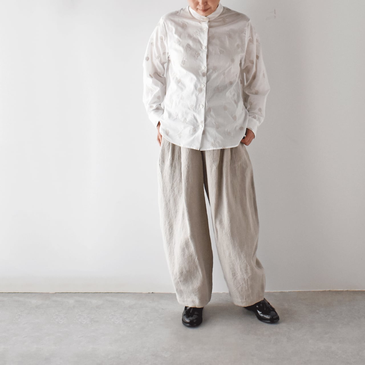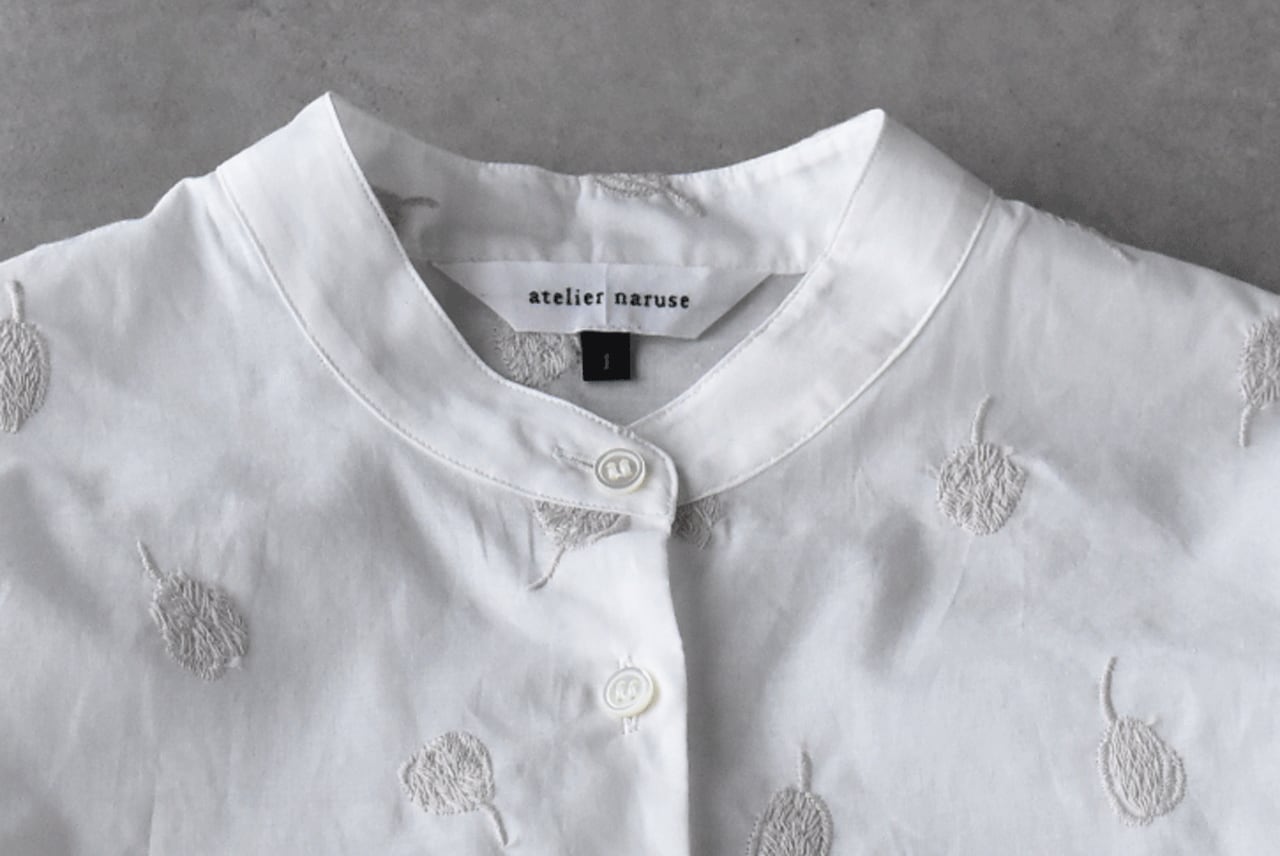 atelier naruse コットンバンドカラーブラウス ~カモミール~ (ホワイト) H02085