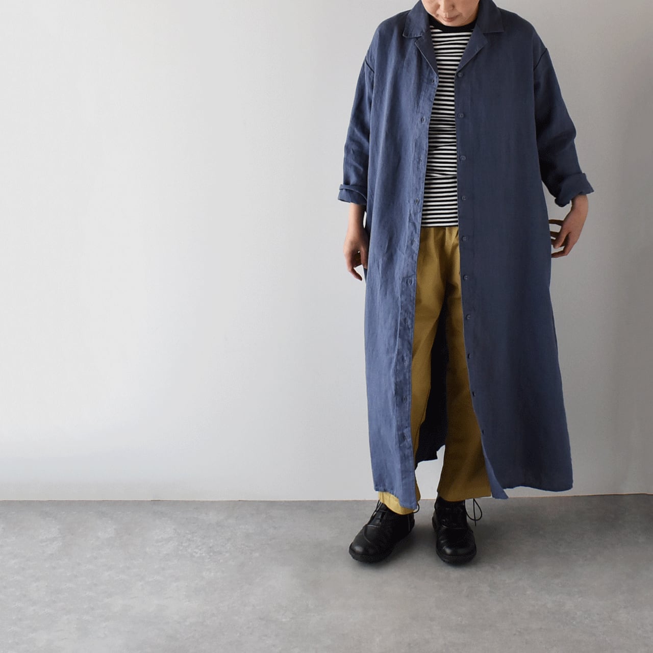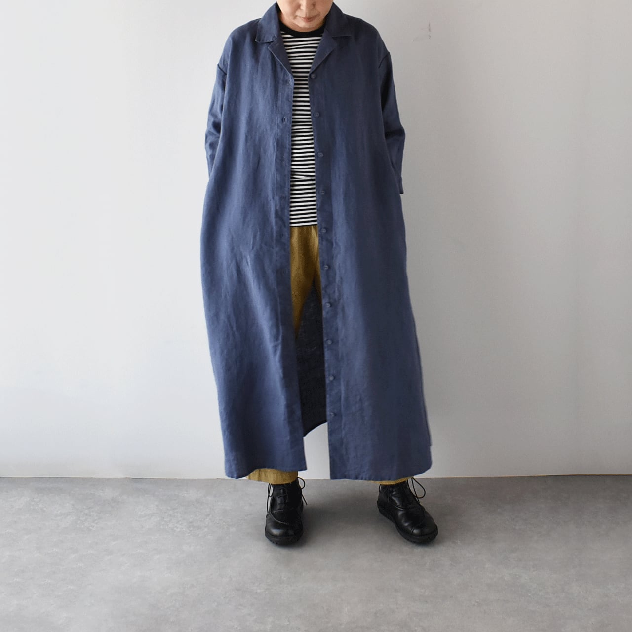 メンズライクなテーラードカラーでカッコよく着て頂けるfog linen workのHazelコート。ゆったりとしたリラックス感のあるオーバーサイズが絶妙で、パンツスタイルやワンピースにサッと羽織るだけでとても今っぽい雰囲気に仕上がるオススメの一枚です。袖をくるくるっとロールアップすればグッとこなれた印象に。前ボタンを全て留めればワンピースとしても楽しめます。リトアニアでオリジナルのリネン生地を沢山手掛けるfogならではのニュアンスのあるカラーも魅力的ですよ。