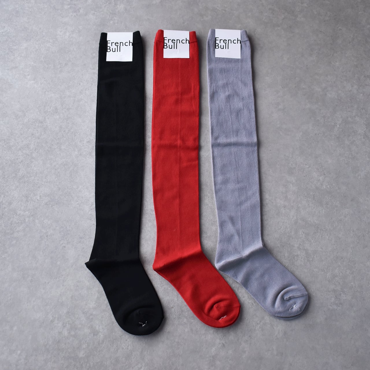 French Bullから、春物のソックスが届いておりますよ~。シンプルなロング丈が使いやすいハイソックスです。柔らかな綿糸で薄手に編みたてた優しい履き心地。タイツのようにスカートやワンピースに合わせたり、くしゅくしゅっとさせて足元にボリュームを持たせたりと、アレンジも楽しい一足です。使いやすいカラーも嬉しいですね。