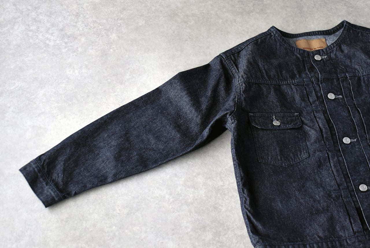 sasanqua by trees ノーカラー 2nd デニムジャケット (インディゴ) AN-320