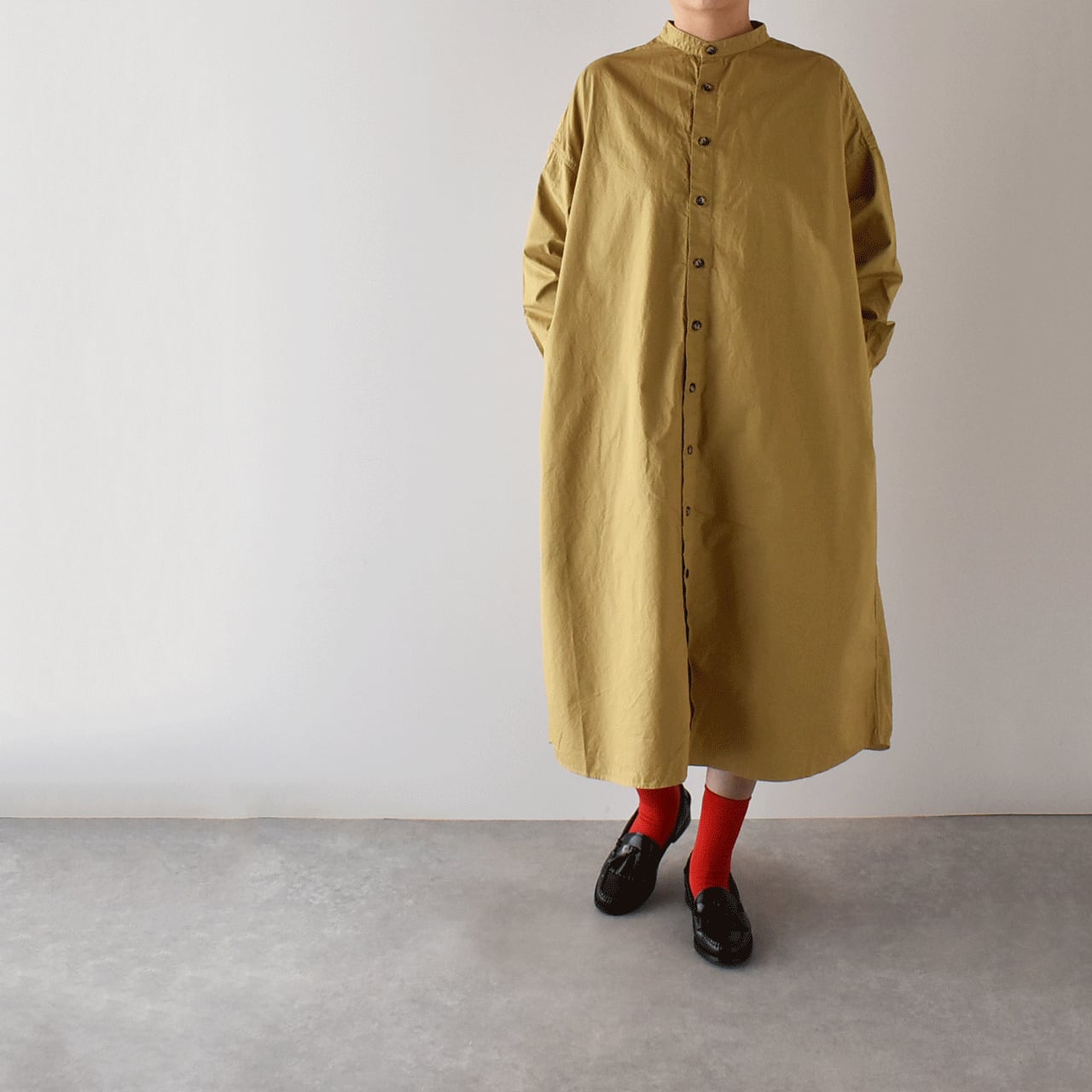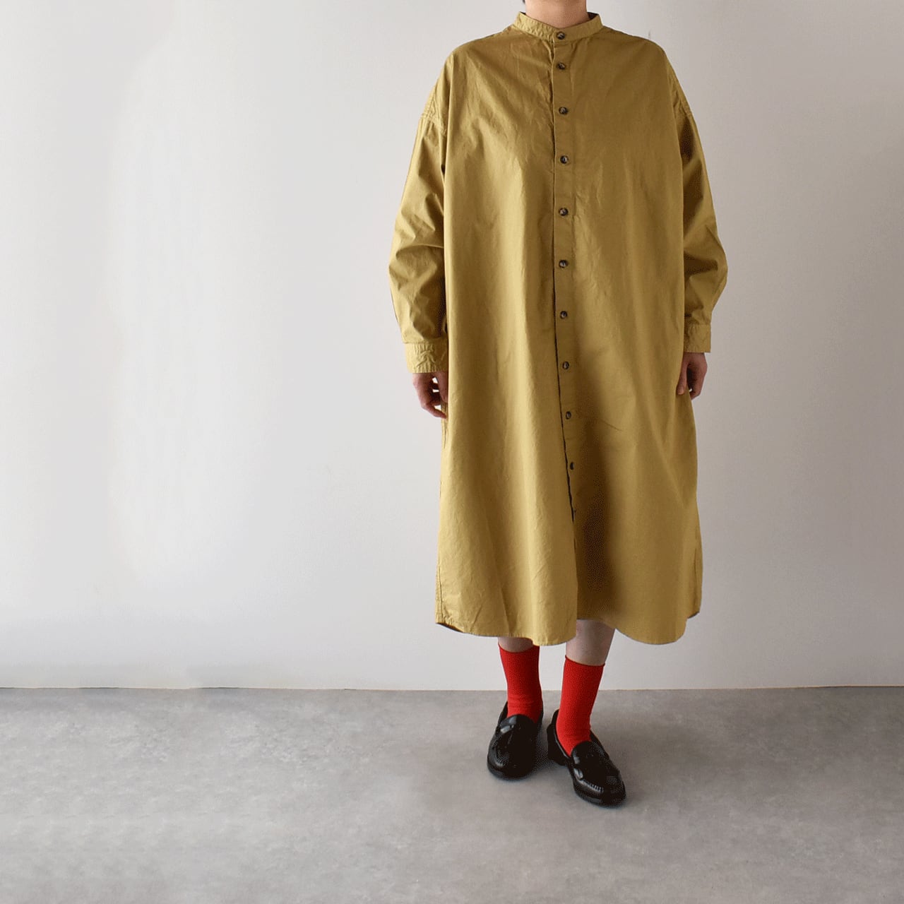 pritから毎シーズン、カラーを変えて楽しませてくれる人気のシャツワンピースが届きましたしっかりとしたコシとハリのあるコットン素材で、自然なシワ感とゆったりとしたフォルムが本当に雰囲気の良い一枚。シンプルに一枚で楽しむのはもちろん、インナーパンツを合わせて変化をつけたり、ボタンを開けてスプリングコートのように着るのもオススメ。一年を通して大活躍してくれると思いますよ。