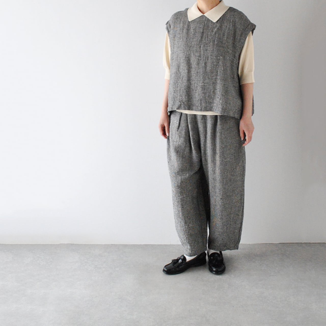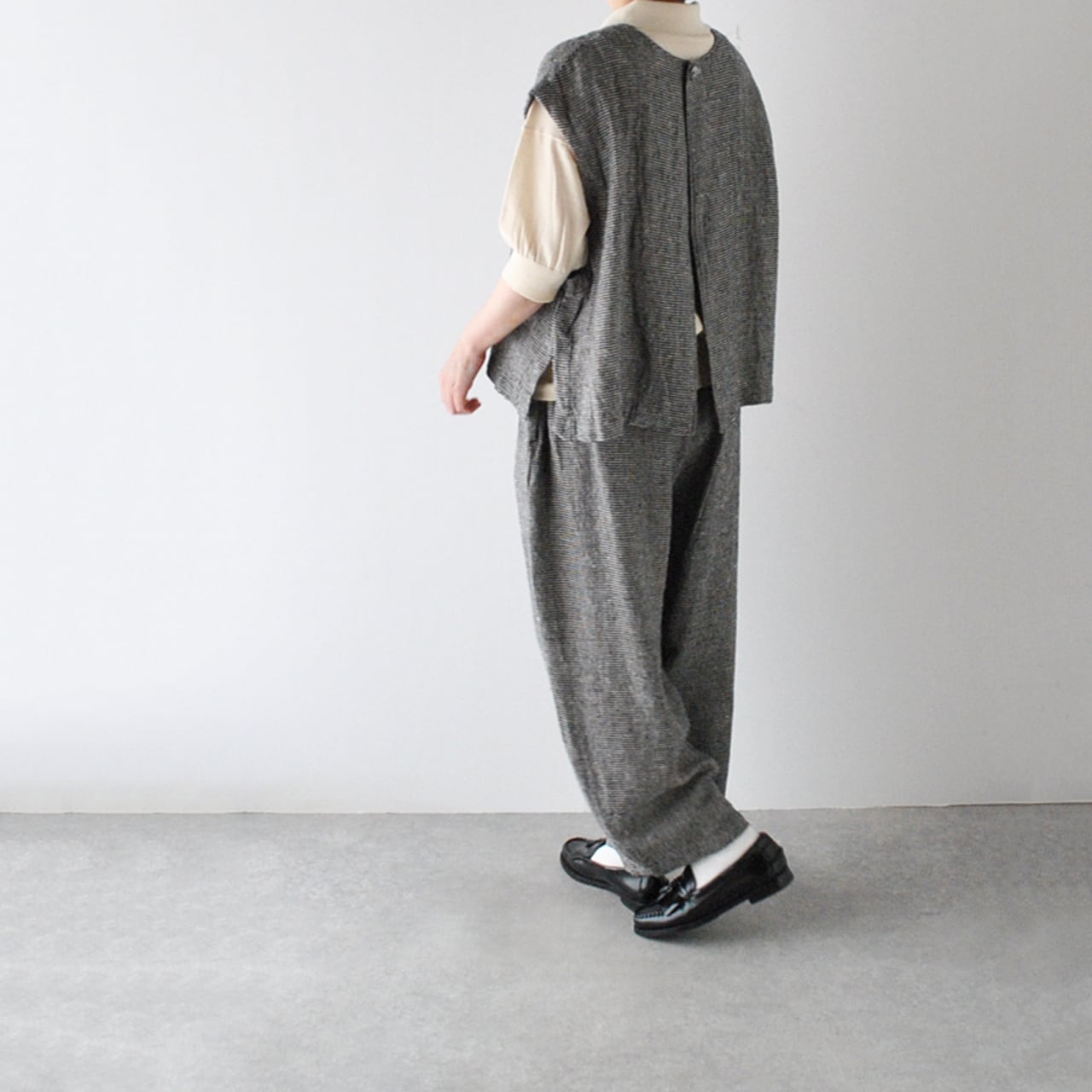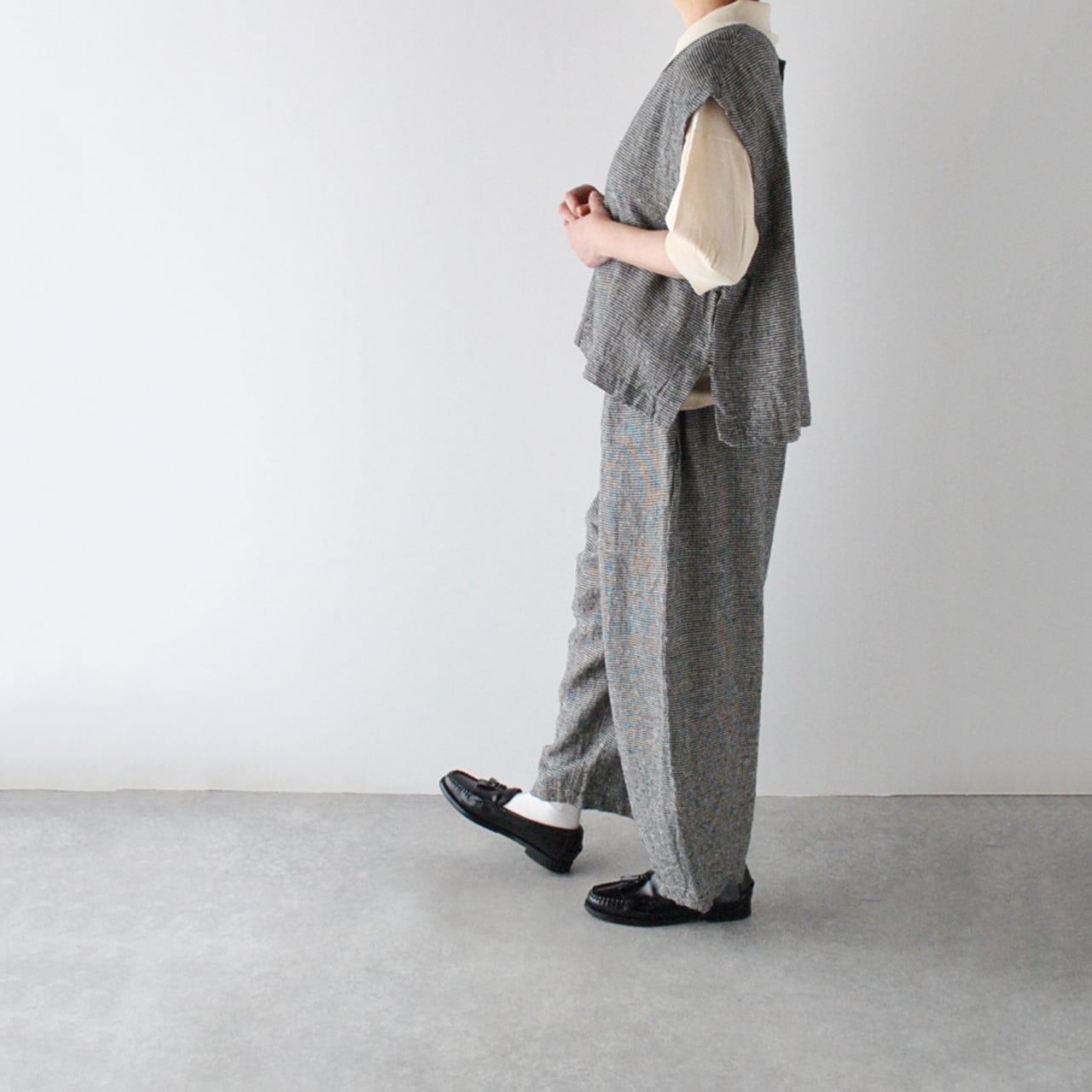 prit リネンシルクハウンドトゥース ワンタックバギーパンツ(生成×クロ) P71600