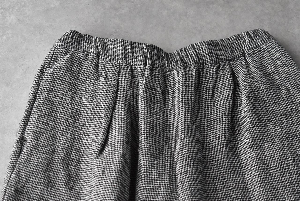 pritから、リネンにシルクをブレンドした、ふっくら柔らかなガーゼのような風合いが心地よいバギーパンツが届きました。ワンタックのボリューム感のあるバギーパンツは、pritの中でも毎シーズン大人気のデザイン。シンプルなトップスを合わせるだけで、雰囲気抜群に仕上げてくれる心強い一枚です。クラシカルな千鳥格子の柄もおじさんチックな可愛らしさがありますね。ゆる~い履き心地もリラックス感たっぷり。春から夏にかけて手放せなくなる事間違いなしだと思いますよ。
