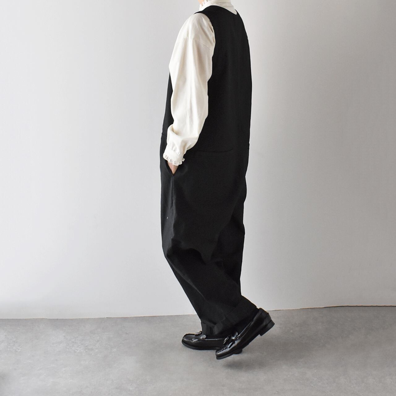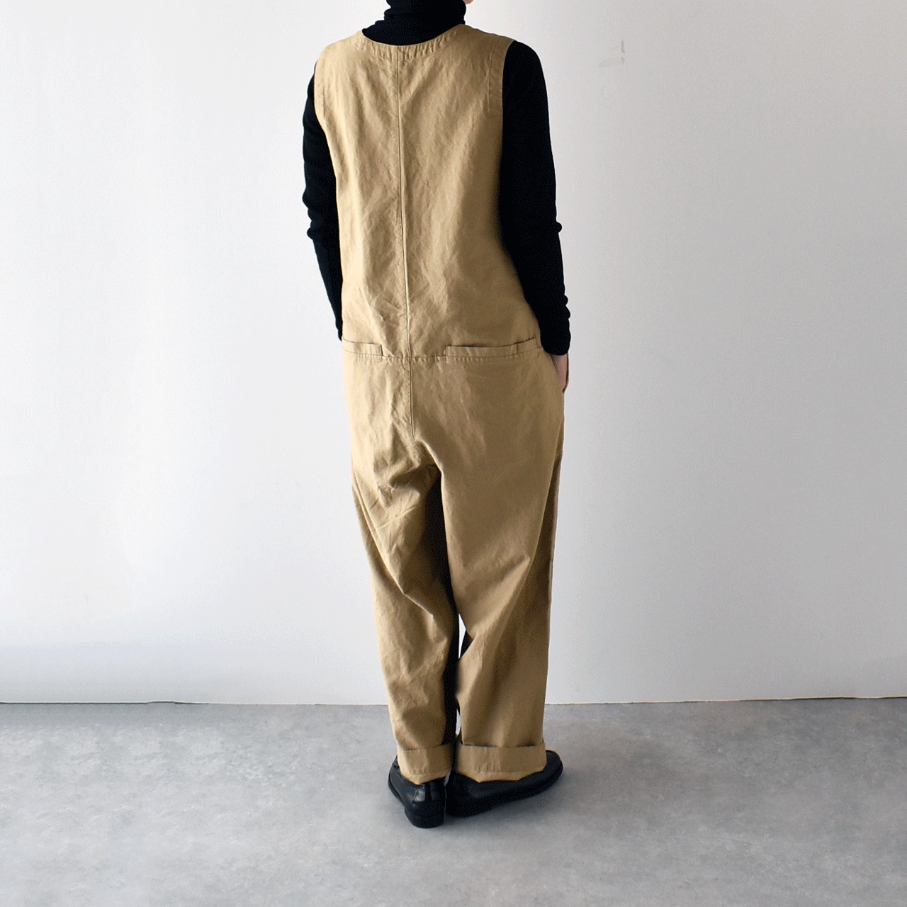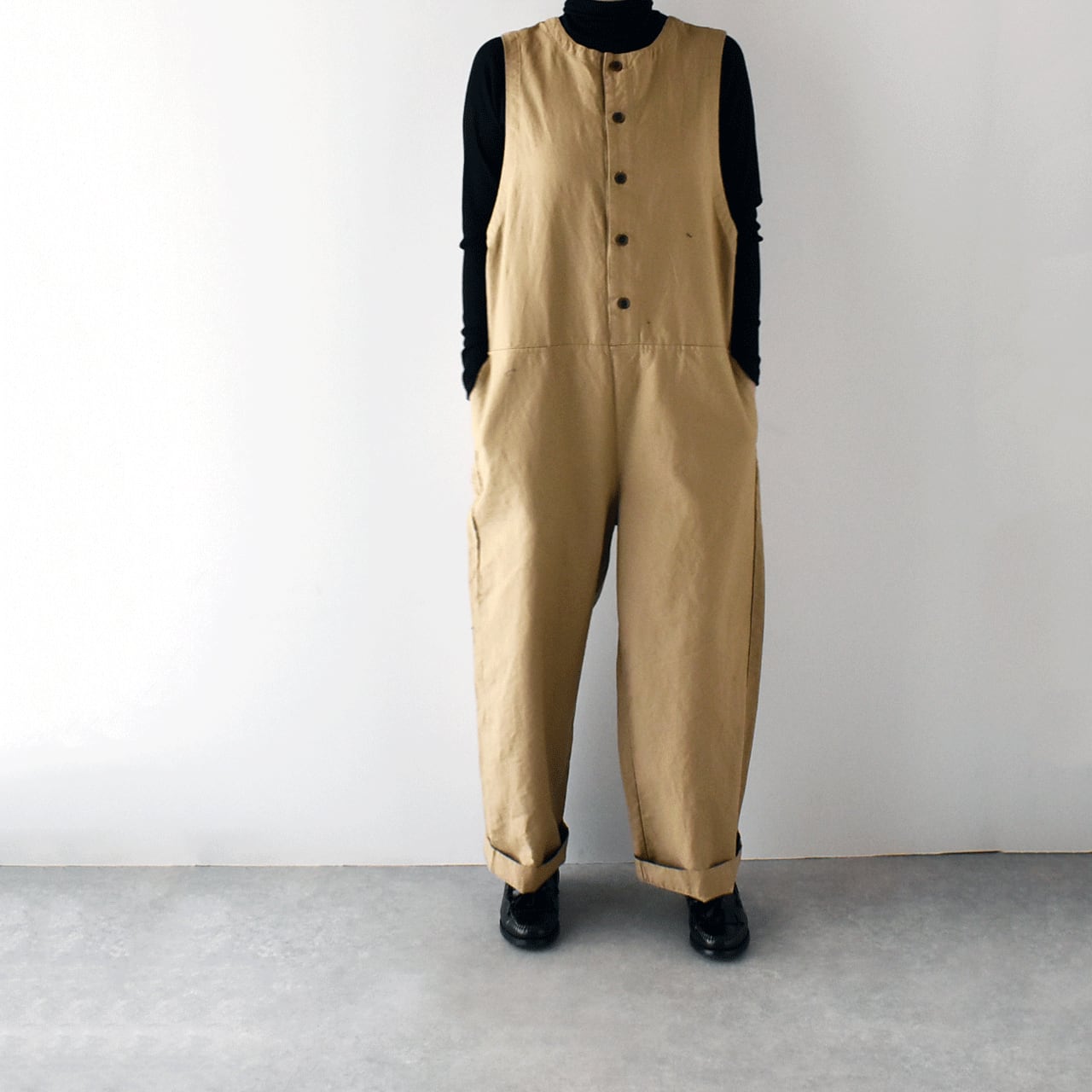pritから、一年を通してとっても可愛いシルエットで着用頂けるオールインワンが届きました。インナーにお気に入りのブラウスやタートルネック、ボーダーTなどを合わせるだけで、簡単に雰囲気よく楽しめる一枚です。程よい厚みのあるコットンリネン素材は、しなやかで軽い着心地。股上が深く、包み込まれるような安心感がありますよ。今の時期はコートをサッと羽織っても素敵なコーディネートが完成しますよ。