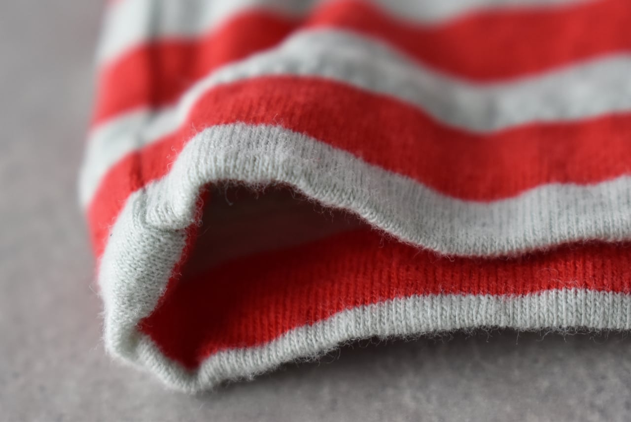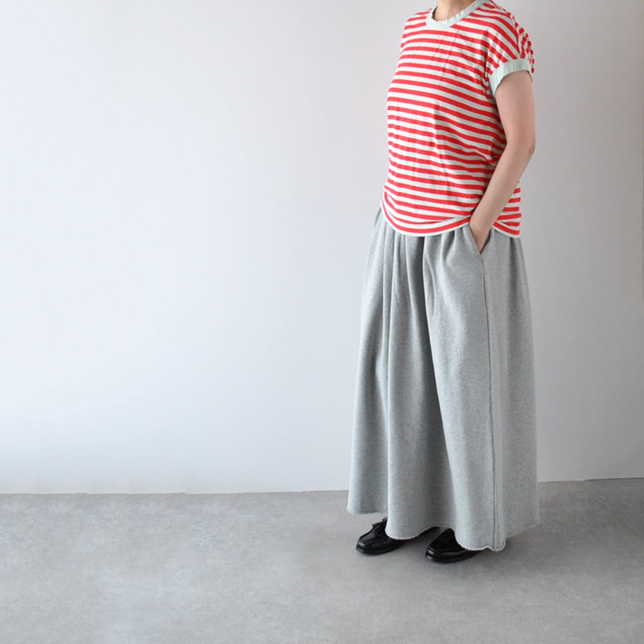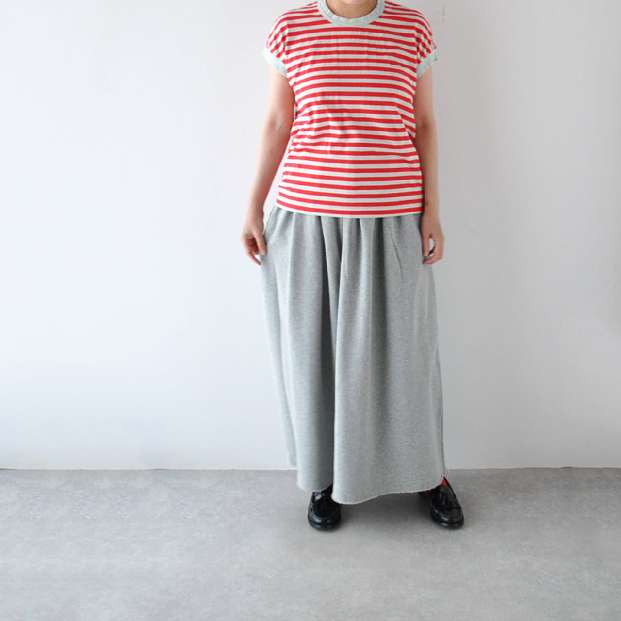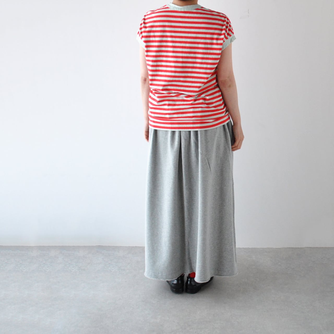 pritから、赤×ミントの色合わせが可愛い、フレンチスリーブのボーダーTが届きました。肩先にかかるフレンチスリーブデザインは、ノースリーブが苦手な方にもオススメしたい一枚です。大人っぽく、上品な縦長シルエットに仕上げてくれますよ。ふかふかの天竺コットンの肌触りは、ず~っと着ていたくなる着心地の良さ。デニムはもちろん、様々な色のパンツやスカートと、とっても相性良く楽しんで頂けます。
