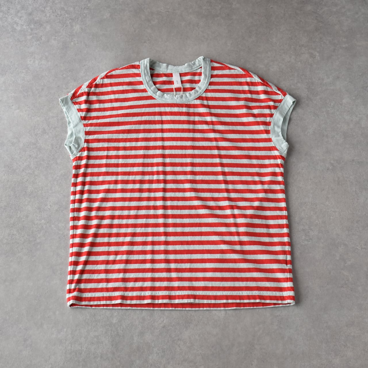 prit リサイクルムラ糸天竺カラーボーダー フレンチスリーブ (レッド×ミント) P91622
