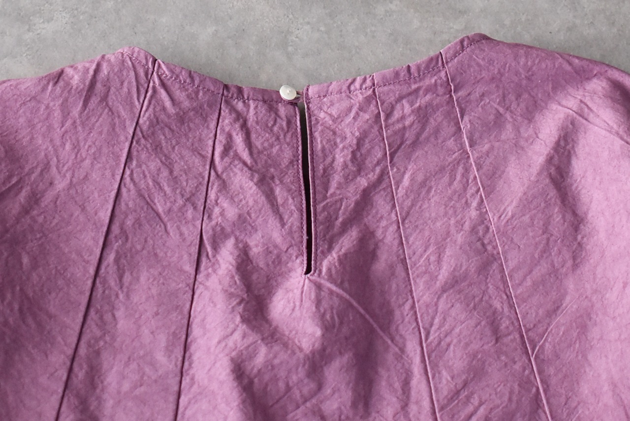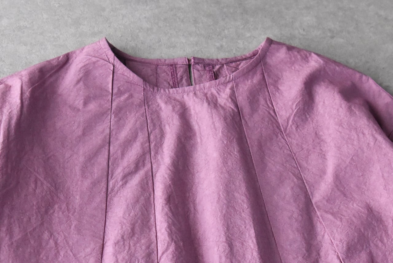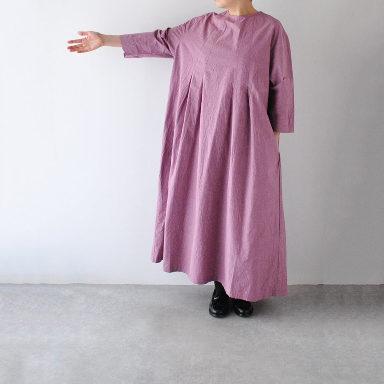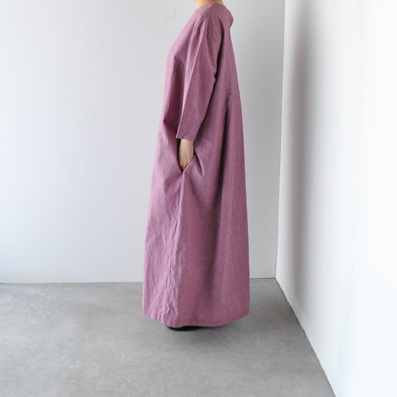 ROBE de PEAUから、職人が丁寧に染め上げたプラムカラーが春の着こなしを軽やかに彩ってくれるワンピースが届きました。前後にタックを寄せた、優しく広がるシルエットの美しさが際立つ一枚です。長めの丈感もとっても素敵ですよ。高密度に織られたコットンリネン生地は、薄手ですがしっかりとしたハリとコシがあり、自然なシワ感や染めムラのある表情も風合い豊か。暖かな春が待ち遠しくなりますね。