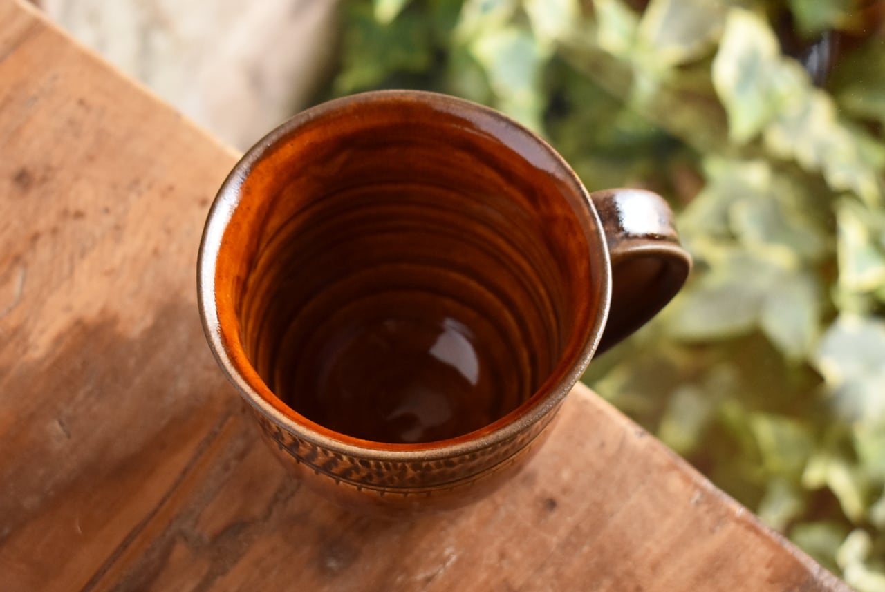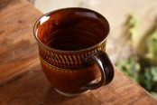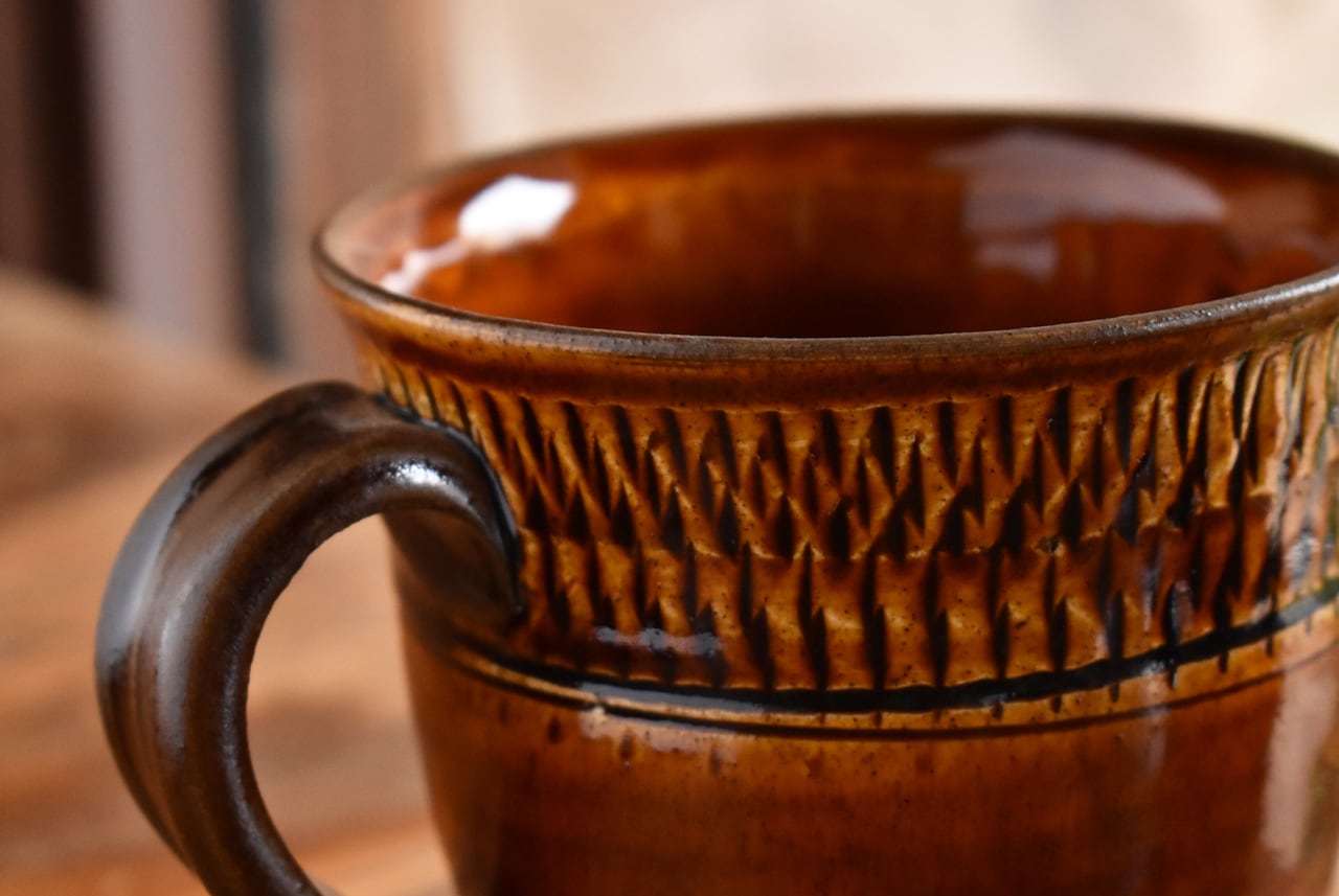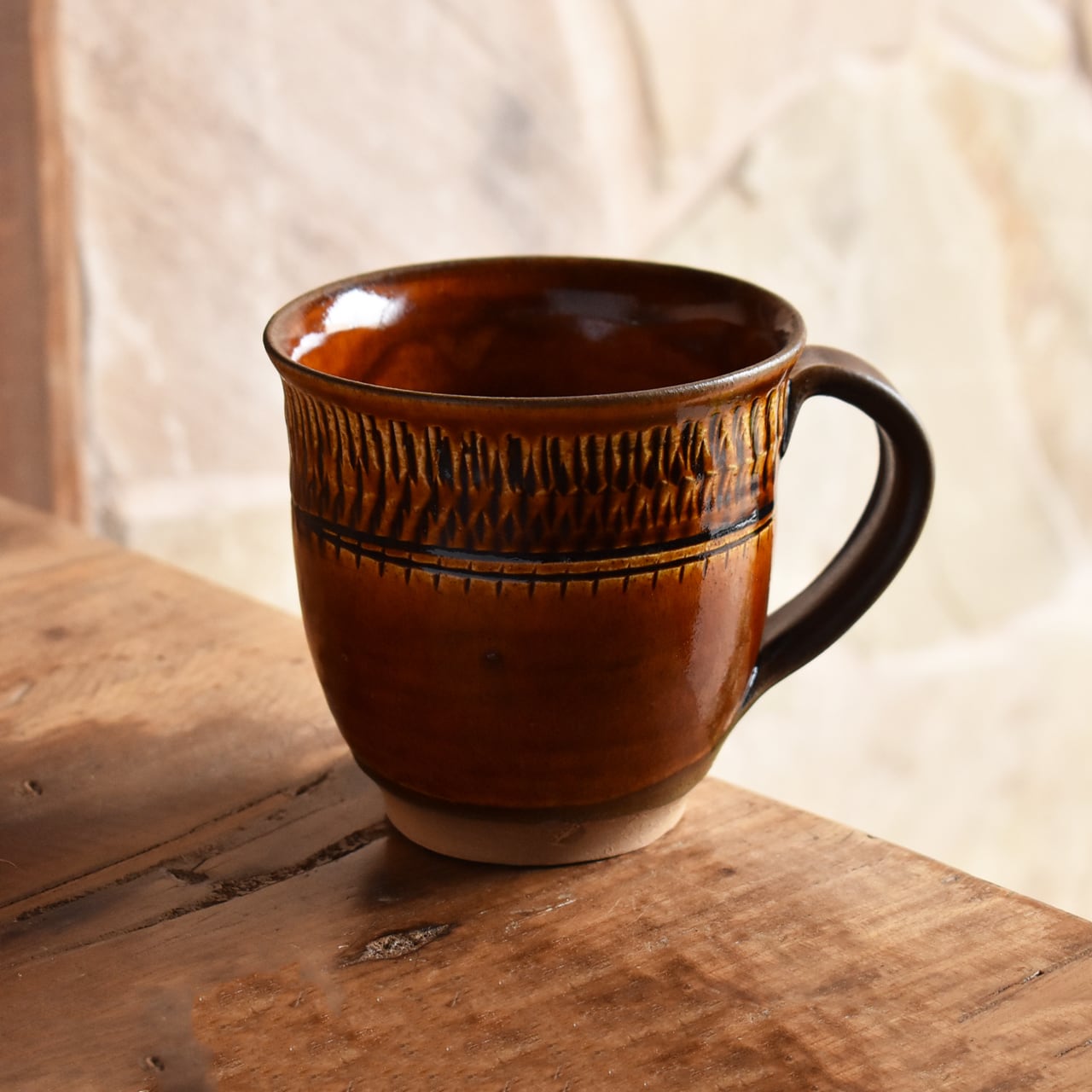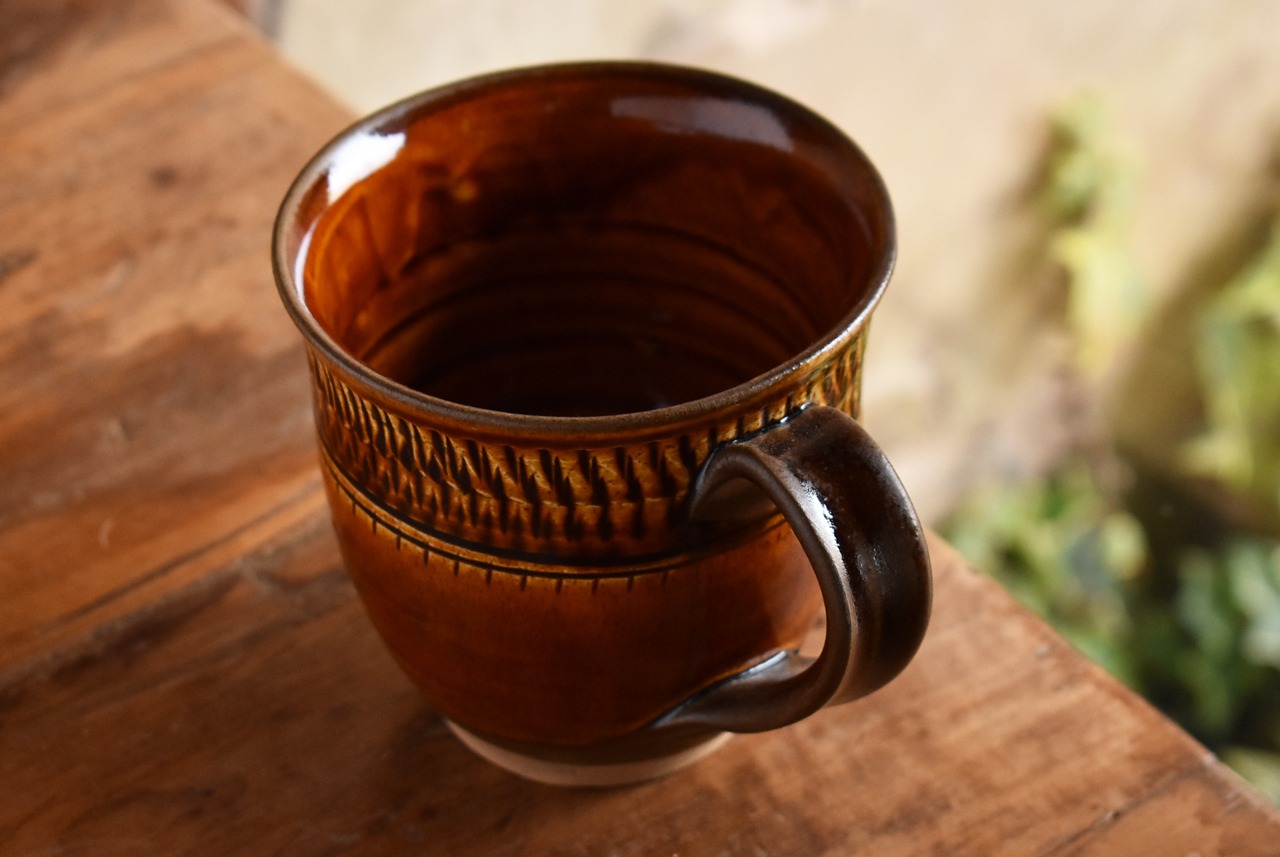 小鹿田焼 手付カップ(飛び鉋・飴・丸)