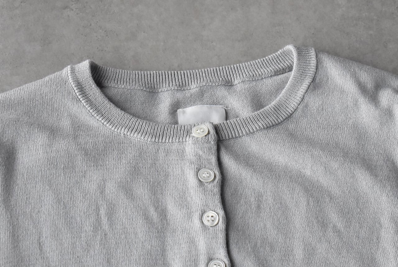 Gauze# から、カジュアルだけどどこか上品な印象に仕上げてくれるコットンニットのカーディガンが届きました。Gauze# らしい長い袖リブにギャザーを寄せた、ふっくらフォルムのアンティークスリーブが愛らしい一枚です。ほんの少しシルクがブレンドされたコットン素材は、とっても滑らかな肌触り。クラシカルなワンピースにも上品に合わせて頂けますよ。