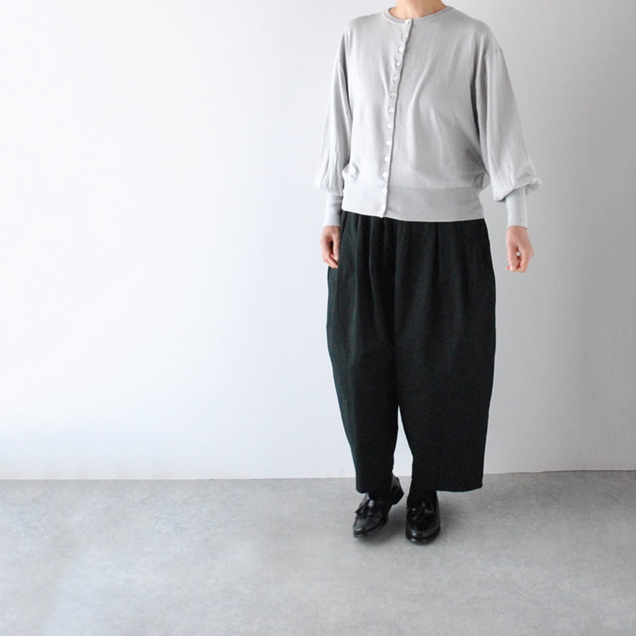 Gauze# ギャザースリーブニットカーディガン (ライトグレー) G1153