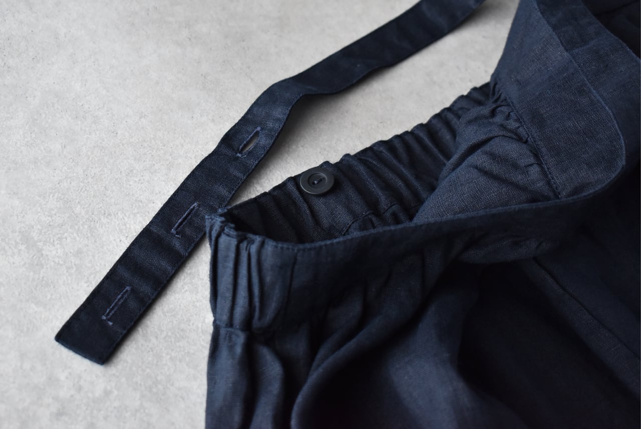 fog linen work から、パンツ幅の太いワイドシルエットがスタイルをとっても綺麗に見せてくれるサロペットが届きました。季節のインナーを合わせるだけで、簡単に素敵に仕上がるオススメアイテムです。胸当ての背中側はゴムになっているので、着脱もラクチン。太めの肩ヒモも安心感がありますよ。春から夏にかけて手放せない一着になりそうです。