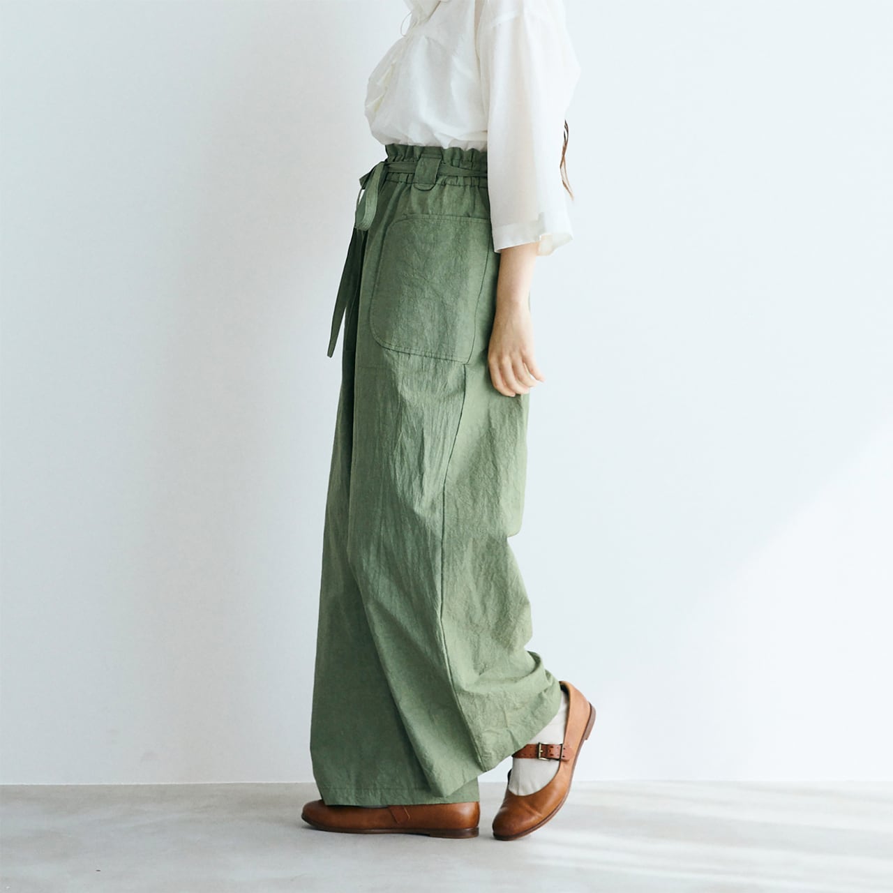 MAGALIから、たっぷりとしたボリューム感で大人っぽく履いて頂けるワイドパンツが届きました。どこか柔らかな表情のあるストレートシルエットが、身体のラインを優しく包み込んでくれる安心感のある一枚。ウエストはゴム仕様で、付属のリボンを結んで着用してもいいですし、リボンを外して内側のヒモで調節する事も出来ますよ。天日干しで仕上げたコットンリネン素材はふっくらとして、とても軽く、和を感じさせる色味も本当に素敵。足を長く、上半身をスッキリと見せてくれるのも嬉しいポイントです。