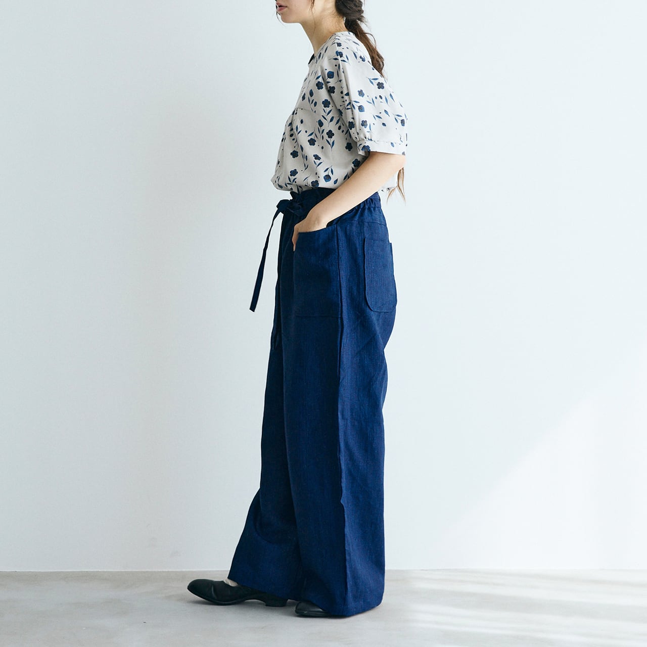 MAGALI インディゴリネン・ロングパンツ (ネイビー) PT68NY