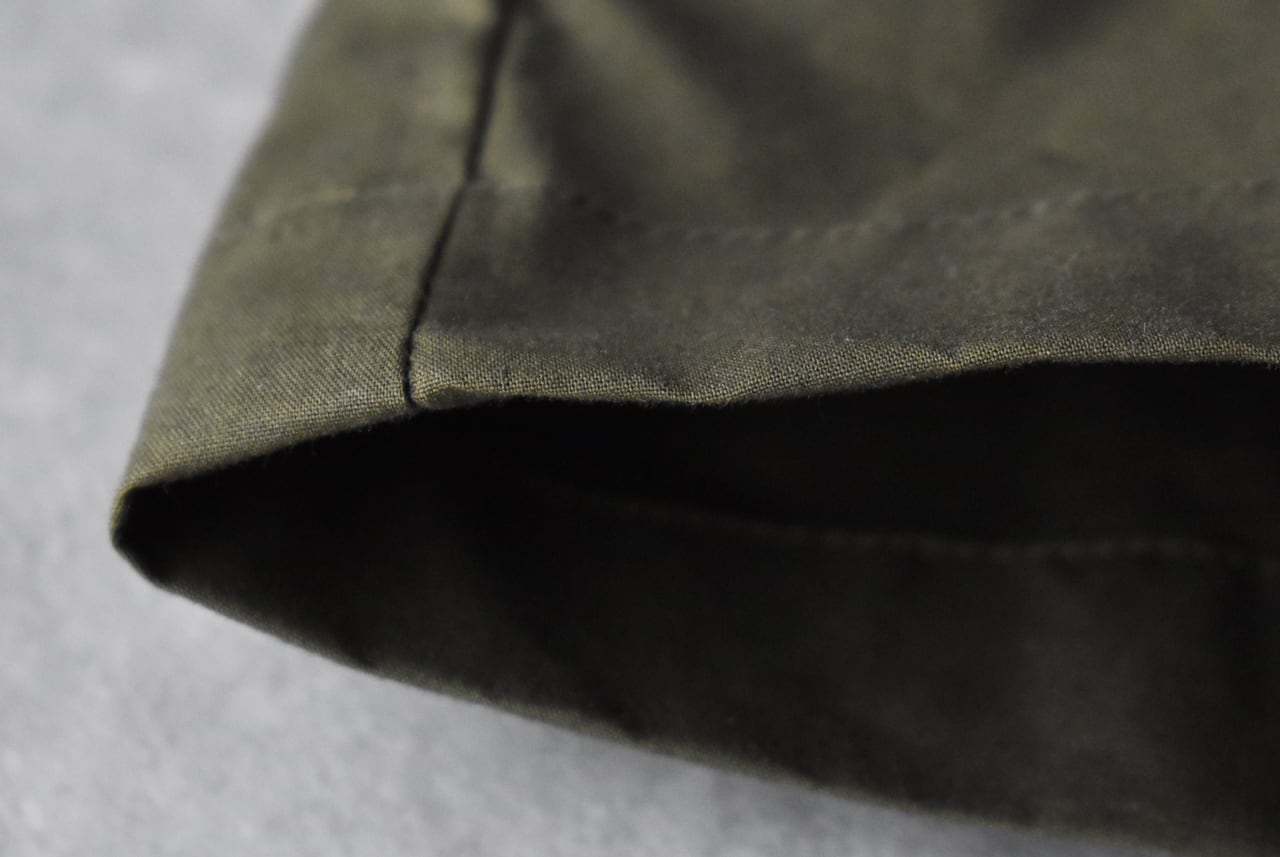 ※こちらの商品は、コットン生地にワックスをコーティングする事で生まれる風合いが特徴となっております。風合いの変化を避ける為、下記の点にご注意願います。