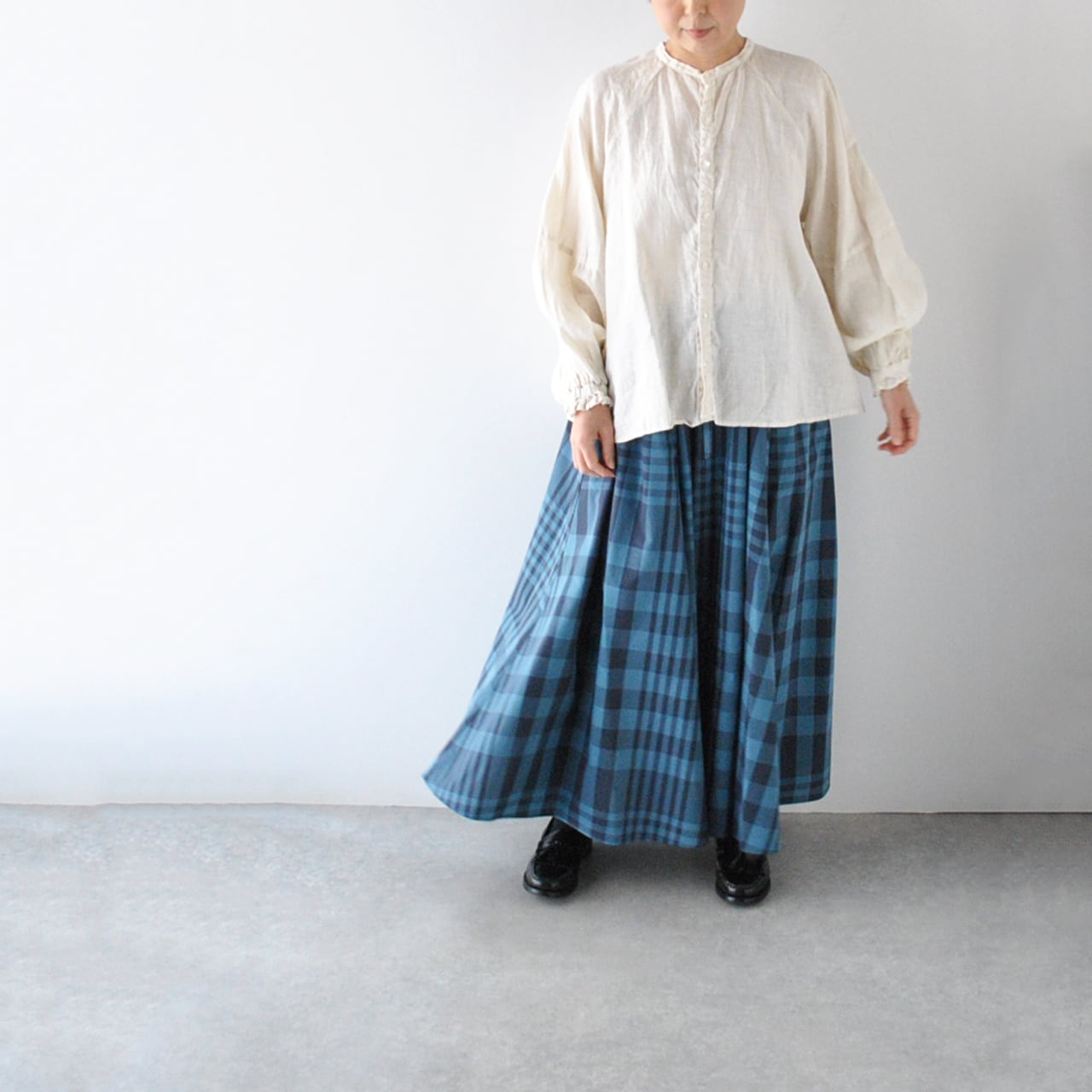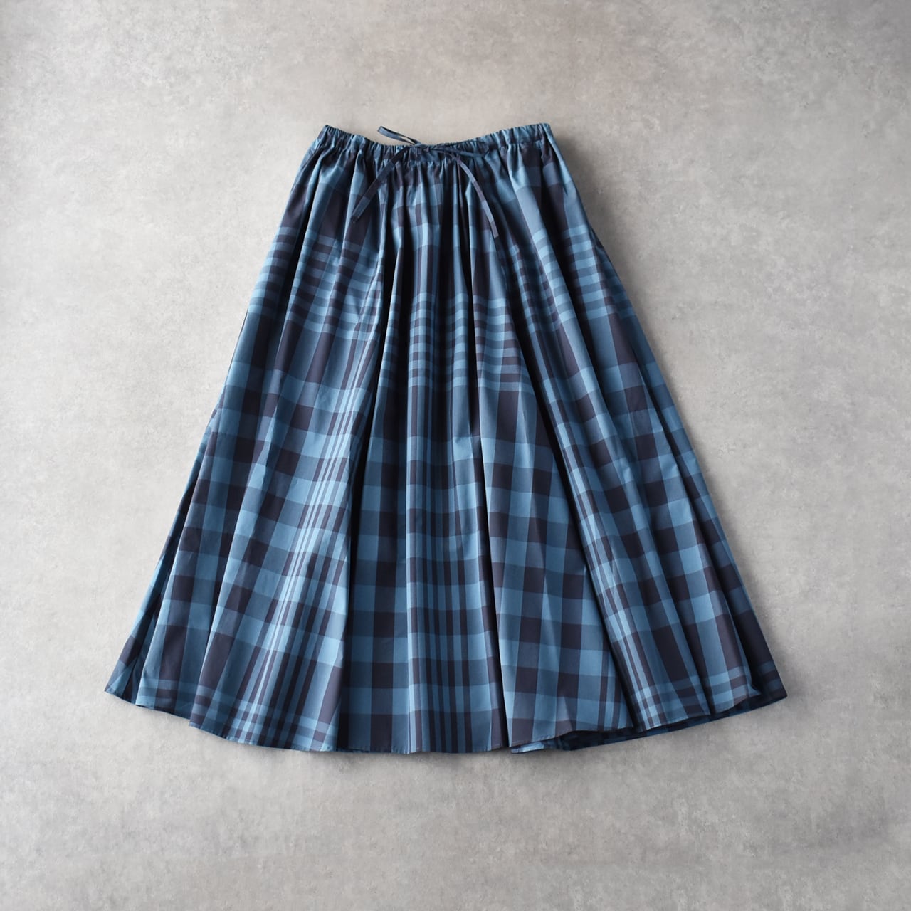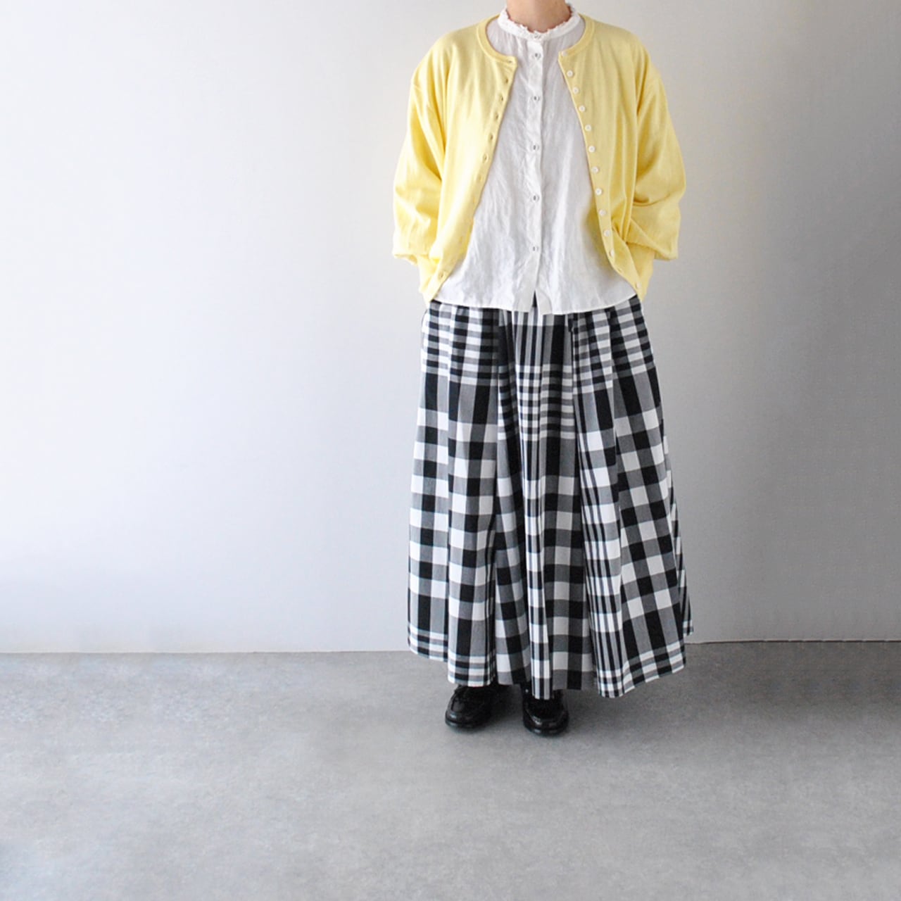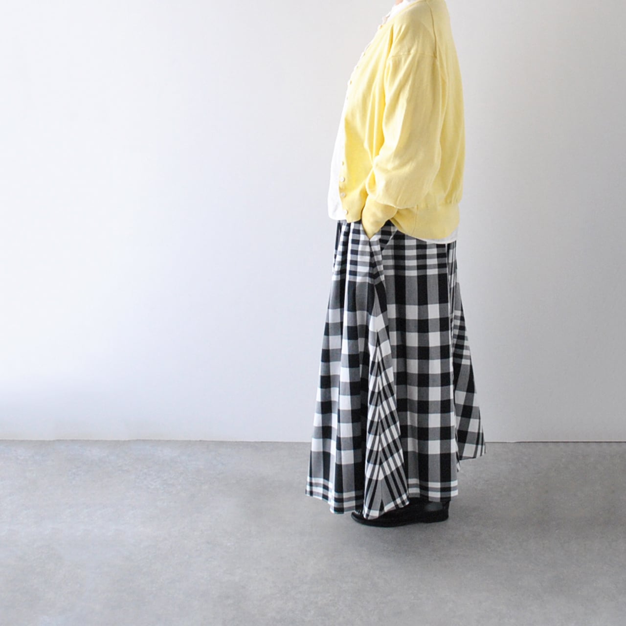 Vent d'ouestから、前後左右に4枚の布をつなぐ事でたっぷりのボリューム感と動きのある柄が生まれる美しいスカートが届きました。マルチパターンのビッグチェック柄は存在感があり、シンプルなトップスを合わせるだけで着映えする一枚ですよ。Tシャツや女性らしいブラウスはもちろん、スポーティーなアウターまで、幅広いスタイリングにお使い頂けます。高密度に織り上げたタイプライターコットンは、薄手ながらしっかりとしたハリとコシがあって軽い履き心地。動く度に揺れる姿も本当に素敵ですよ。