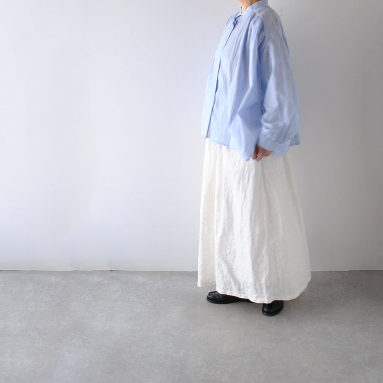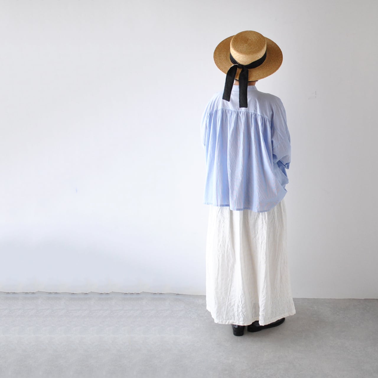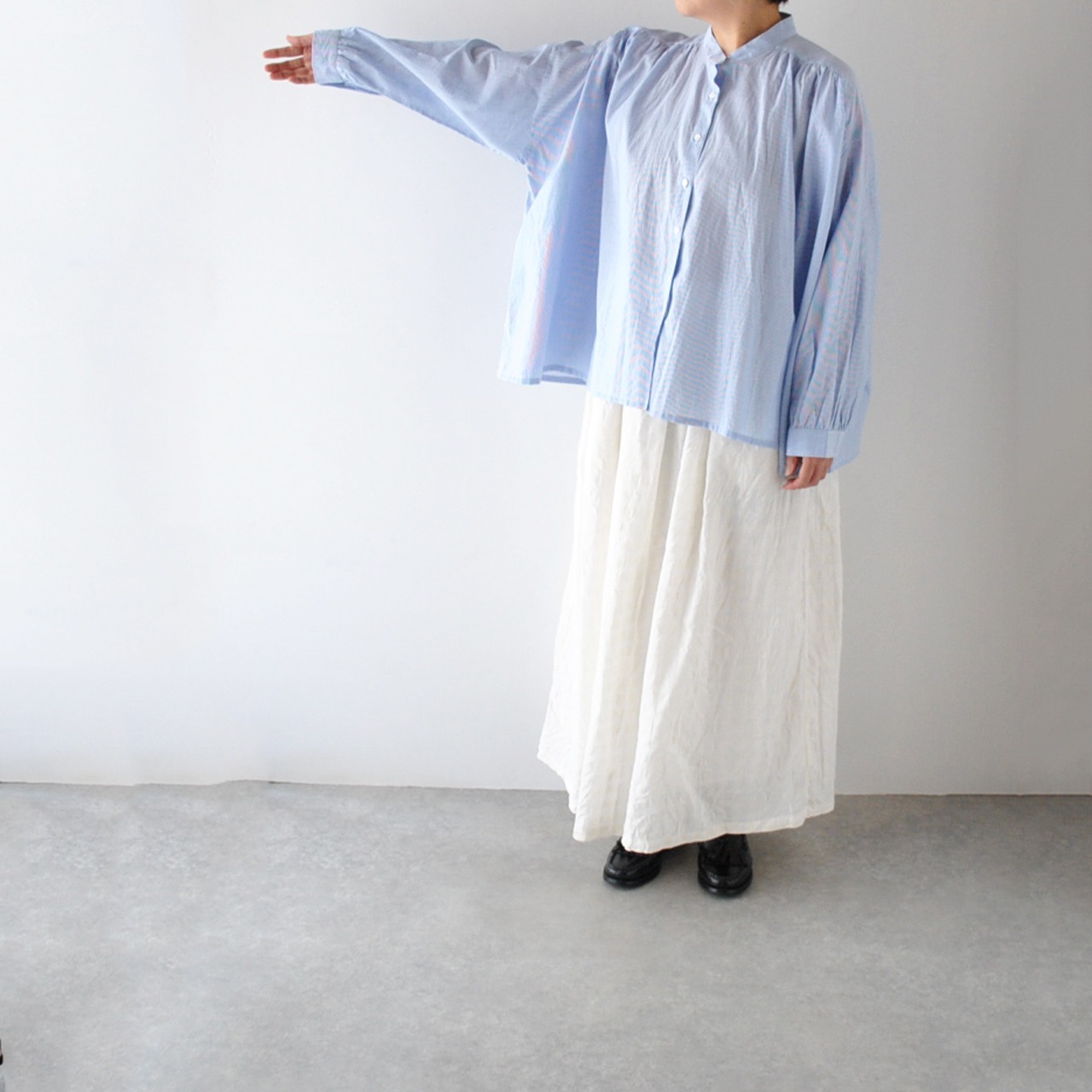 SOIL コットンボイルストライプバンドカラーギャザーシャツ (ブルー×ホワイトストライプ) NSL26011