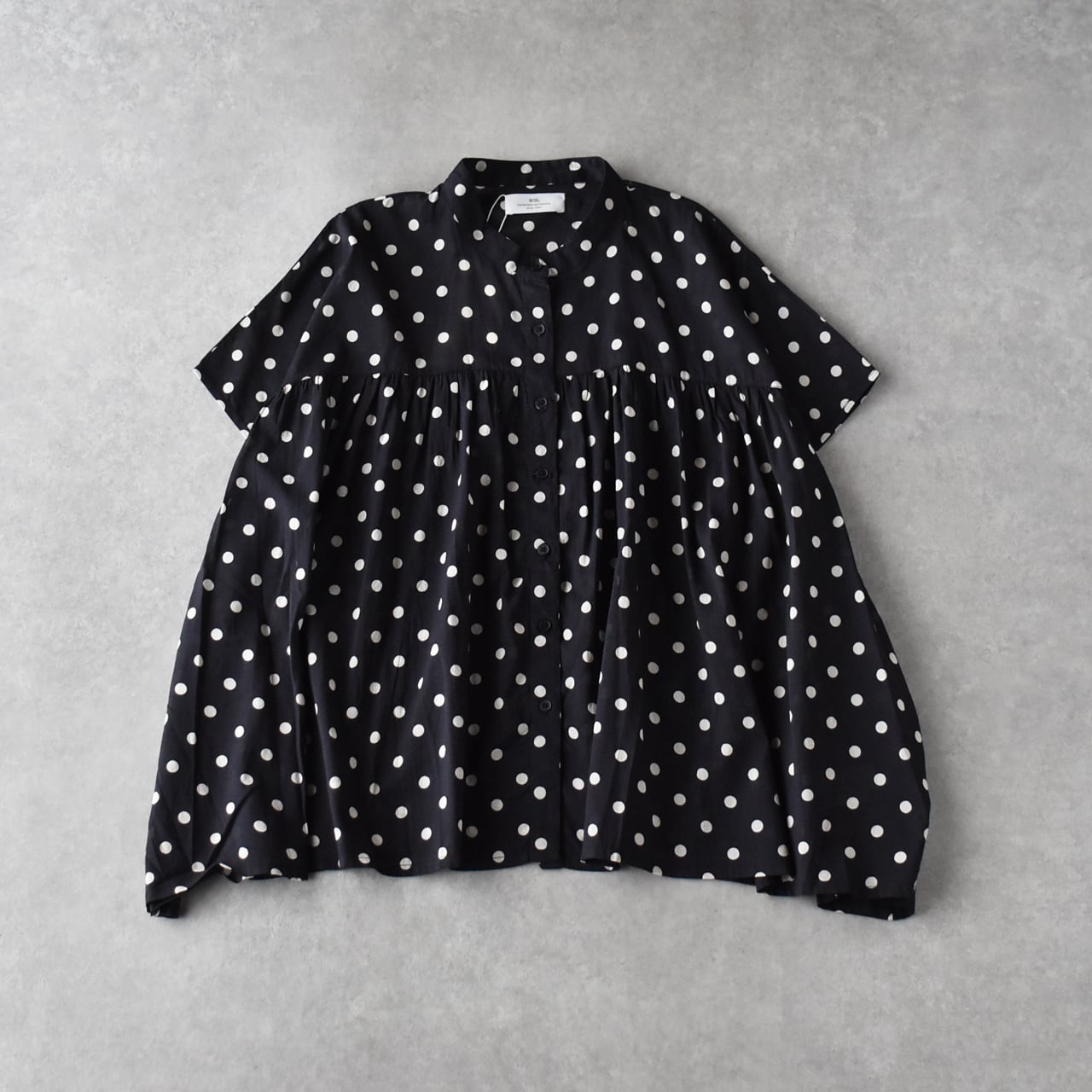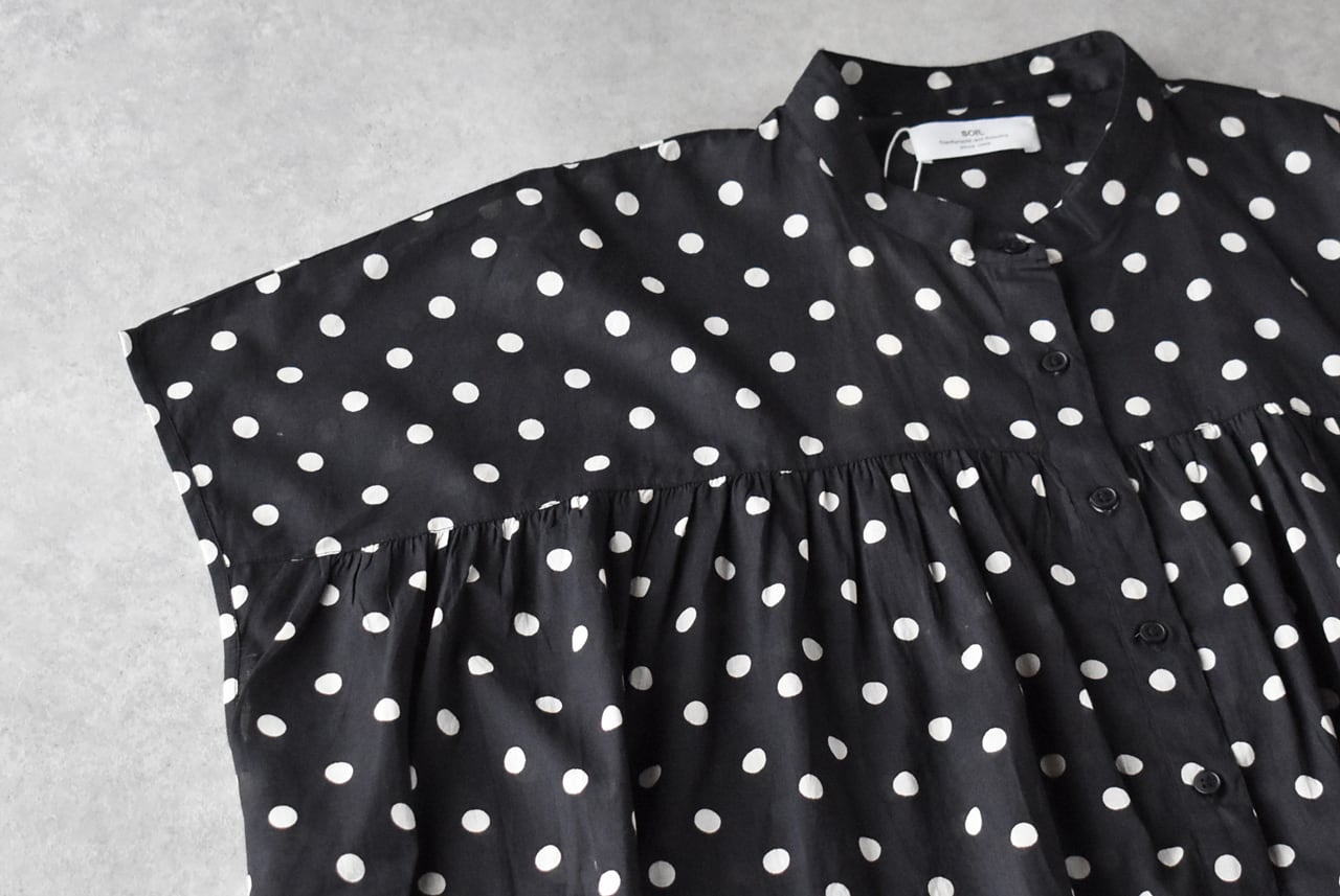 SOIL コットンボイルドットプリント フレンチスリーブブラウス(ブラック×ナチュラルラージドット) NSL26051