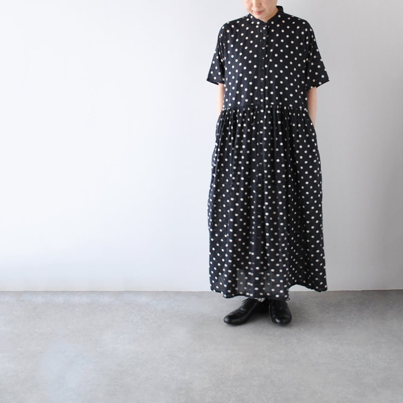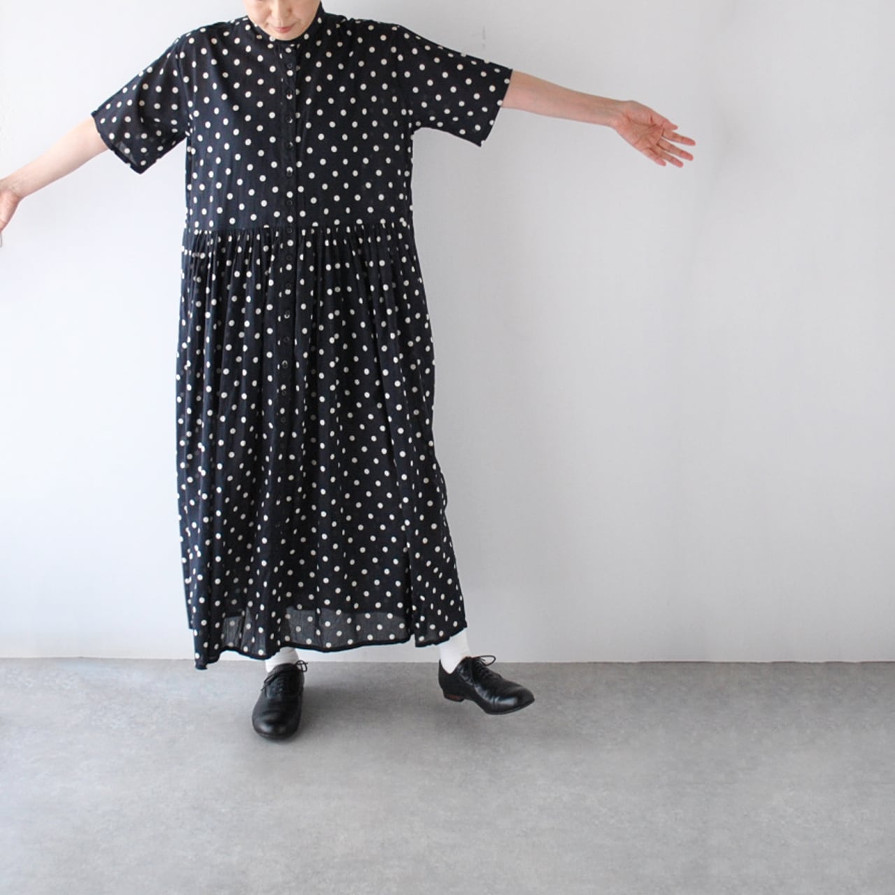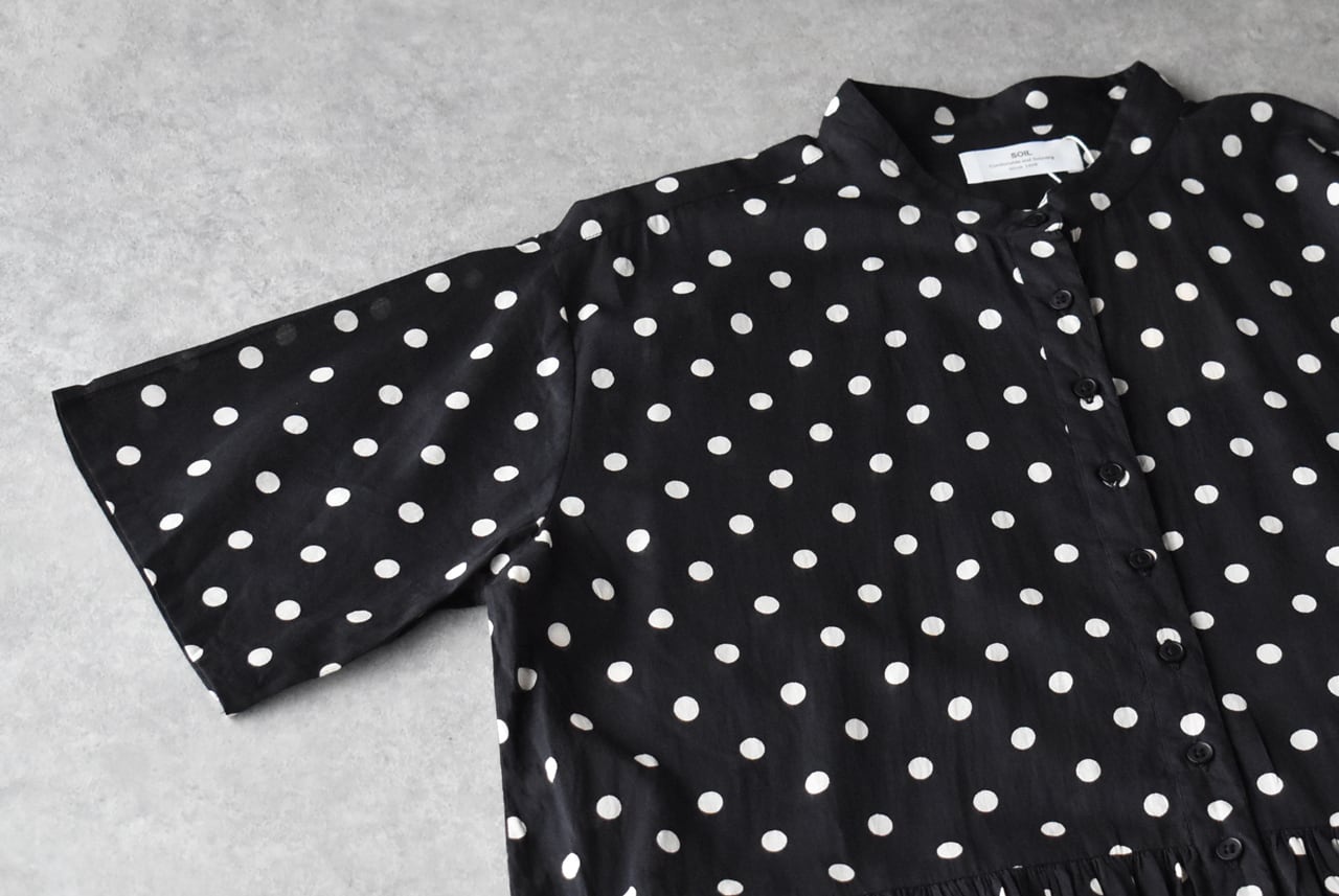 SOIL コットンボイルドットプリント バンドカラーワンピース (ブラック×ナチュラルラージドット) NSL26054