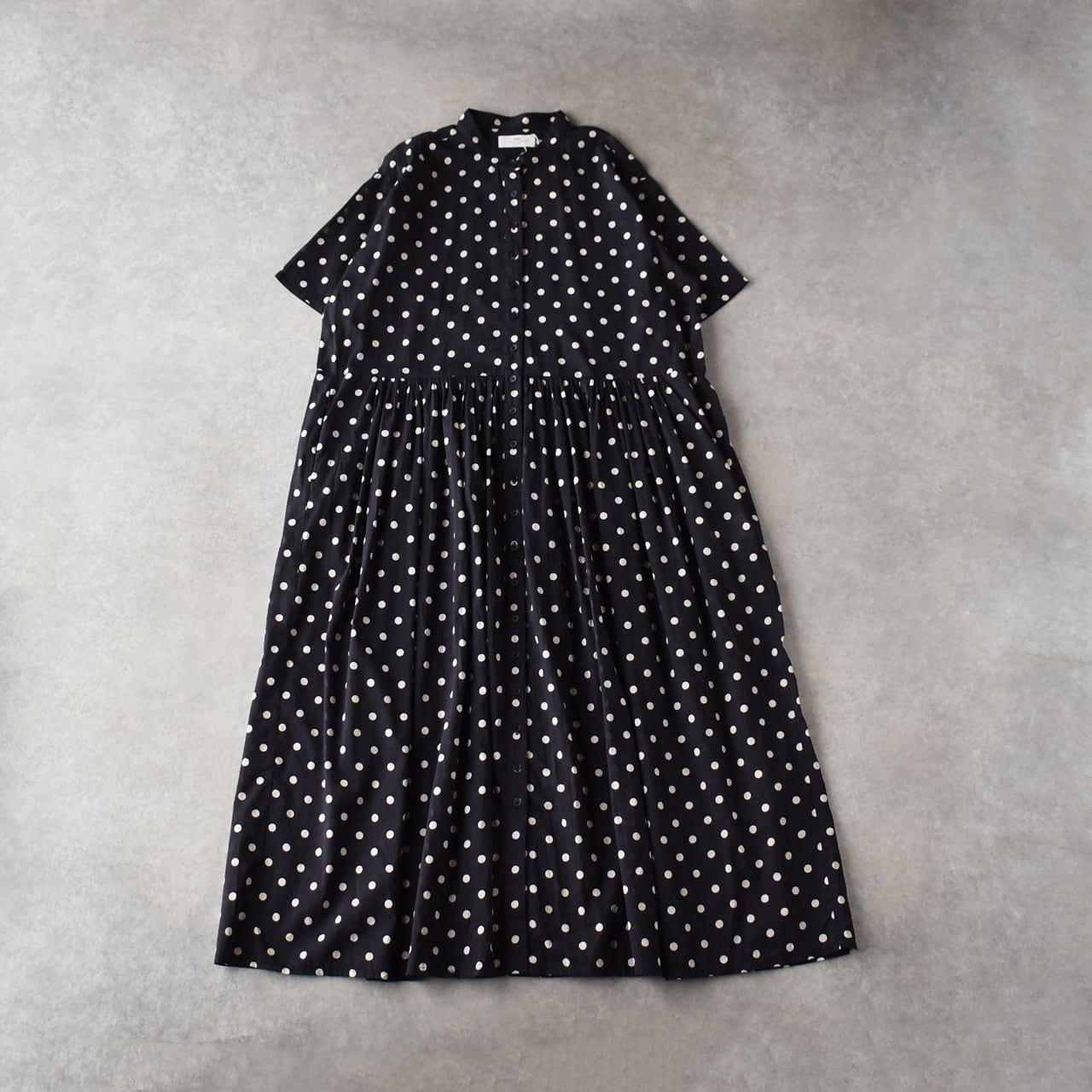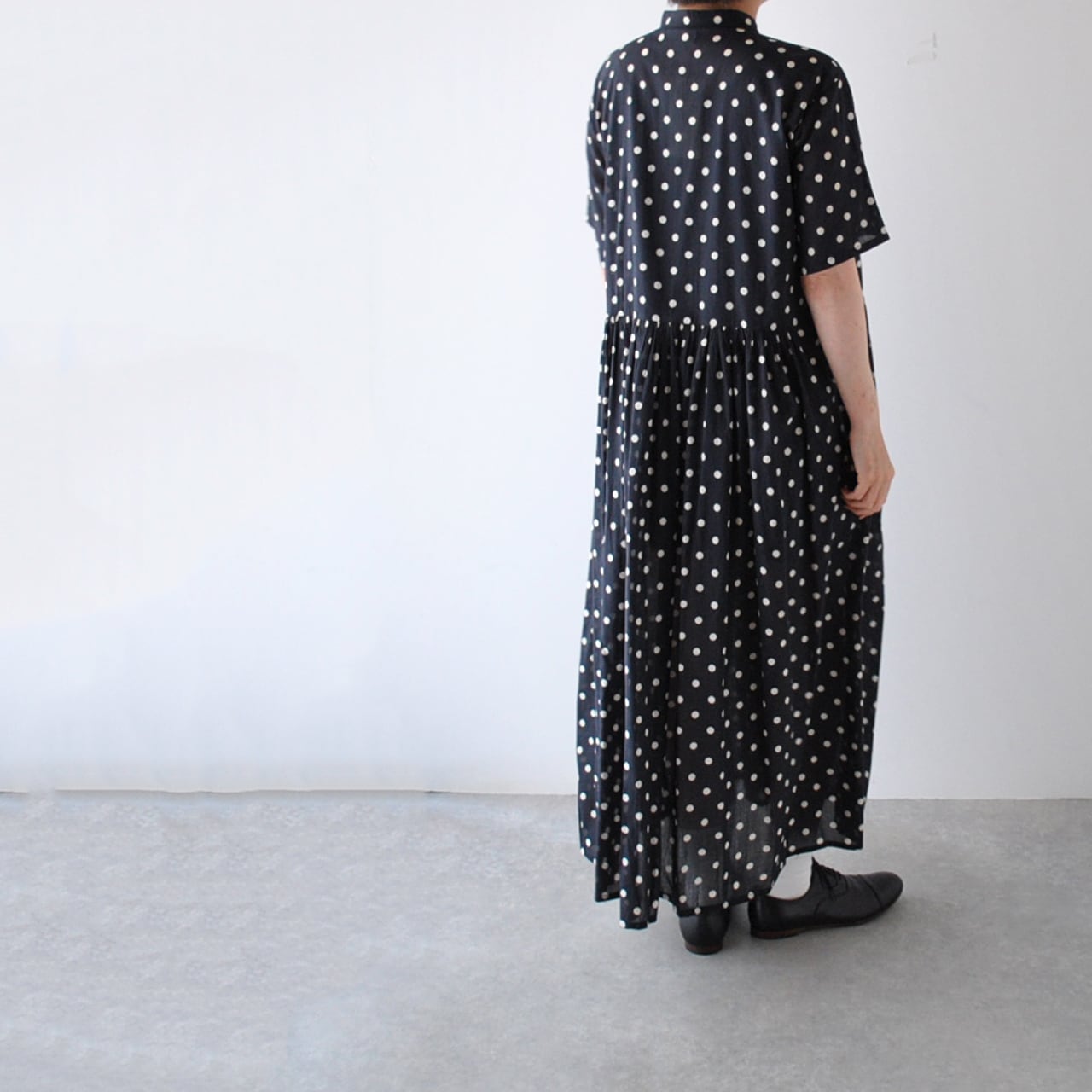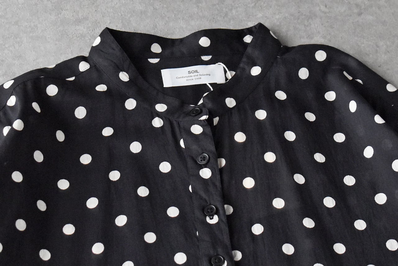 SOIL コットンボイルドットプリント バンドカラーワンピース (ブラック×ナチュラルラージドット) NSL26054