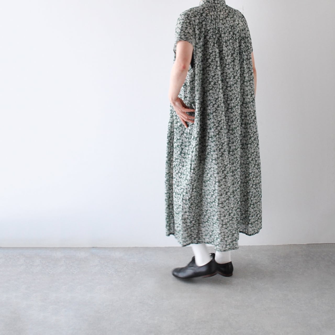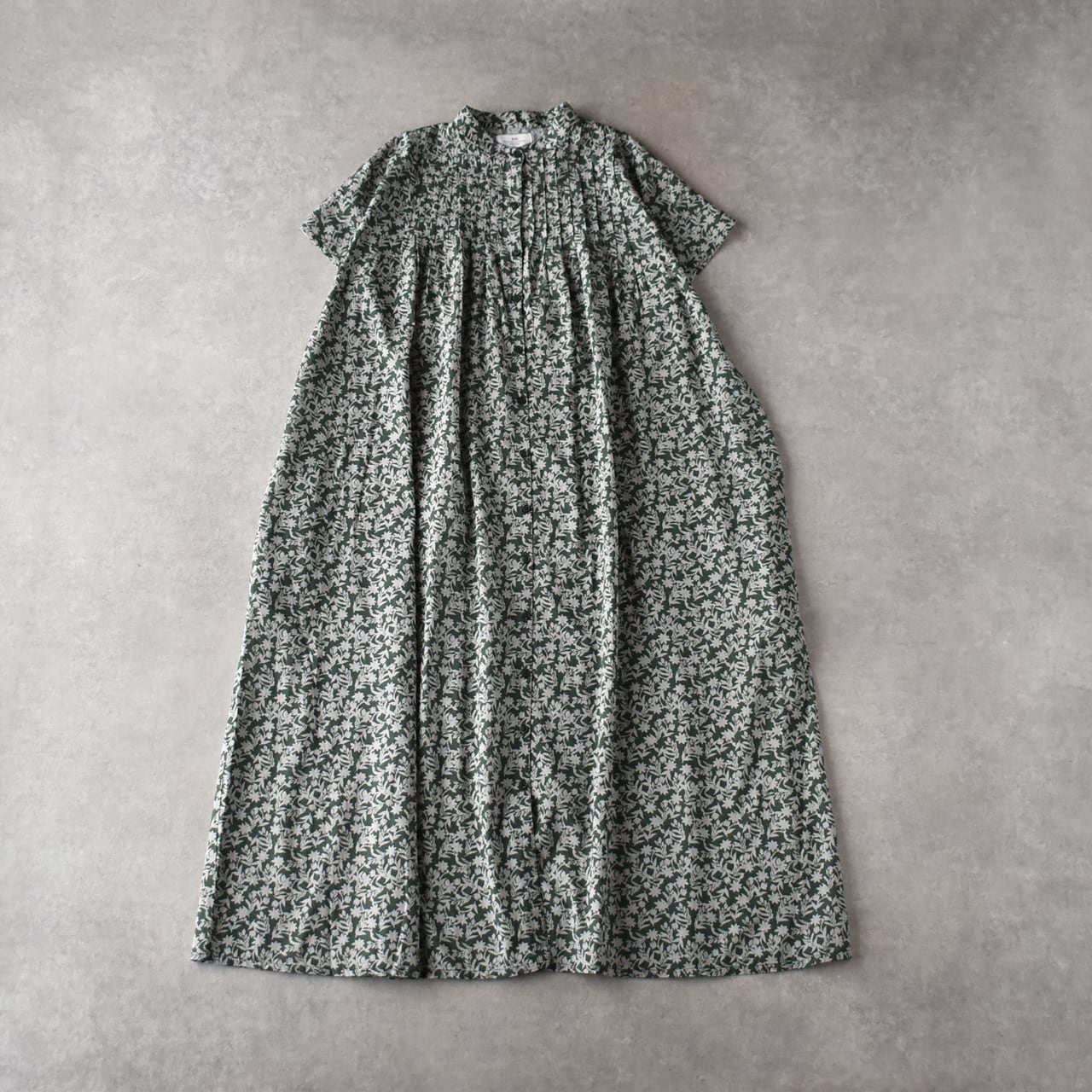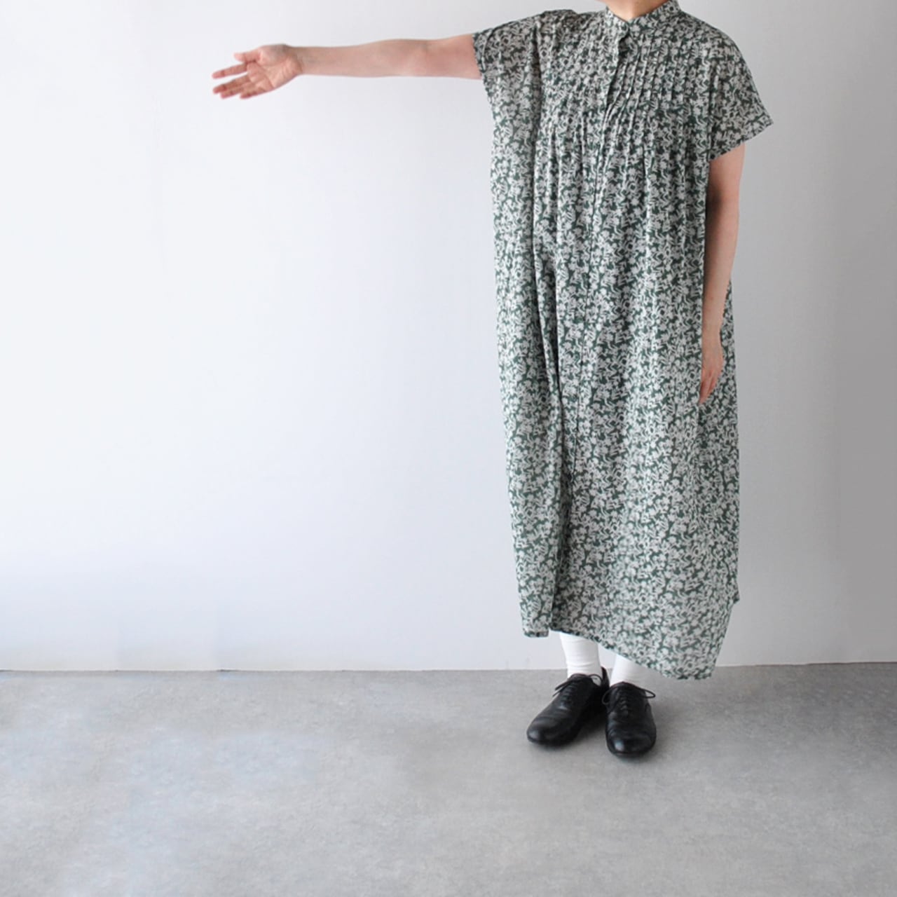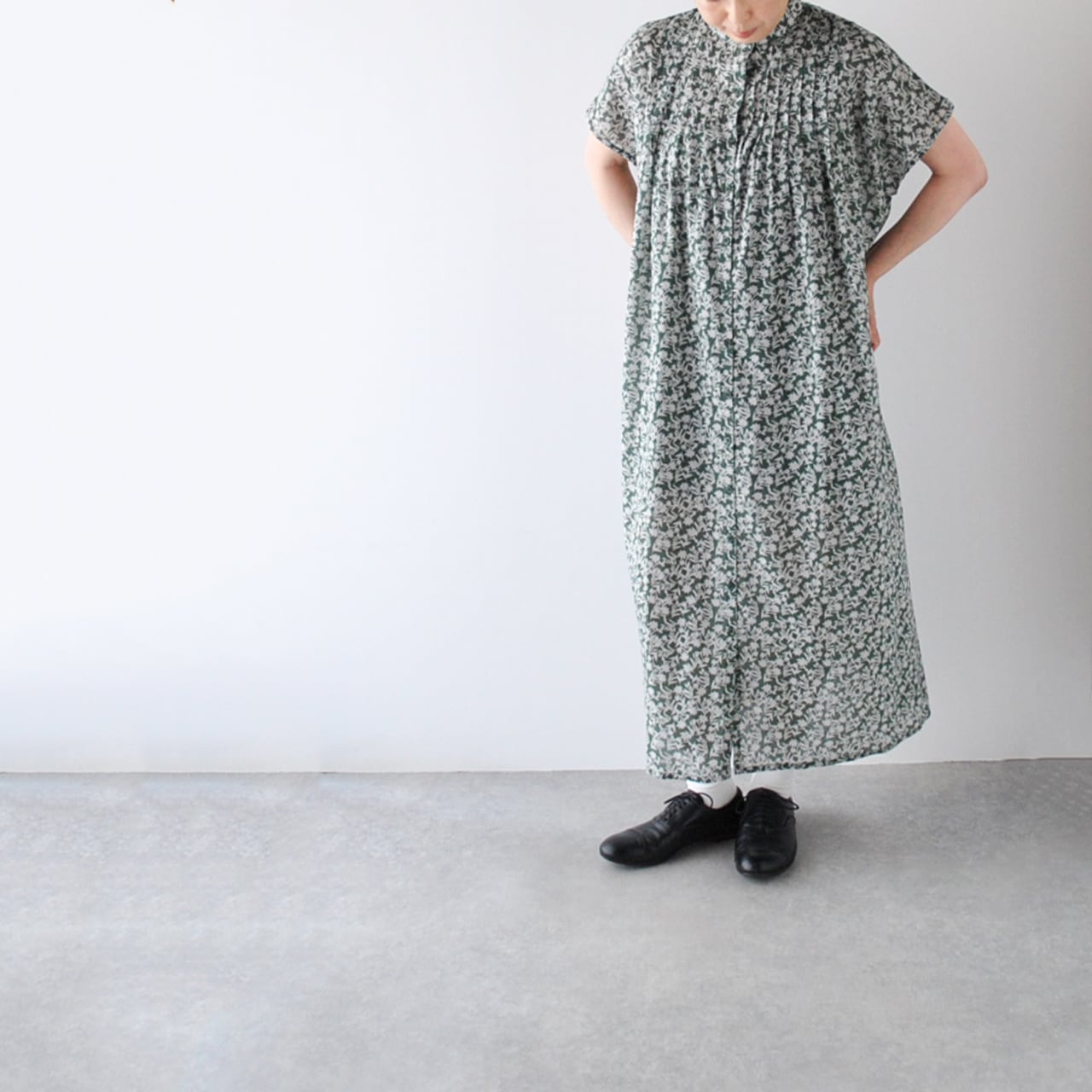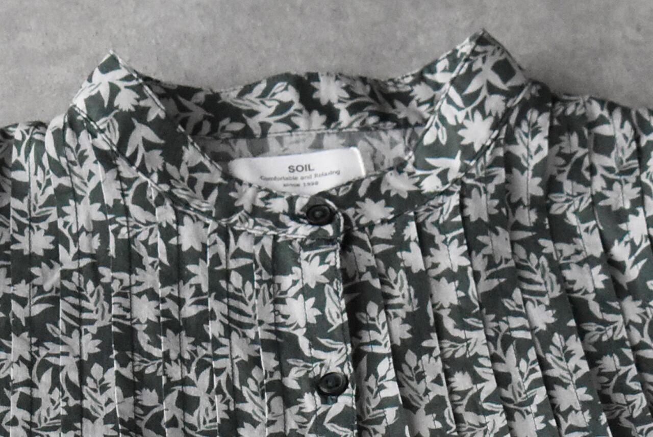 SOIL コットンボイルフラワープリント バンドカラーシャツワンピース (グリーン) NSL26073