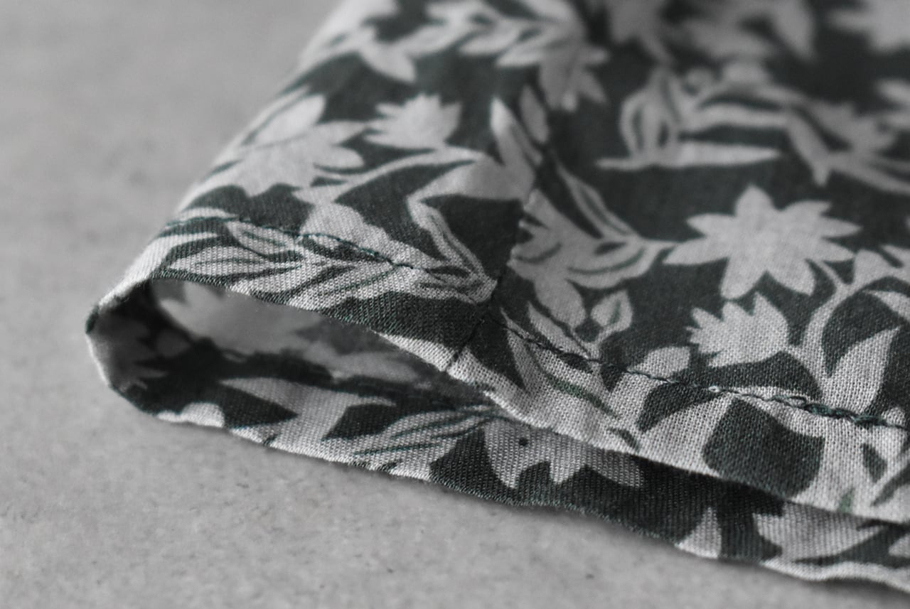 SOILから、胸元のピンタックからつながる、流れる様なドレープが美しい、フレンチスリーブワンピースが届きました。シックなカラーリングのフラワープリントは、大人っぽく楽しんで頂けますよ。身幅をたっぷり広く取ったデザインなので、リラックス感満点。薄く織り上げたコットンボイル素材も、風が通り抜けるような涼やかな着心地ですよ。暑い季節も軽く快適に楽しんで頂ける一枚です。
