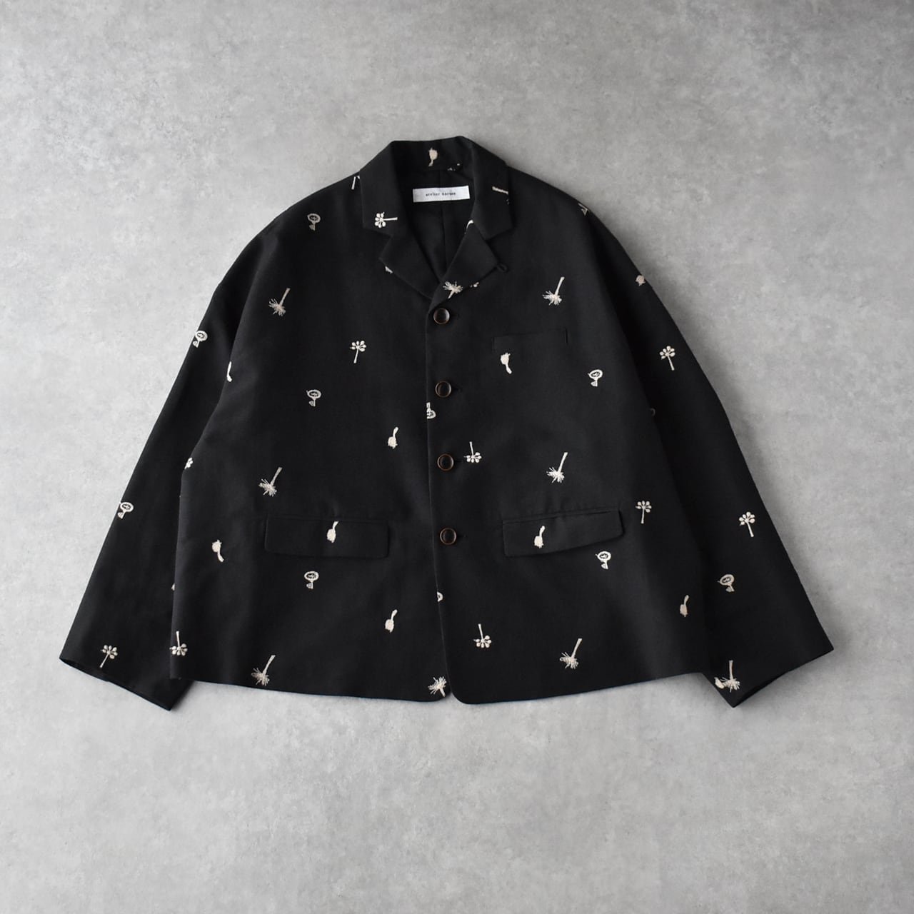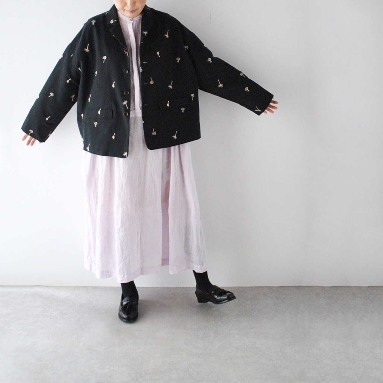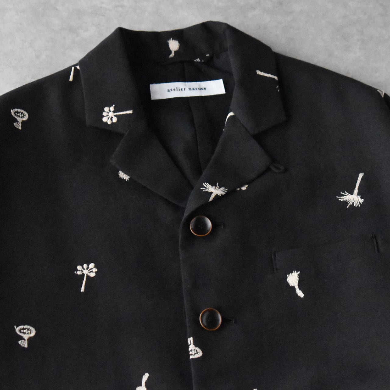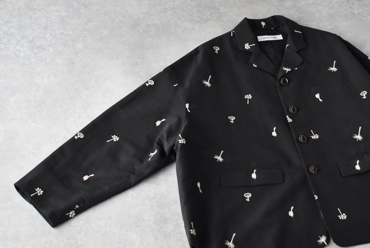 atelier naruseから、オリジナル刺繍生地「nohara」で仕立てた、特別なテーラードジャケットが届きました。モノトーンコーデでモードに楽しむのはもちろん、デニムなどと合わせてラフに着こなすのも素敵な一枚ですよ。ワンピースにサッと羽織って頂くのももちろんオススメ。5月にはセットアップ出来るスカートが入荷予定なのでちらも楽しみ。ざっくりと織り上げたコットンリネン生地もヴィンテージのような風合いで柔らかくしなやか。ポリエステルの裏地付きなので着脱もラクチン。陶器の様な質感のボタンや、フラップ付きのポケット、バックスタイルのベンツ開きなど、atelier naruseらしくしっかりとしたテーラードのディテールにこだわった上質な一枚です。