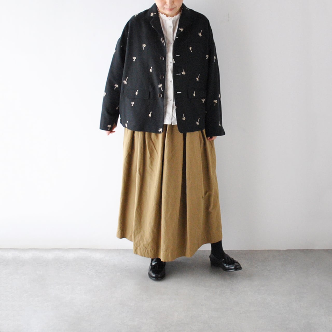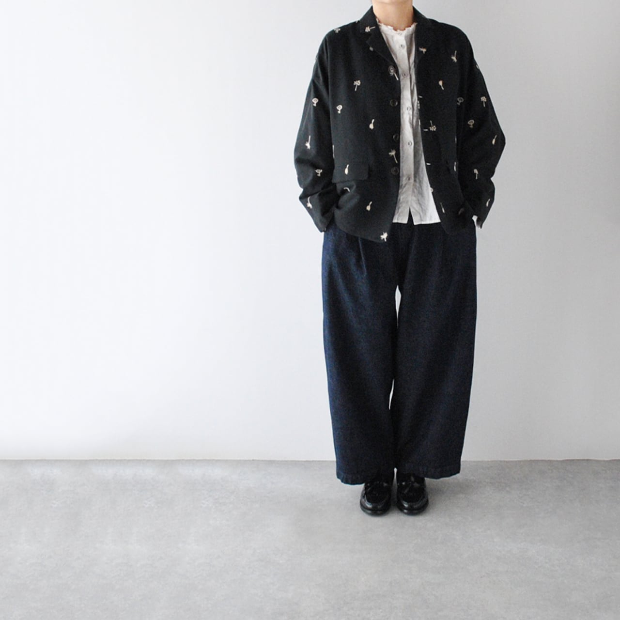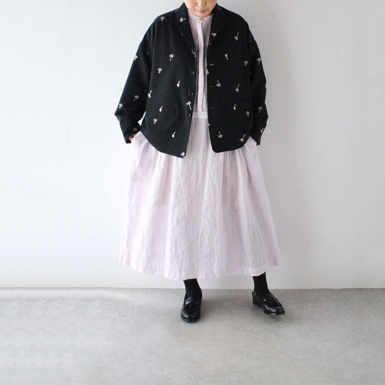 atelier naruseから、オリジナル刺繍生地「nohara」で仕立てた、特別なテーラードジャケットが届きました。モノトーンコーデでモードに楽しむのはもちろん、デニムなどと合わせてラフに着こなすのも素敵な一枚ですよ。ワンピースにサッと羽織って頂くのももちろんオススメ。5月にはセットアップ出来るスカートが入荷予定なのでちらも楽しみ。ざっくりと織り上げたコットンリネン生地もヴィンテージのような風合いで柔らかくしなやか。ポリエステルの裏地付きなので着脱もラクチン。陶器の様な質感のボタンや、フラップ付きのポケット、バックスタイルのベンツ開きなど、atelier naruseらしくしっかりとしたテーラードのディテールにこだわった上質な一枚です。