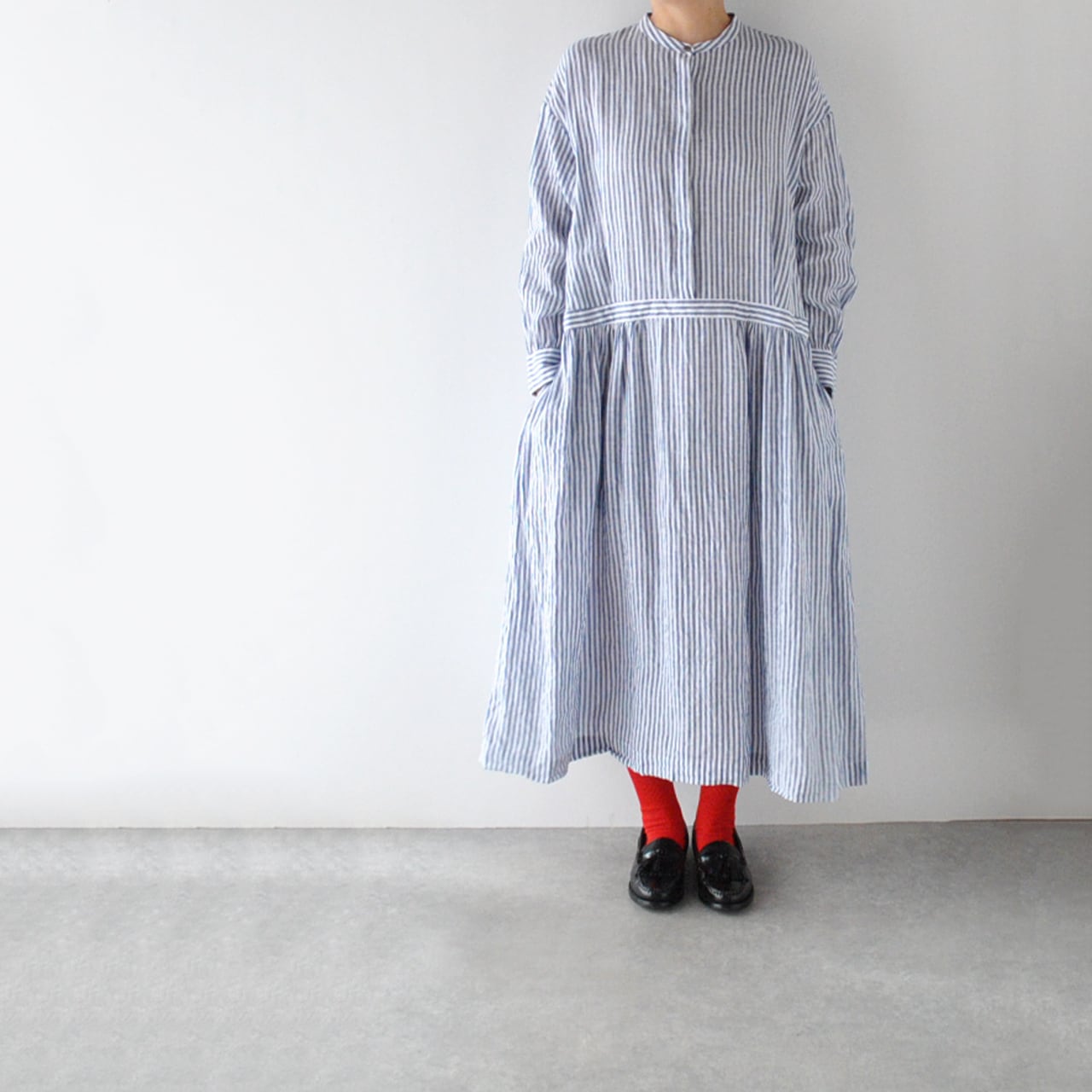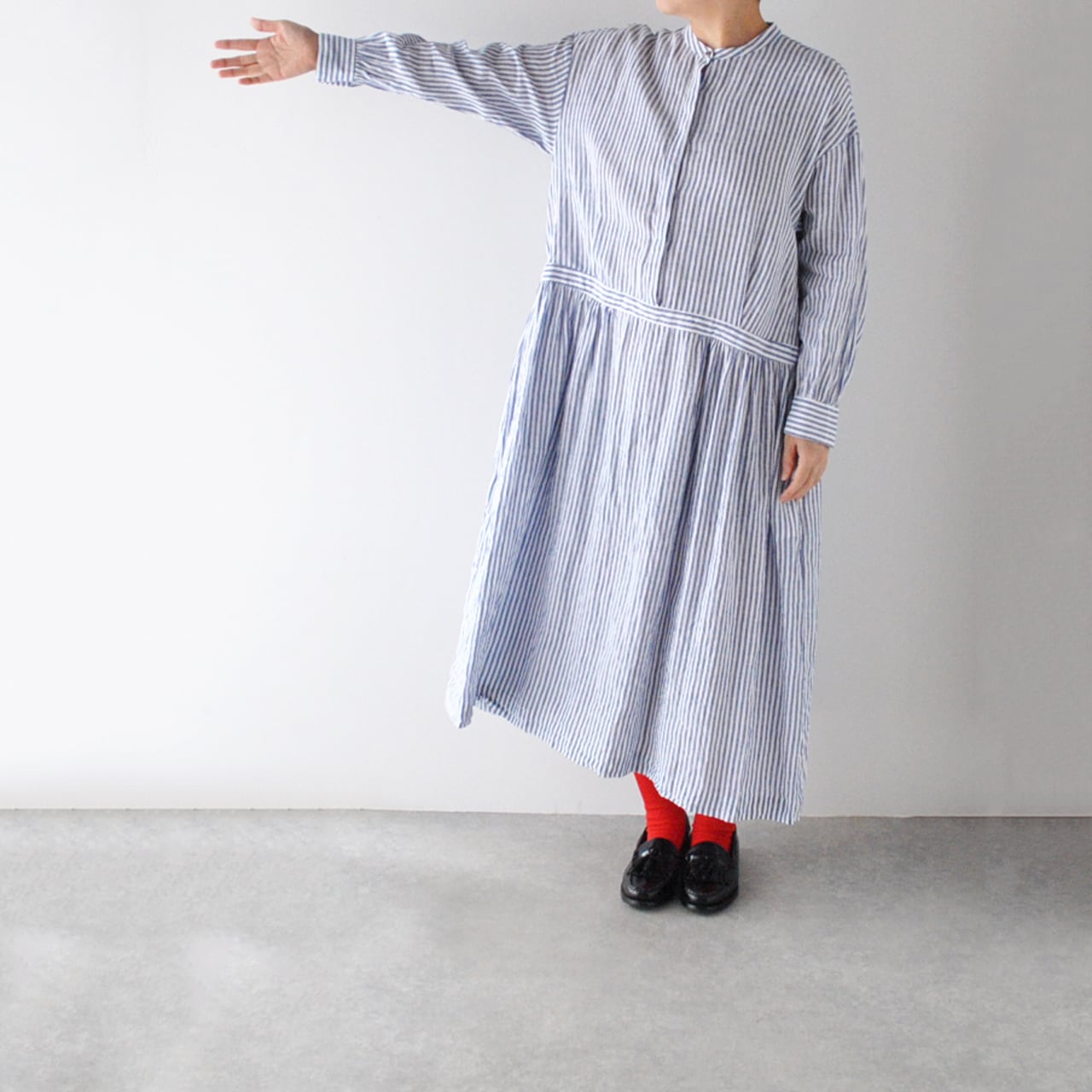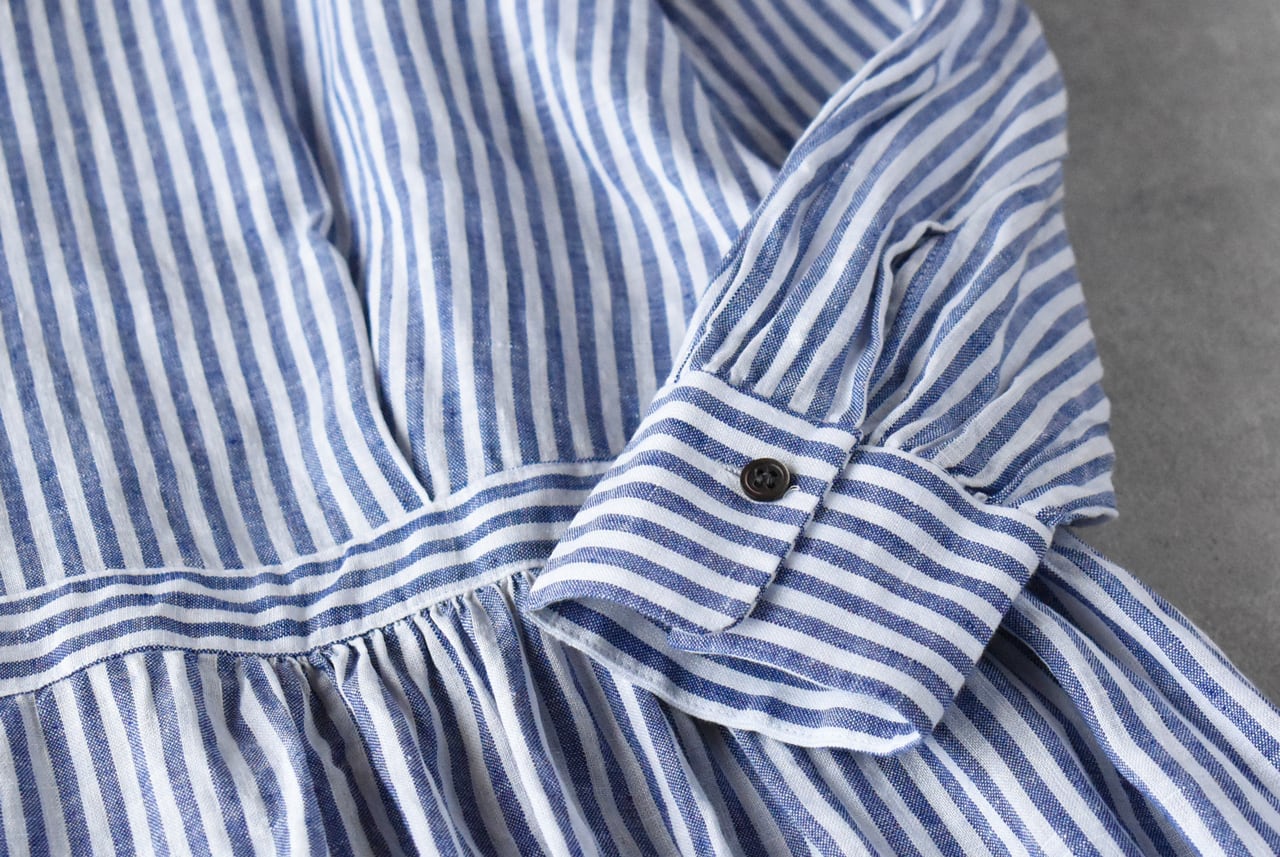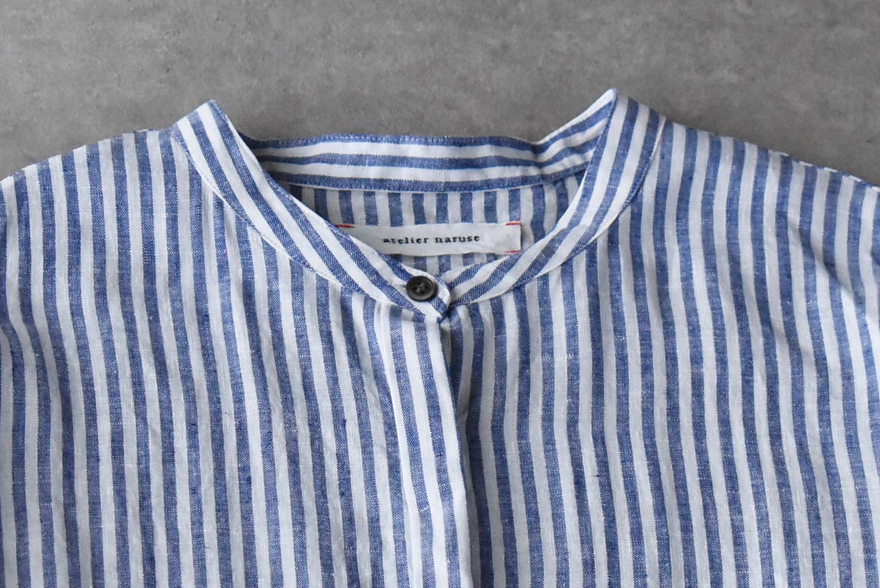 atelier naruse リネンシャツワンピース (ブルーストライプ) H03107