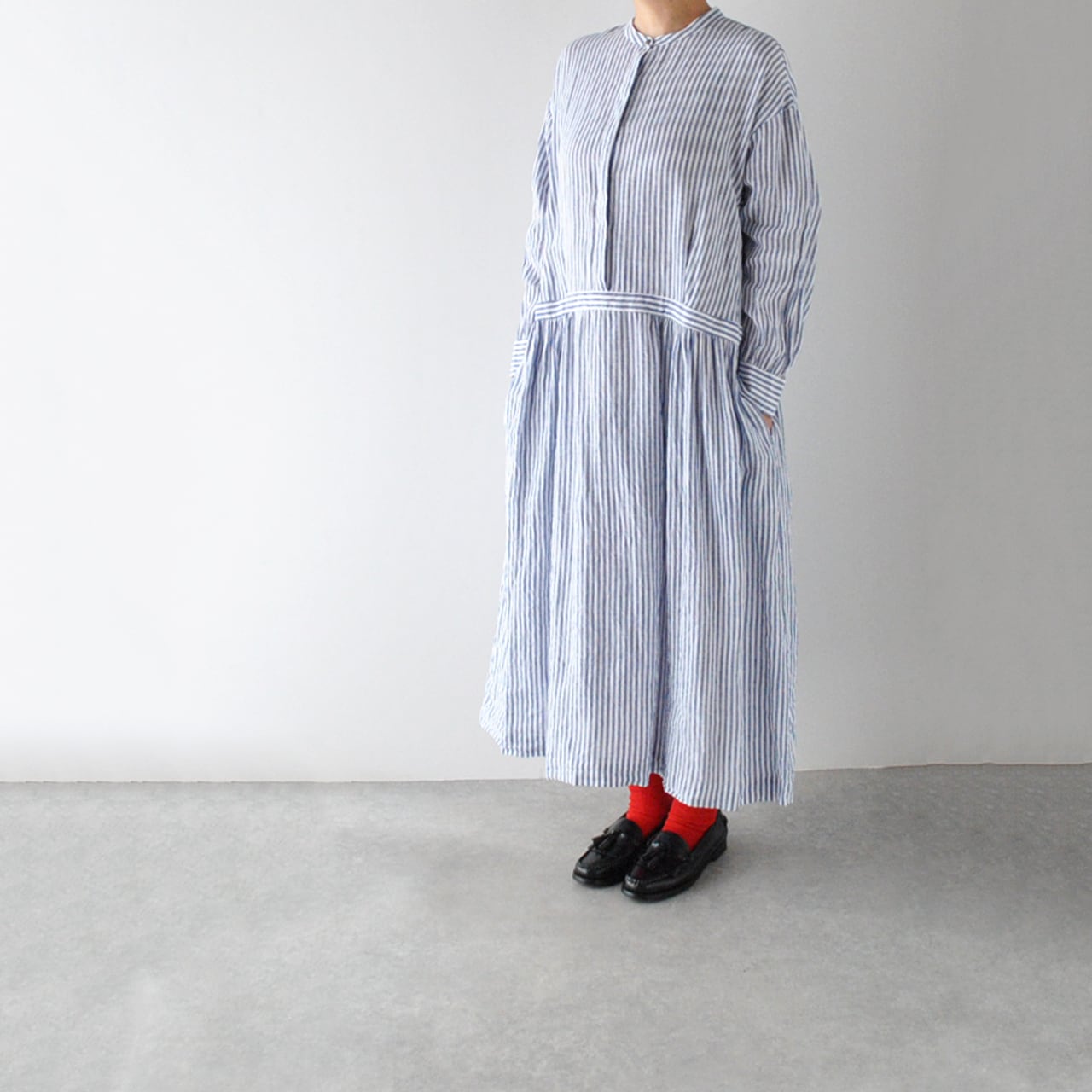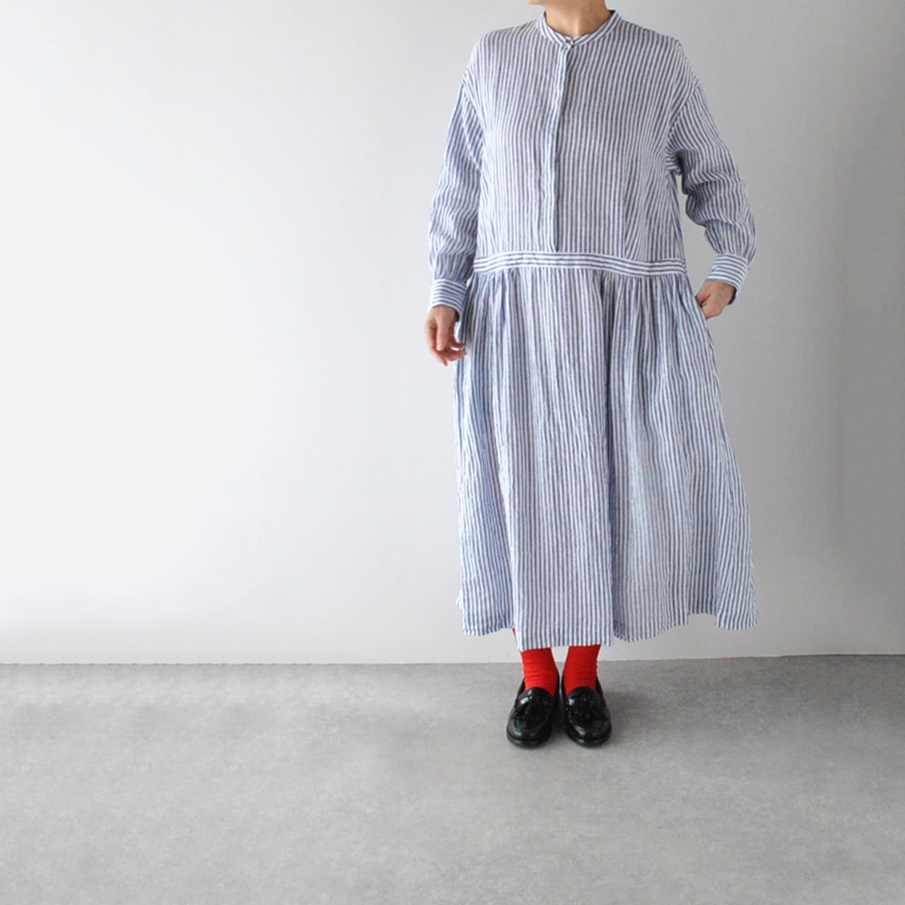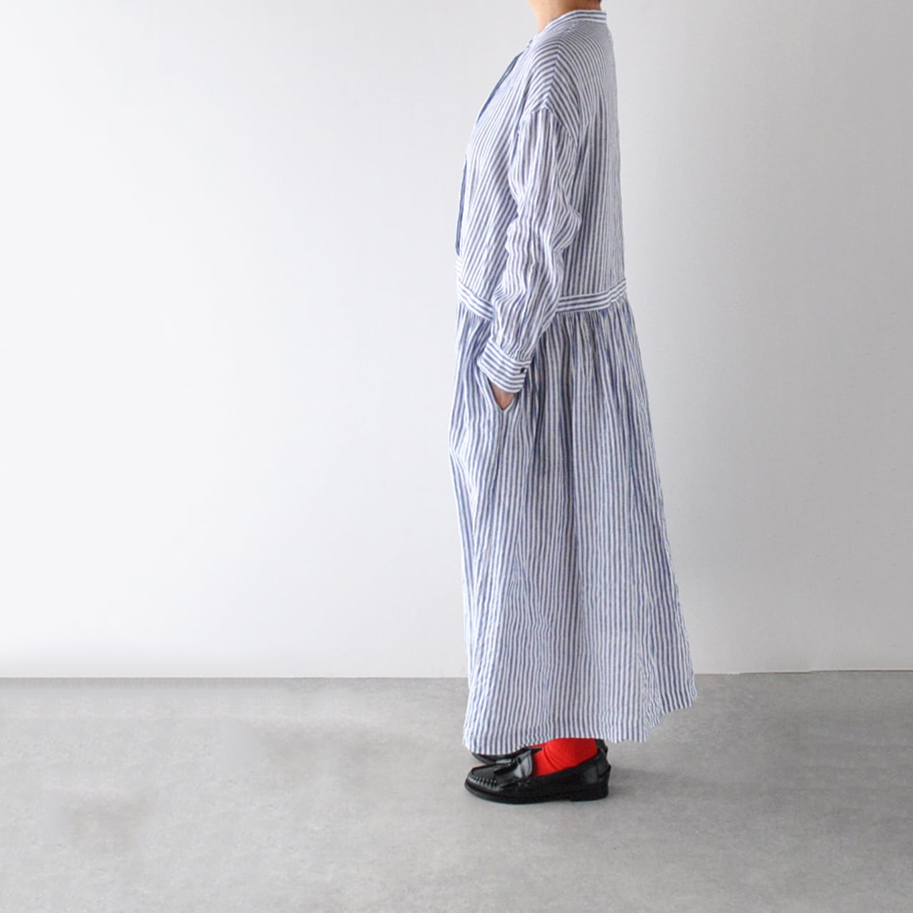 atelier naruse リネンシャツワンピース (ブルーストライプ) H03107