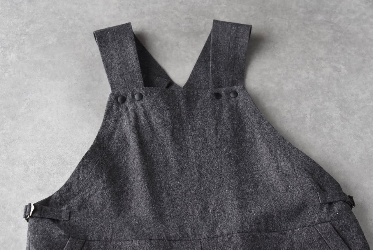 atelier naruseから、ぽってりとしたフォルムが愛らし、ゆったりと着用頂けるオーバーオールが届きました。2024年の秋冬シーズンに初登場したこちらのオーバーオール。今回はより多くの方に着て頂けるように、サルエル感控えめにリ・デザインされました。インナーにお気に入りのブラウスやTシャツを合わせるだけでとっても可愛く仕上げてくれますよ。凹凸のあるスラブコットンもヴィンテージのような風合いで、透け感もありません。太めの肩ヒモも安心感がありますね。肩ヒモはホックボタンで2段階に、ウエストはバックルでサイズ調整できるのも嬉しいポイント。