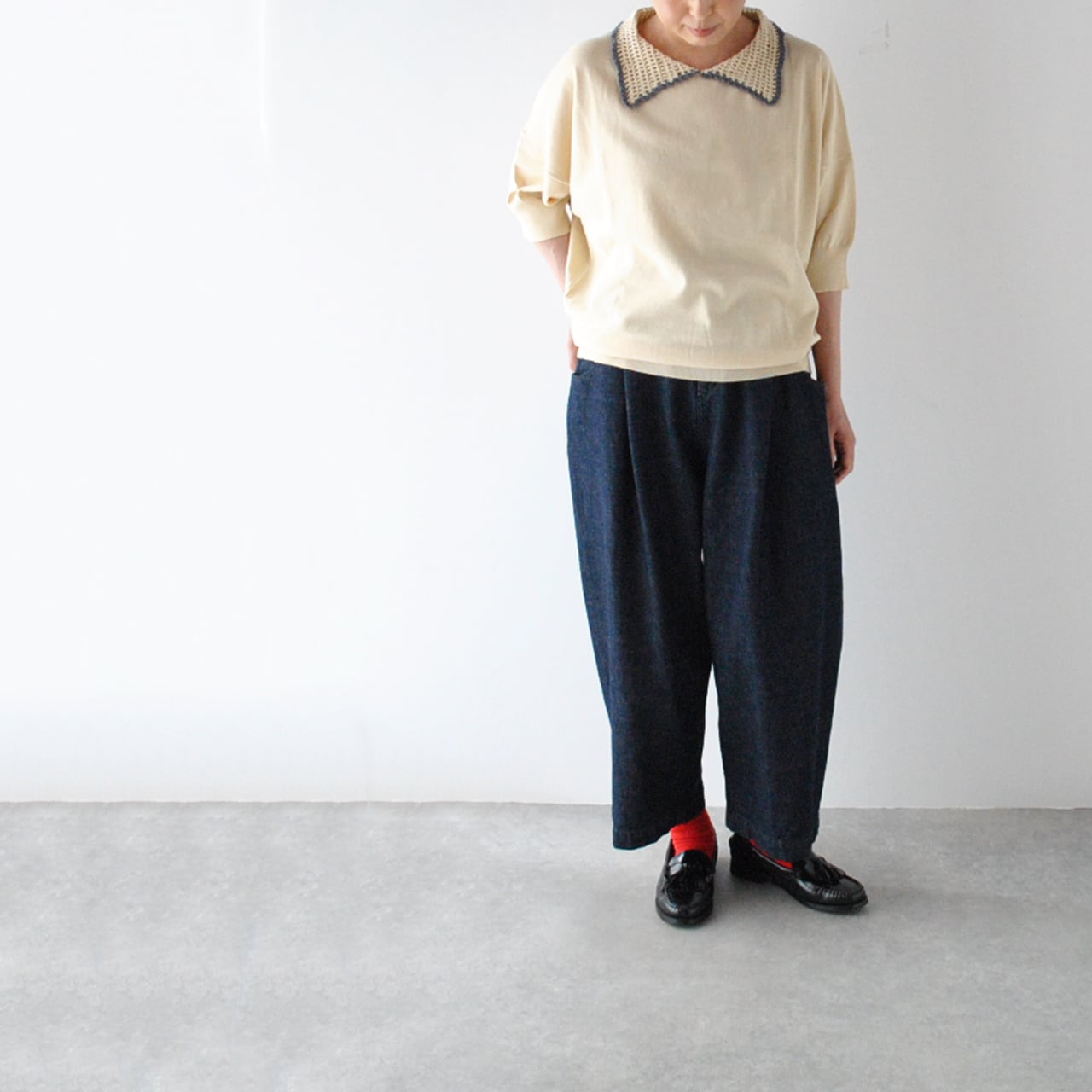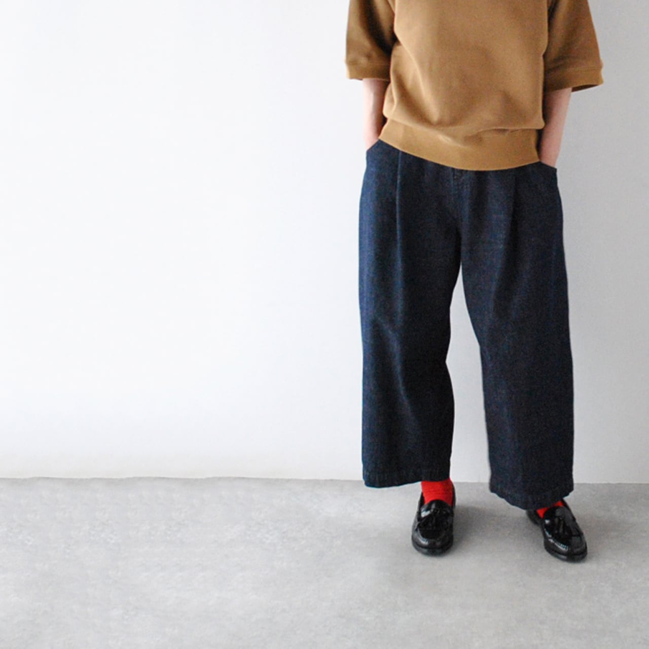 atelier naruse コットンデニムワイドタックパンツ (インディゴワンウォッシュ) S05106