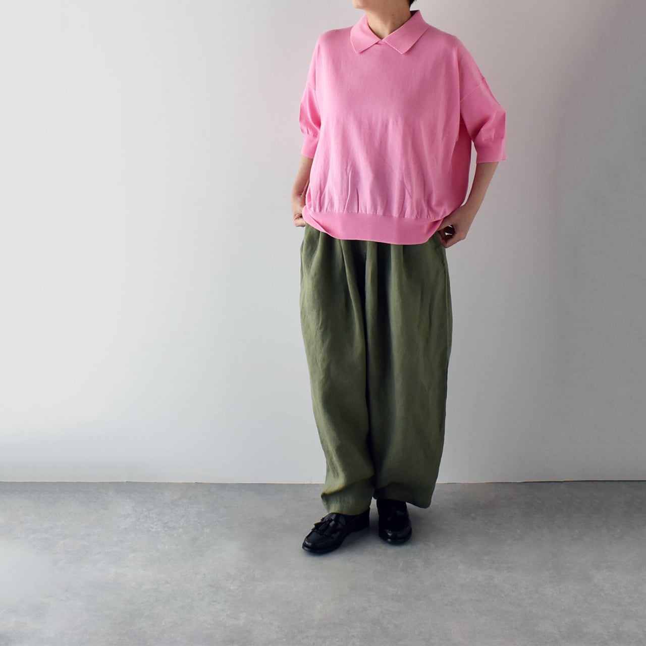 prit ハイツイストコットン16G天竺編み 襟付き5分袖ワイドプルオーバー P916108
