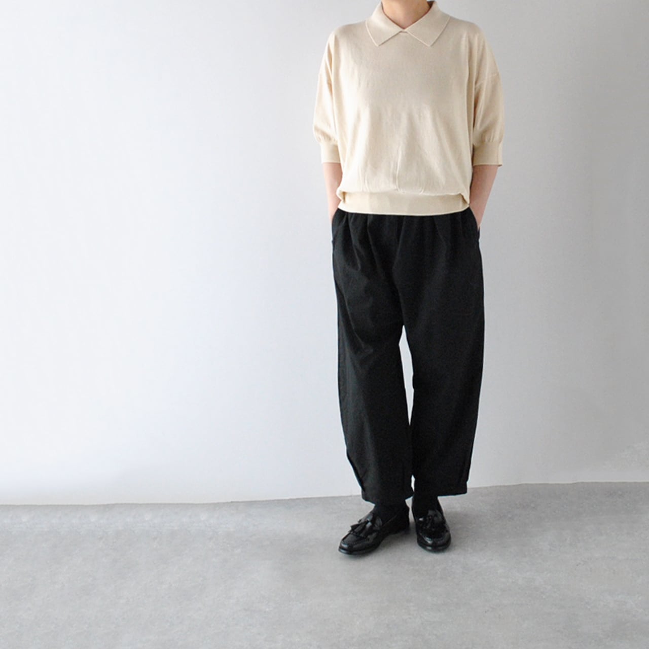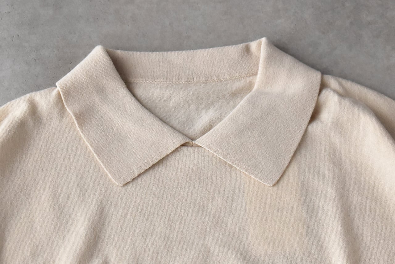 pritから、キメ細かくふっくらと編み立てたコットン素材の襟付きニットが届きました。さらりとした肌触りが心地よく、軽い着心地で楽しめる春らしい一枚です。5分丈の袖がとっても軽やか。コンパクトに見えますが、肩幅、身幅が広く、ゆったりと着て頂けます。春の訪れが待ち遠しくなりますね。