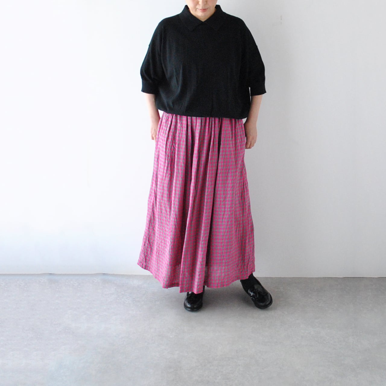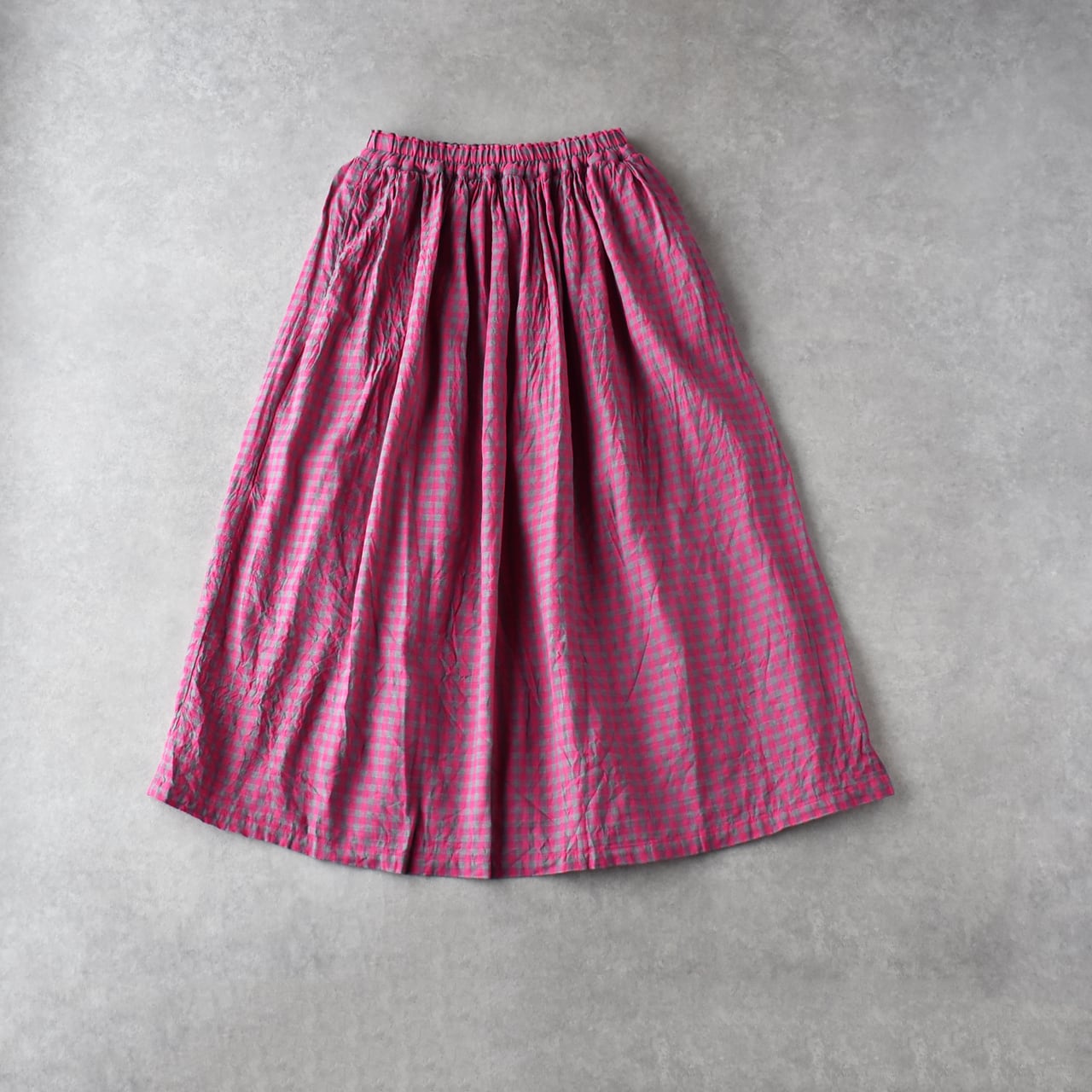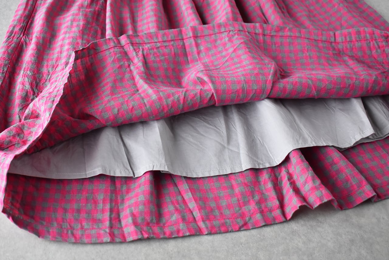 ichi Antiquités リネンコットンギンガム ギャザースカート 1100906