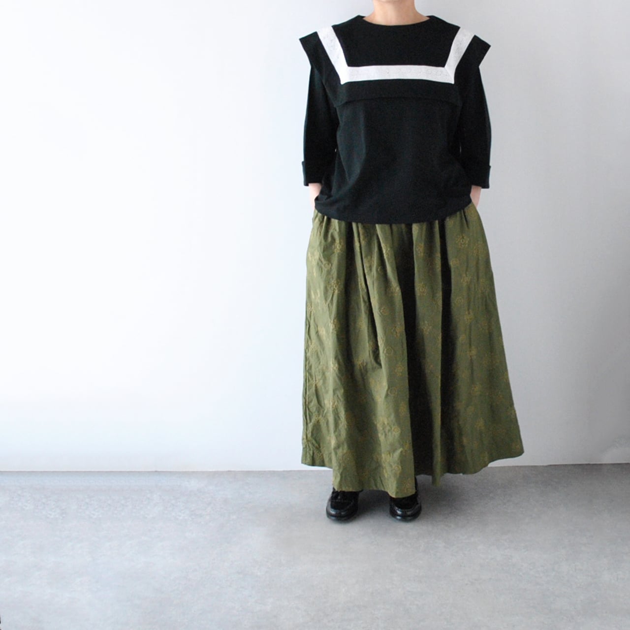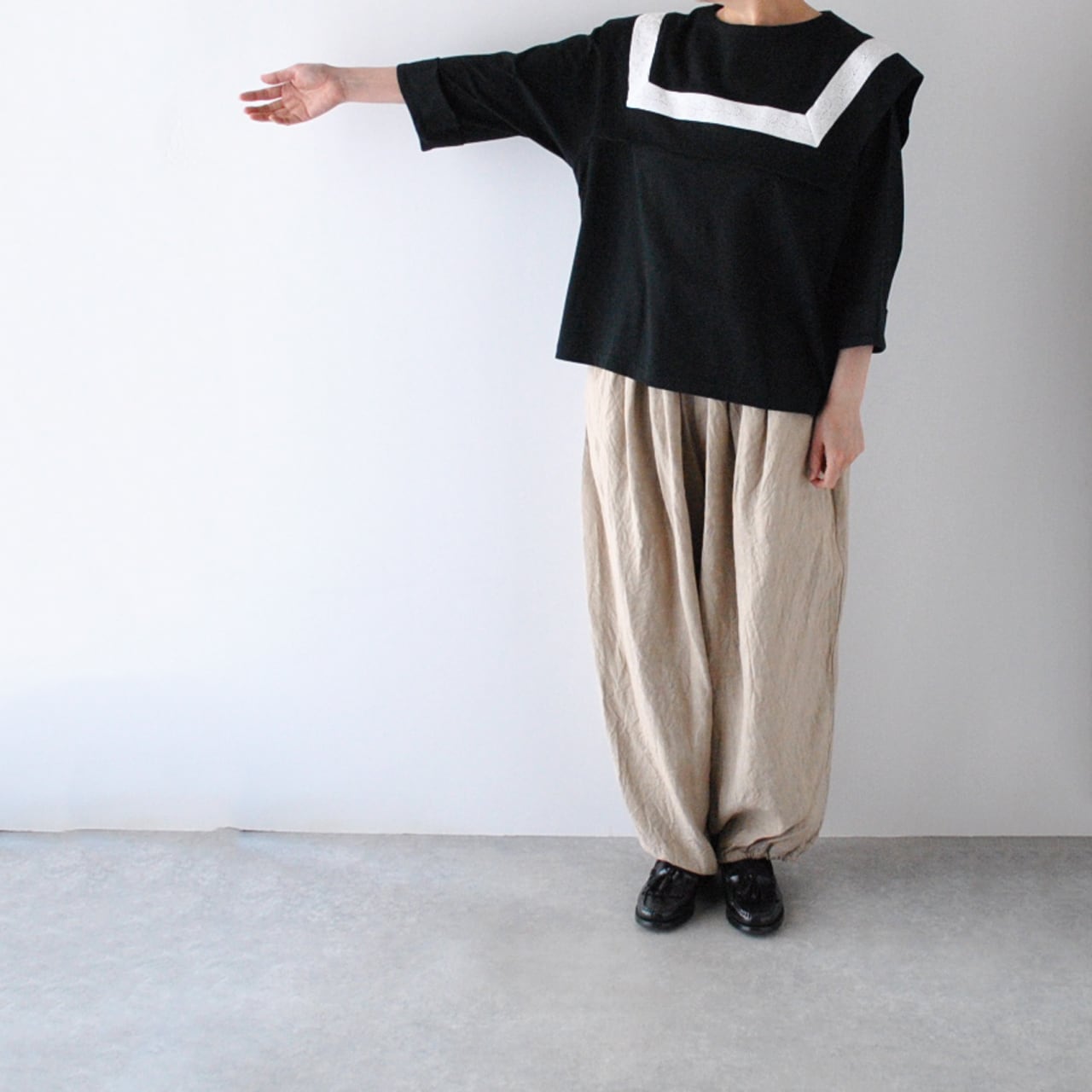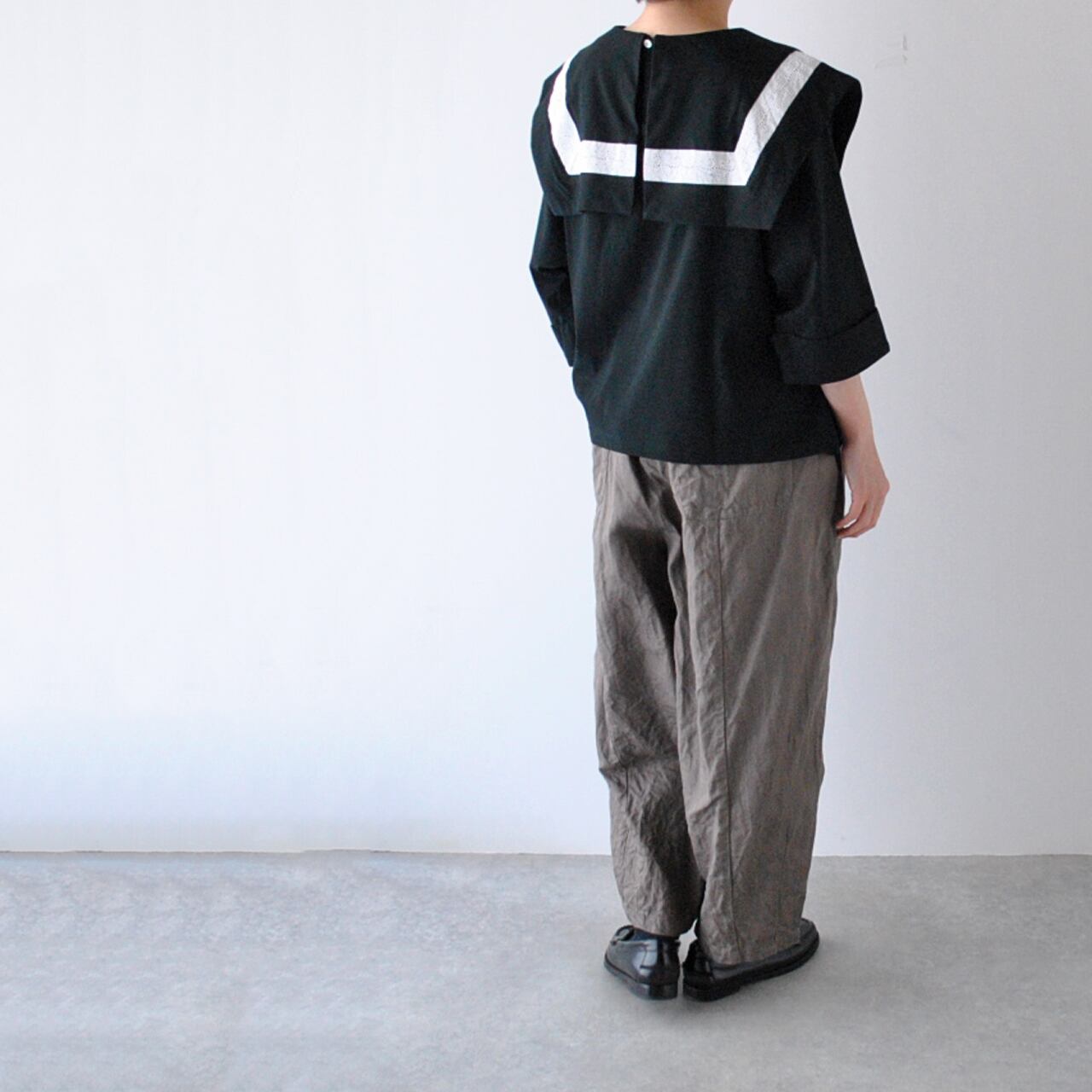 Gauze# から、肌触りのよいカットソー素材で作ったプルオーバーブラウスが届きました。何と言ってもこのセーラーカラーが可愛いんです。襟に沿ってあしらった配色のアンティークレースも乙女心をくすぐりますね。7分袖の丈感もとっても軽やか。今シーズンのGauze# のパンツやスカートにはもちろん、お手持ちのボトムにもスッと馴染んでくれそうですね。