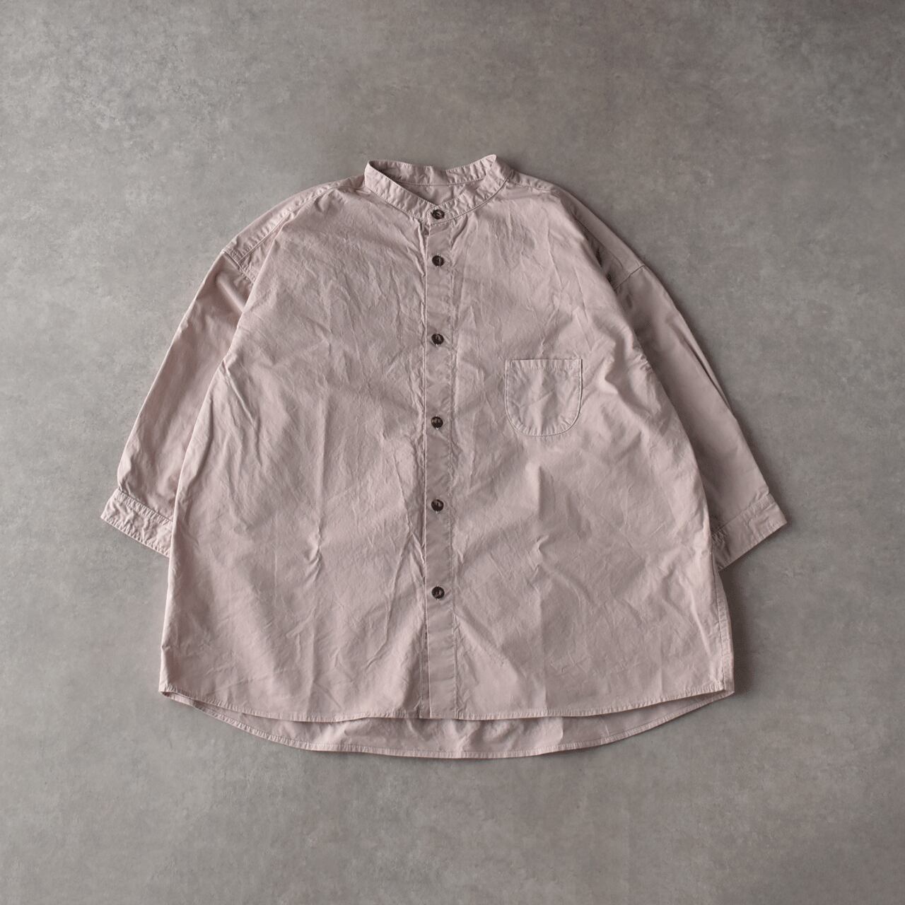 prit 綾ダンプ 7分袖スタンドカラーシャツ (ダスティピンク) P81635