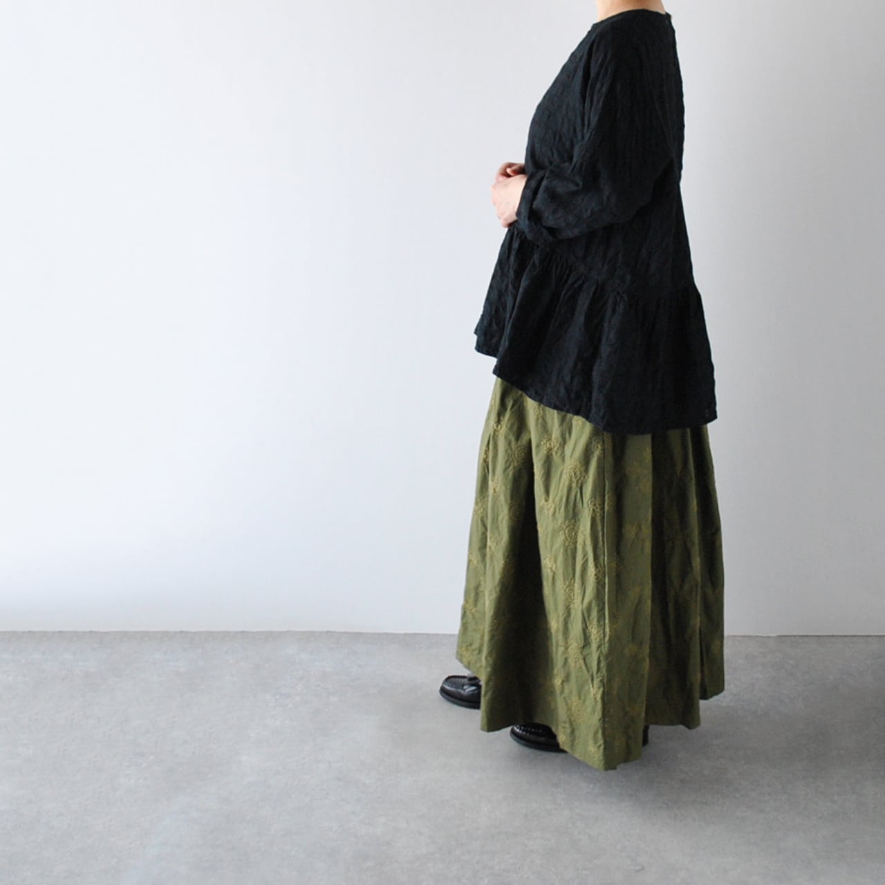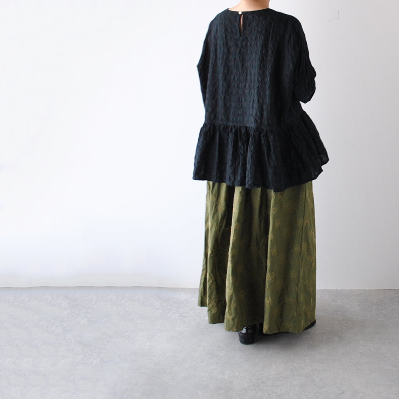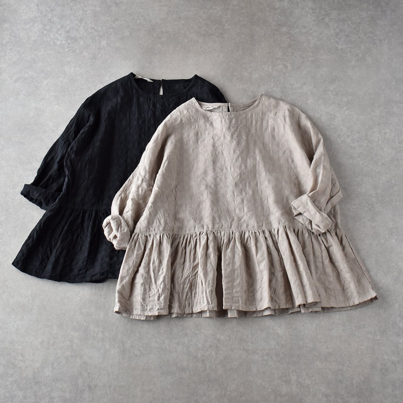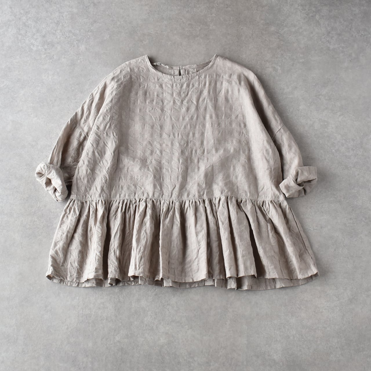 ichi Antiquitésから、ウエストの切替にギャザーを寄せた愛らしいシルエットで楽しめる、綿麻素材のプルオーバーブラウスが届きました。一見無地に見えますが、同系色のギンガムチェック柄になっていて、ポコポコとしたウネのある生地感も風合い豊かな一枚。ボリューム感のあるスカートやパンツと合わせてシンプルに楽しんでくださいね。袖は少し長めなので、ロールアップすると雰囲気が出てオススメですよ。