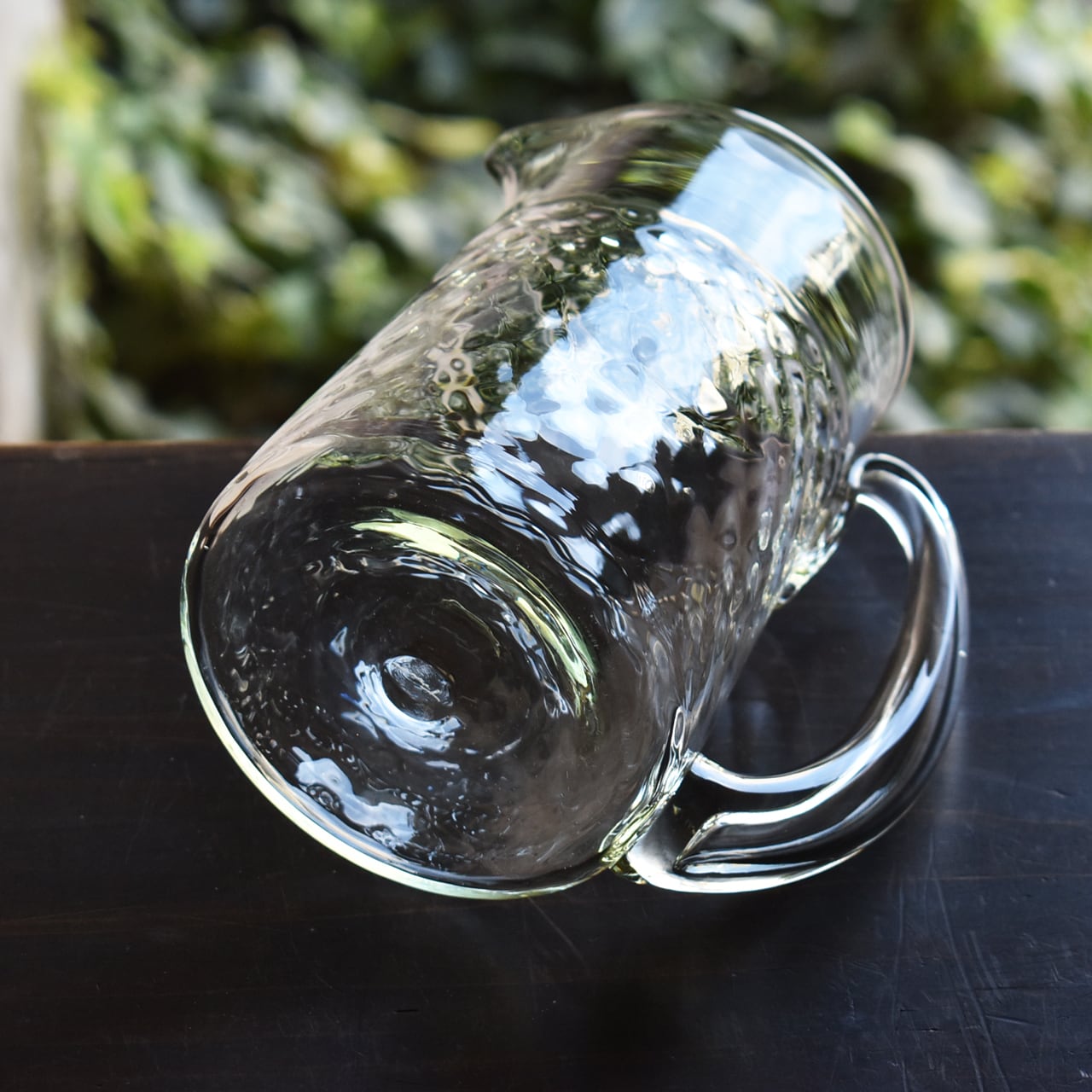 長野県に工房を構えるガラス工房 橙(だいだい)さんの水差しです。揺らぎのあるガラスの表情がとても美しく、お花を挿して頂いてもとても素敵です。くるみの殻を燃やした灰を原料とまぜ溶かして使うことで、ガラスが淡い緑の色になり、懐かしいレトロな風合いが生まれます。