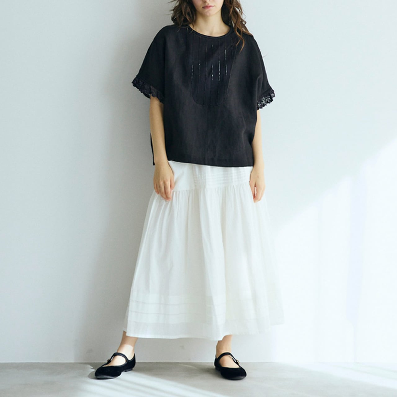 MAGALI コルトレイクリネン・ヨークブラウス (ブラック) BL281BK