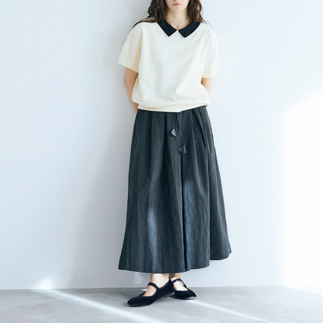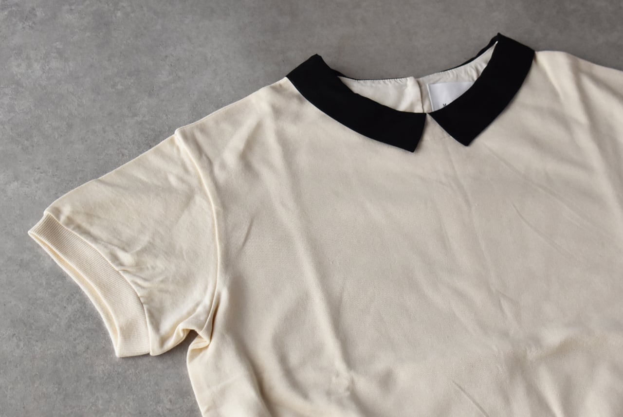 MAGALIから、配色で仕上げたコンパクトなオーガンジー襟が印象的な半袖カットソーが届きました。ボディはしっとり滑らかな肌触りのミニ裏毛スウェット素材。薄手なので暑い季節も涼やかに楽しんで頂けますよ。ゆったりとした着心地ですが、着用するとスッキリコンパクトに見えるのが嬉しいですね。袖口と裾にはリブを施し、全体のシルエットを程よく引き締めてくれます。とにかくどんなボトムと合わせても本当に可愛くスタイリングを楽しめる心強い一枚です。