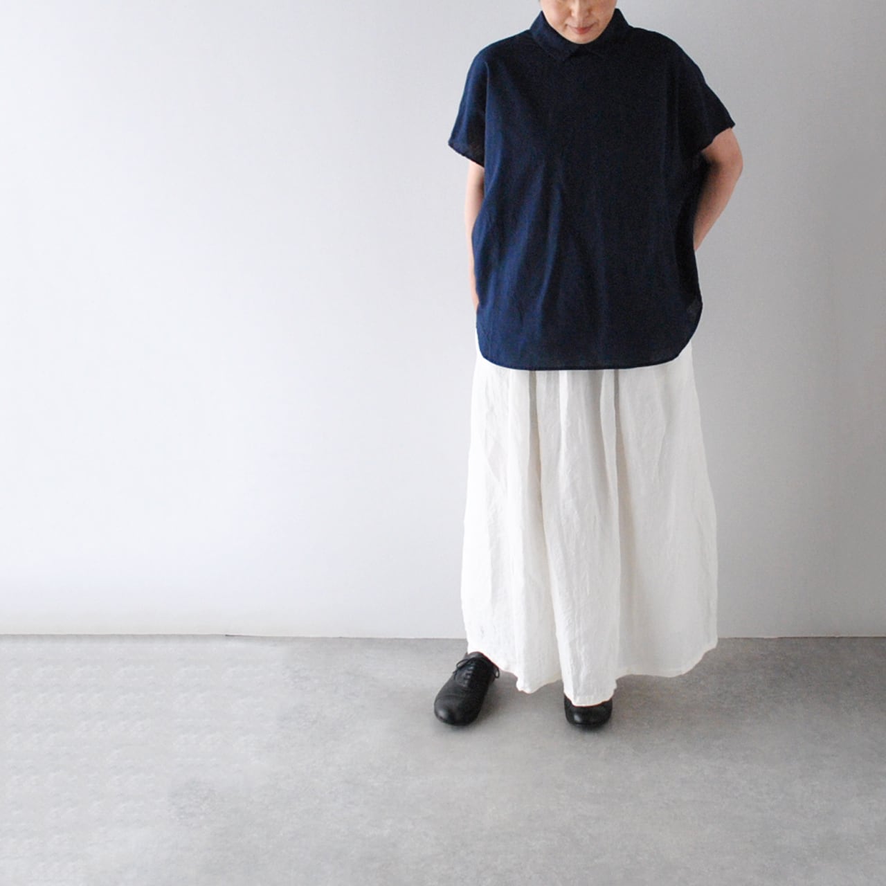 pritから、暑い季節にもとっても快適に楽しめる、後ろボタンのプルオーバーブラウスが届きました。小ぶりな襟が愛らしく、肩先にかかるフレンチスリーブの袖もとっても軽やか。様々なボトムとシンプルに合わせて頂くだけでバランスよく仕上がりますよ。ウエストインのスタイルも上品。ジャンパースカートのインナーにもオススメです。ゆったりの身幅と、綿麻ポプリンの柔らかな肌触りが相まって、リラックス感満点。毎シーズンとてもご好評頂いている人気のデザインです。