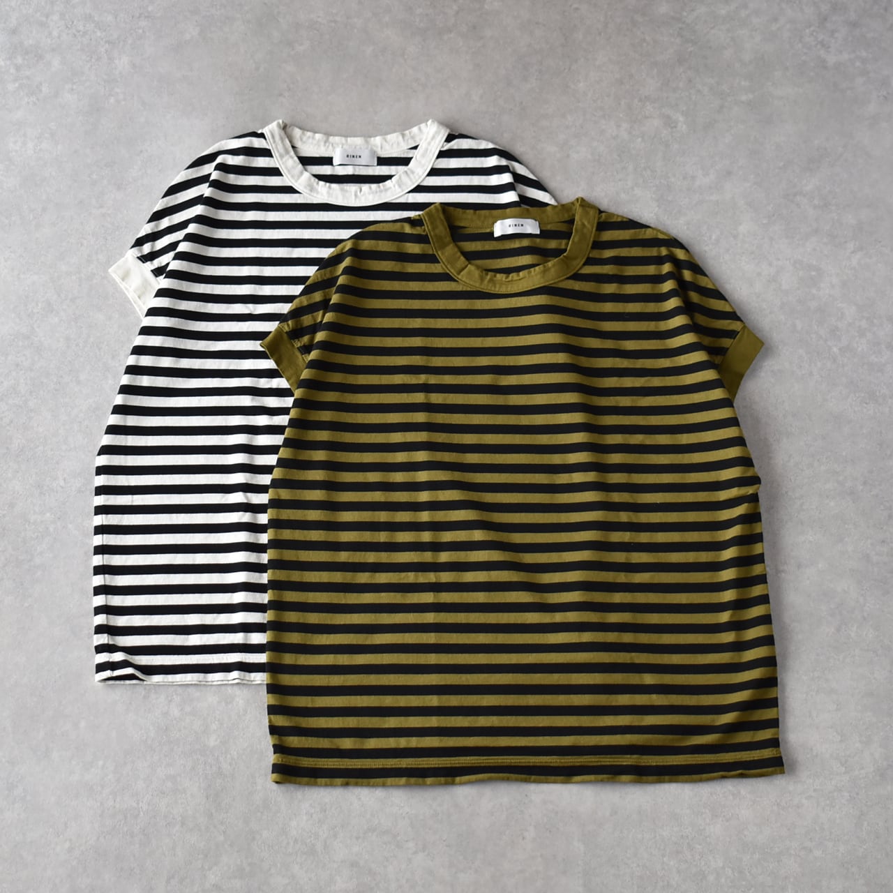 RINEN スーピマ天竺ボーダー フレンチスリーブ R19622