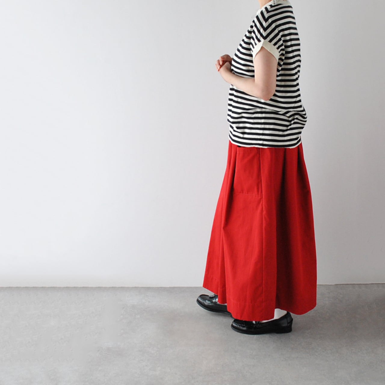 pritの兄妹ブランドRINENのフレンチスリーブTシャツが届きました。着用した時のシルエットが本当に美しく、毎シーズン販売させて頂くTシャツの中でもダントツの人気を誇るロングセラーアイテムです。袖口のリブがポイントで、カジュアルになりすぎず少し上品な印象で着て頂けるのがいいですね。生地感も薄すぎず厚すぎずの丁度良い肉感で、しなやかで肌触りも滑らか。暑い夏でも心地よく楽しんで頂けますよ。スカートともパンツともバランスのよい丈感で、夏のコーディネートに迷ったときに本当に心強い一枚です。