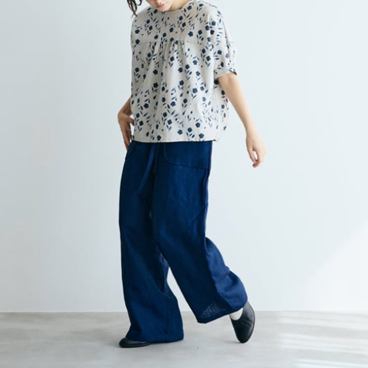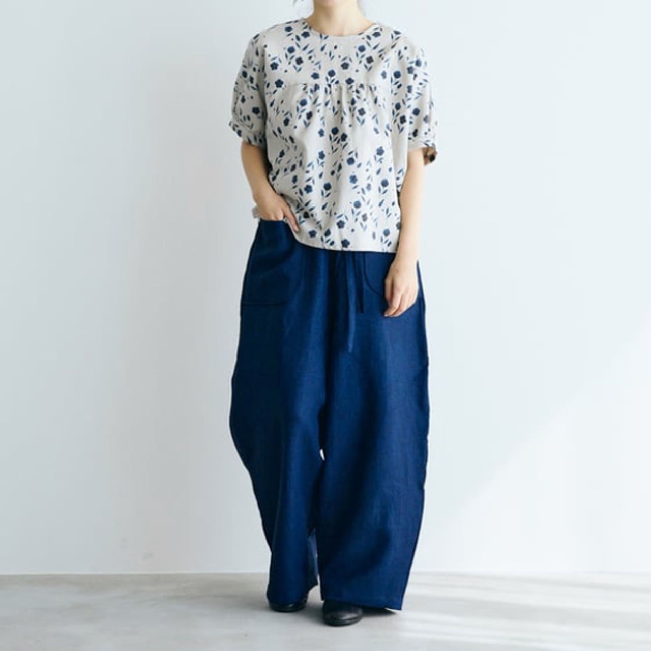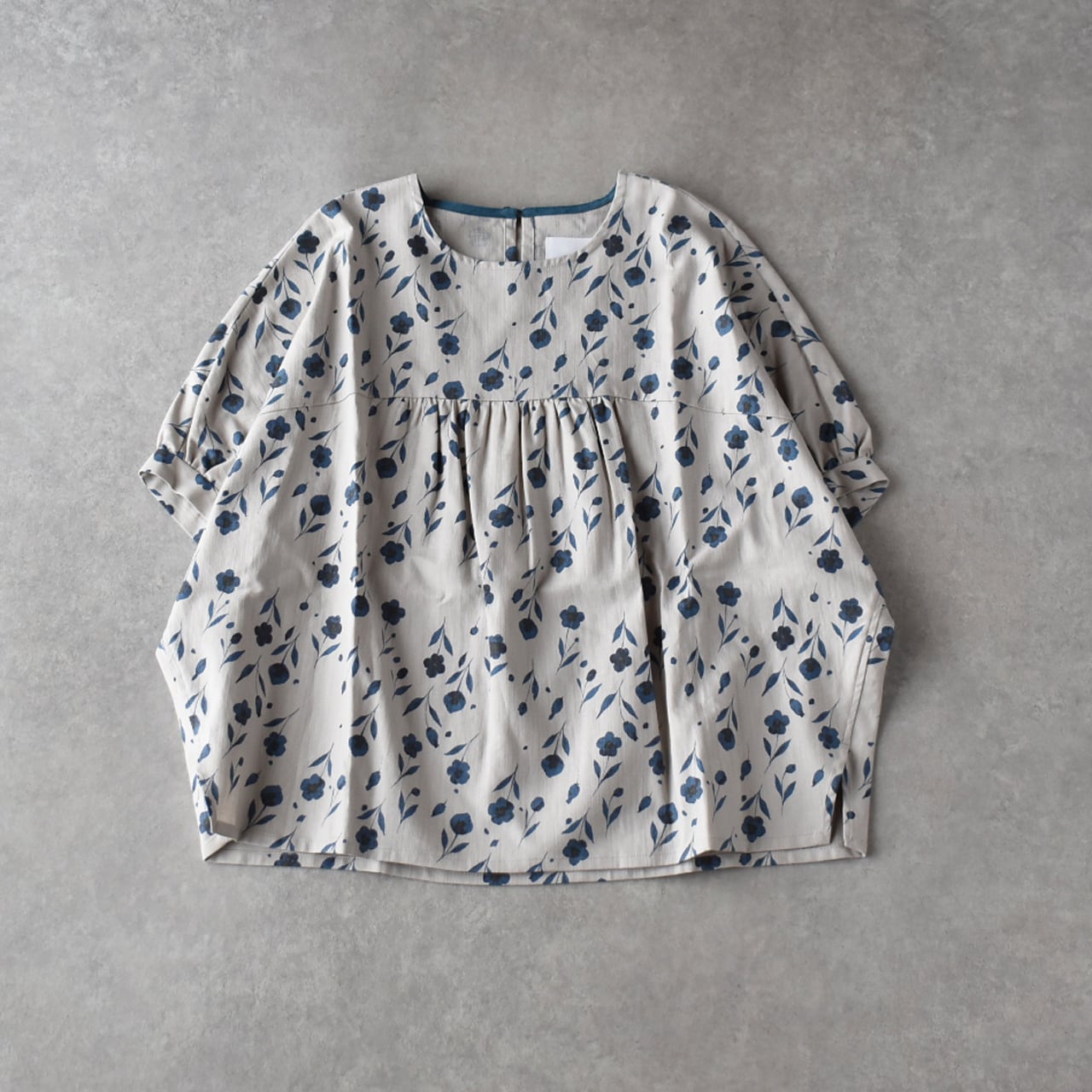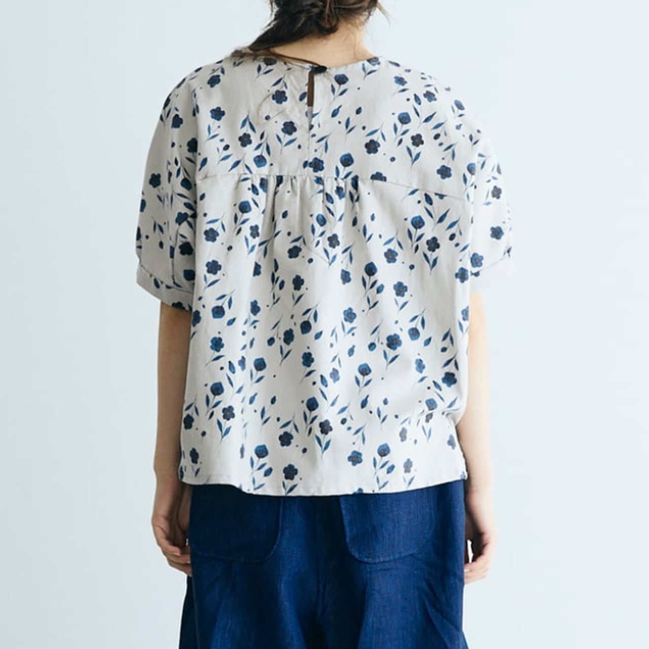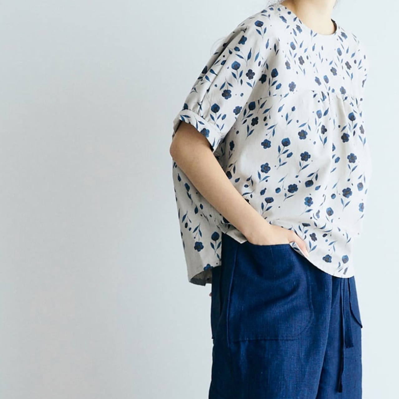 MAGALIオリジナルテキスタイルで仕立てた優しいフォルムのブラウスが届きました。朝靄に包まれた野原にそっと咲く野草をイメージした、儚げなフラワープリントがとっても上品な一枚。ボディと袖が一体になったゆったりとしたデザインで、リラックス感たっぷりに楽しめます。自然なシワ感のあるコットンリネン生地もふっくらとして風合い豊か。デニムやスカートにシンプルに合わせるだけで素敵な夏のコーディネートが完成しますよ。